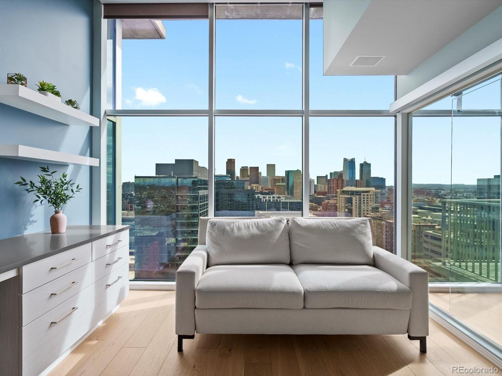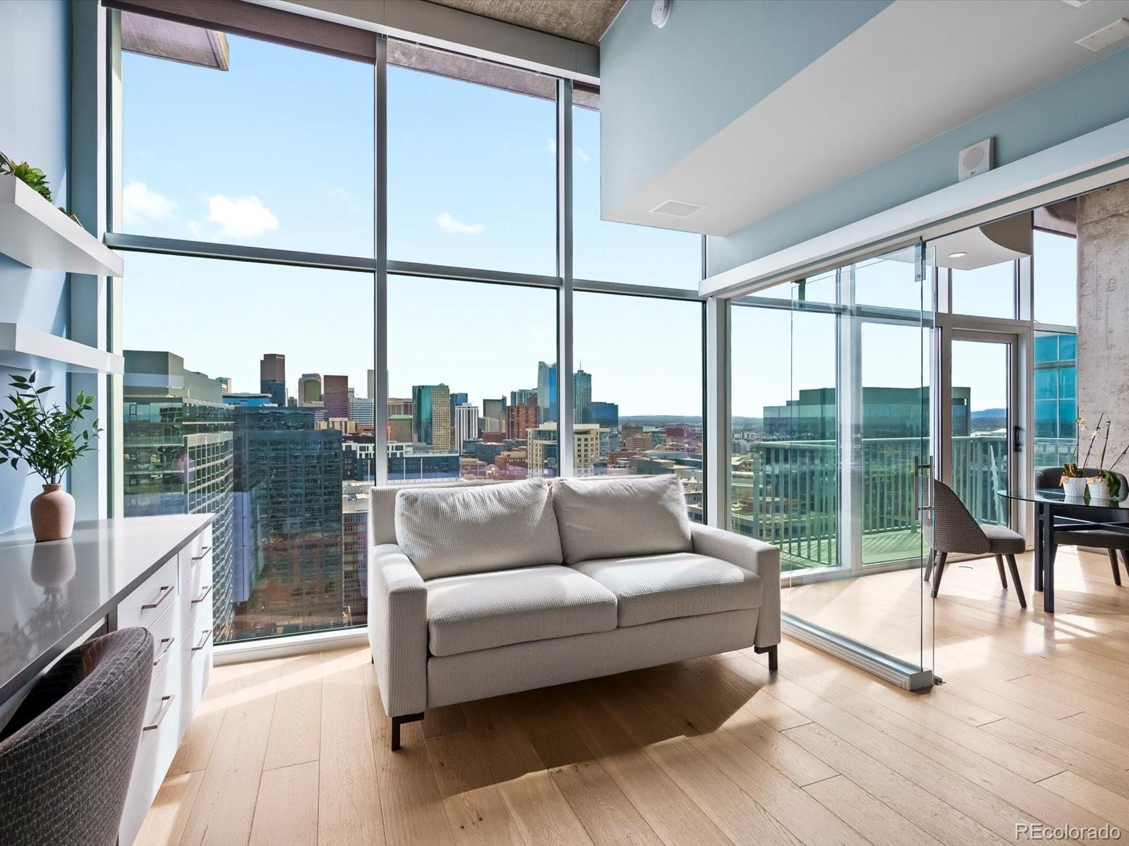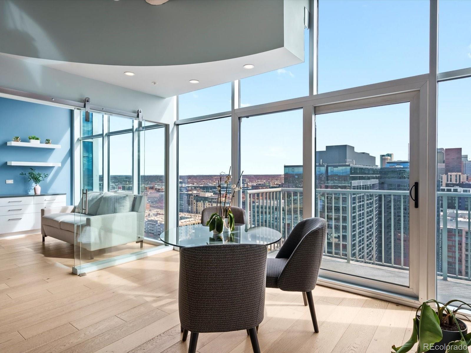 Penthouse 2315 is a rare opportunity to secure a premier skyline residence in Denver’s Riverfront Park. Positioned high above the city, this corner penthouse commands unobstructed panoramic views of the Rocky Mountains, Commons Park, and the downtown skyline, including Coors Field. Expansive floor-to-ceiling glass creates a dramatic backdrop of natural light by day and city illumination by night. Designed for elevated entertaining and refined daily living, the great room features a striking three-sided fireplace, built-in wet bar, and seamless integration to the dining space. The chef’s kitchen is appointed with premium appliances, custom cabinetry, and sleek modern finishes. The primary suite offers privacy and scale, complete with a spa-style bath featuring heated towel warmer, bidet, and a custom walk-in wardrobe. The secondary suite includes an en-suite bath and architectural glass detailing, ideal for executive office use or distinguished guest accommodations. Integrated whole-home automation, surround sound, and motorized window treatments enhance comfort and convenience. Included: Two premier side-by-side parking spaces in the heated garage Dedicated EV charging station Private garage-level storage suite Built-in ice maker and installed media components Glass House residents enjoy a fitness center and outdoor pool, along with immediate access to Denver’s most desirable dining, cultural, and recreational amenities. This residence is well-suited for buyers seeking a lock-and-leave lifestyle, executive pied-à-terre, or a primary urban retreat with privacy and presence.