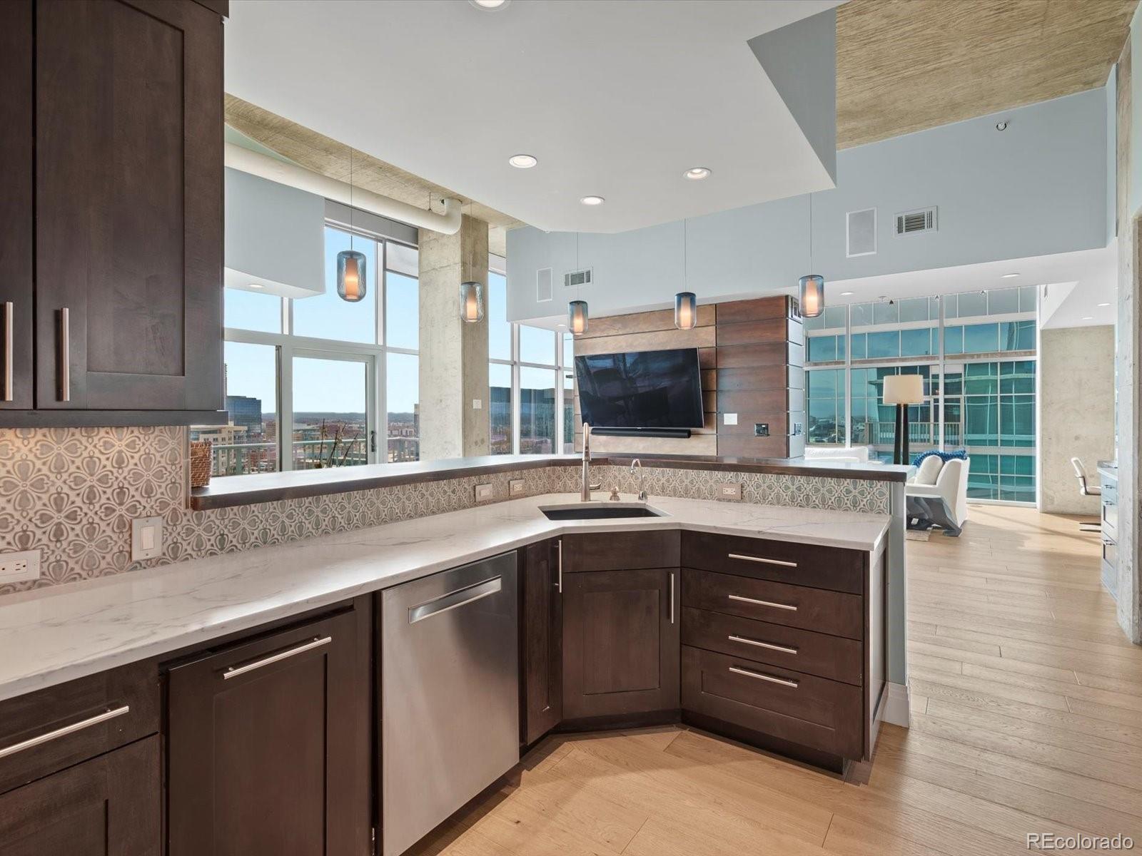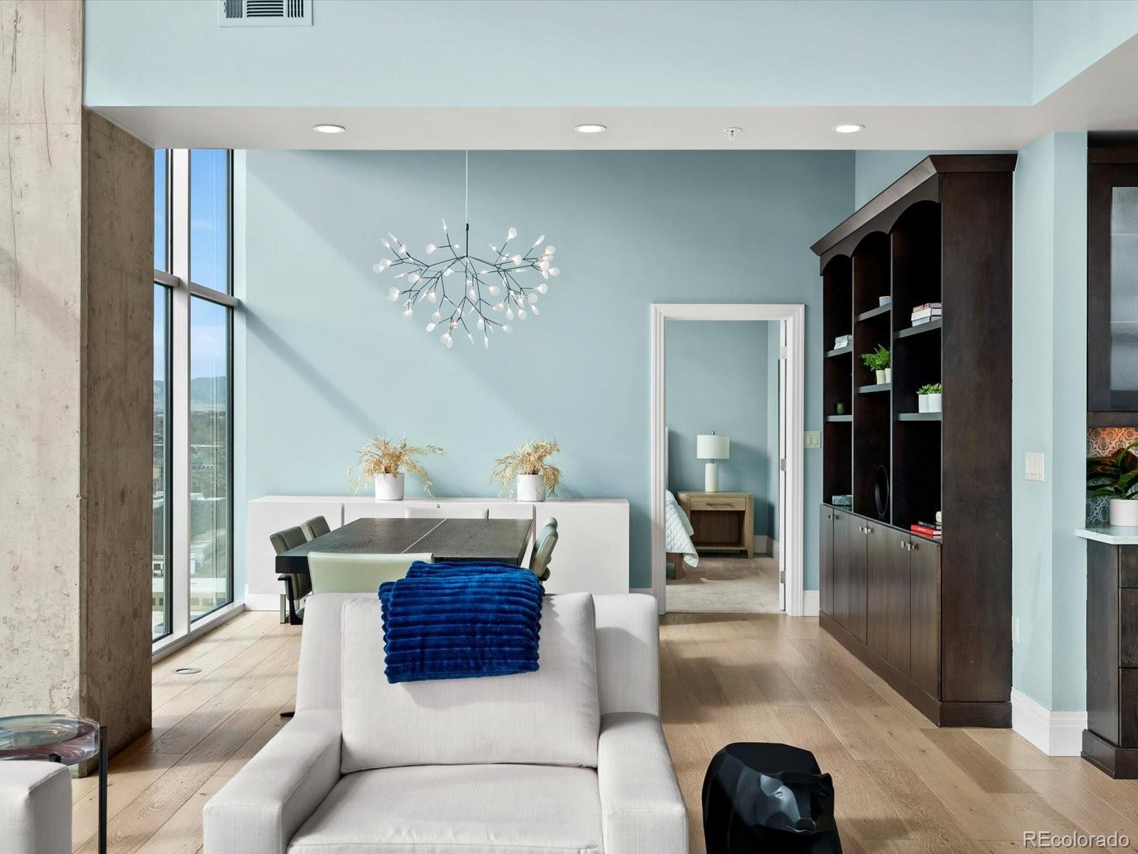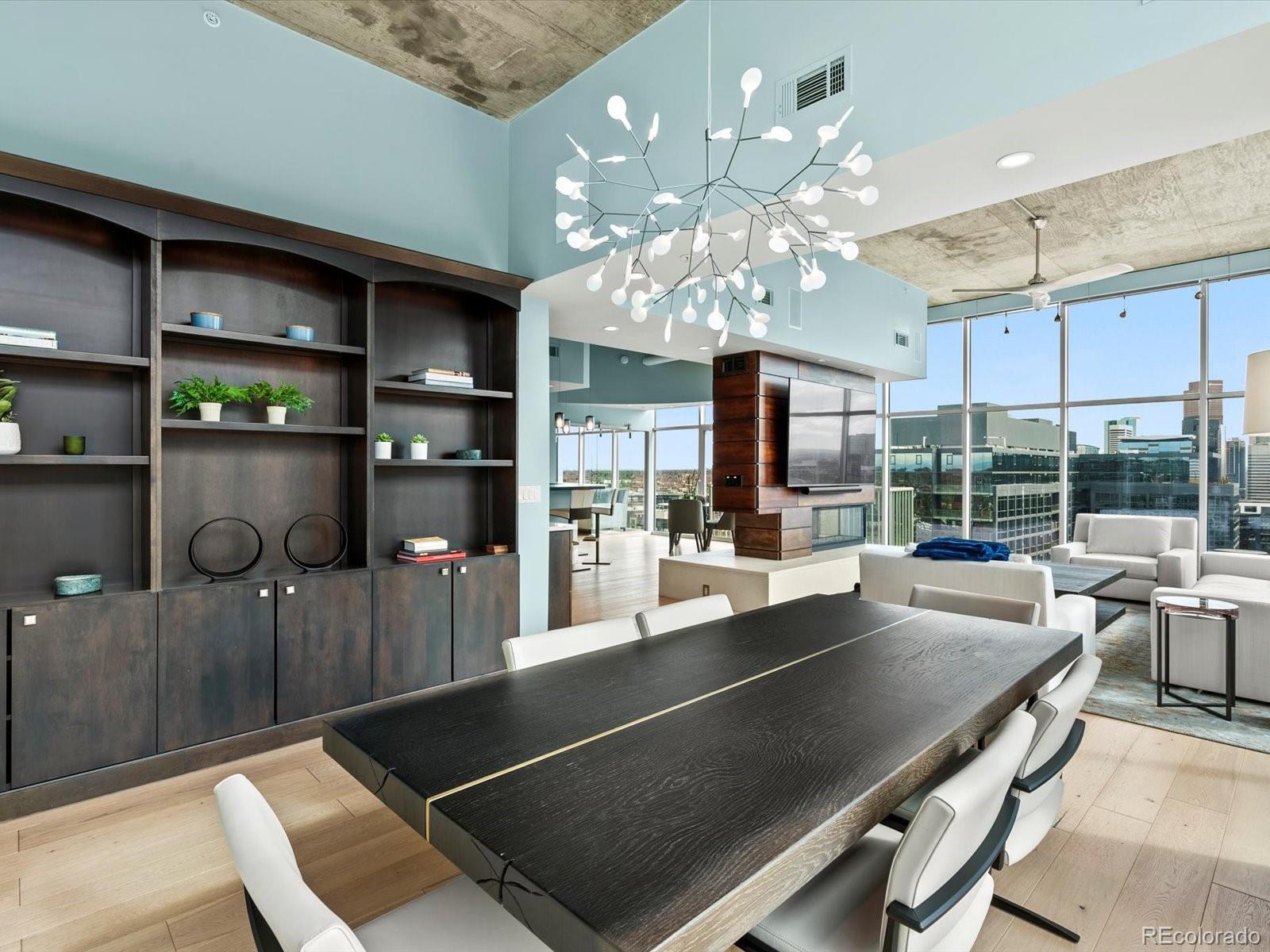 Penthouse 2315 is a rare opportunity to secure a premier skyline residence in Denver’s Riverfront Park. Positioned high above the city, this corner penthouse commands unobstructed panoramic views of the Rocky Mountains, Commons Park, and the downtown skyline, including Coors Field. Expansive floor-to-ceiling glass creates a dramatic backdrop of natural light by day and city illumination by night. Designed for elevated entertaining and refined daily living, the great room features a striking three-sided fireplace, built-in wet bar, and seamless integration to the dining space. The chef’s kitchen is appointed with premium appliances, custom cabinetry, and sleek modern finishes. The primary suite offers privacy and scale, complete with a spa-style bath featuring heated towel warmer, bidet, and a custom walk-in wardrobe. The secondary suite includes an en-suite bath and architectural glass detailing, ideal for executive office use or distinguished guest accommodations. Integrated whole-home automation, surround sound, and motorized window treatments enhance comfort and convenience. Included: Two premier side-by-side parking spaces in the heated garage Dedicated EV charging station Private garage-level storage suite Built-in ice maker and installed media components Glass House residents enjoy a fitness center and outdoor pool, along with immediate access to Denver’s most desirable dining, cultural, and recreational amenities. This residence is well-suited for buyers seeking a lock-and-leave lifestyle, executive pied-à-terre, or a primary urban retreat with privacy and presence.