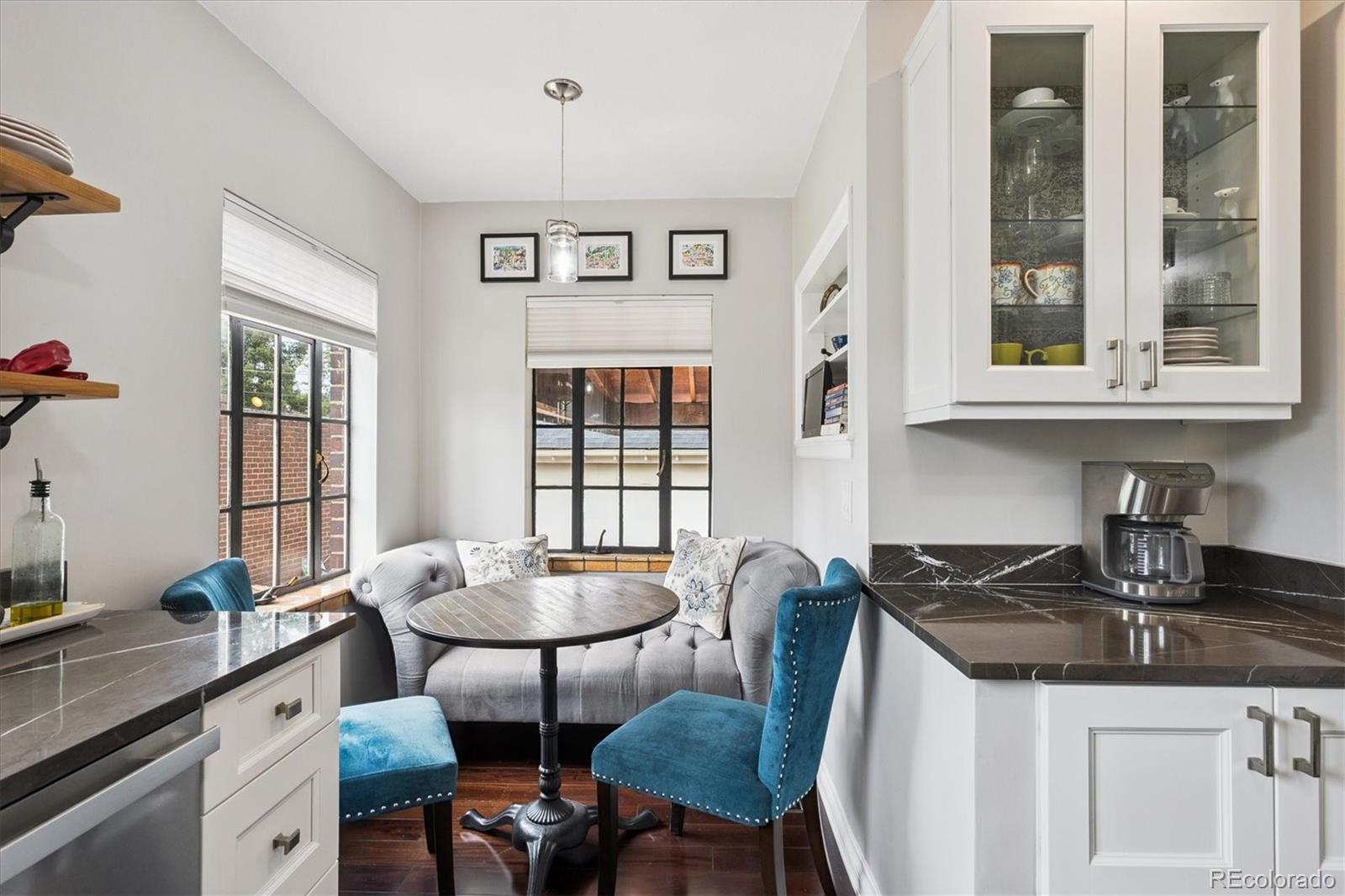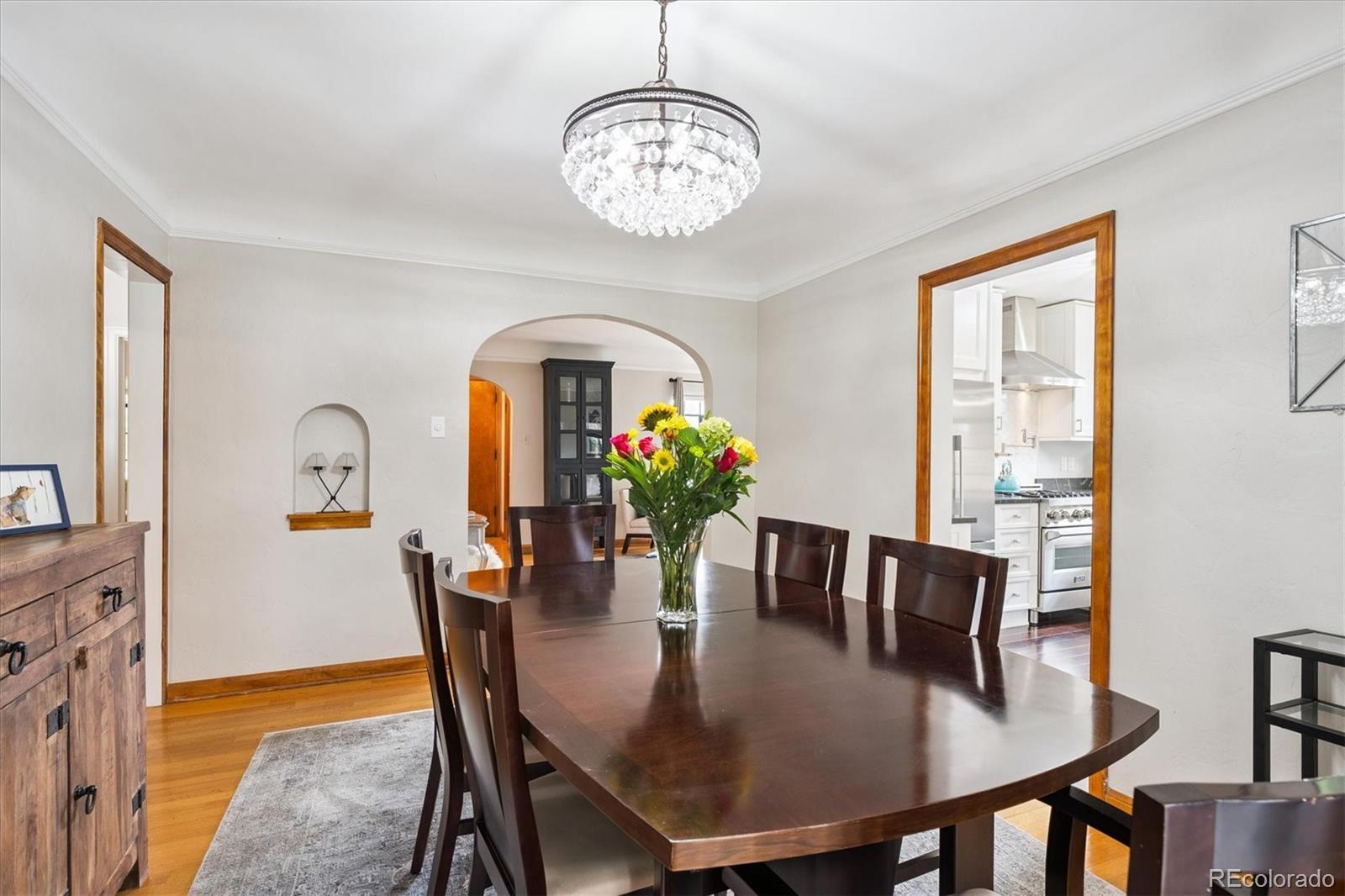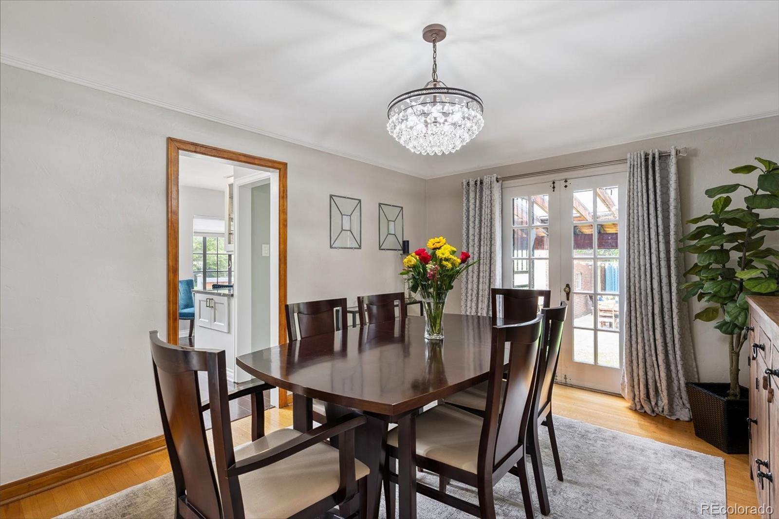 Storybook 2-story Tudor located in highly sought after Park Hill. This home has been meticulously renovated while carefully preserving original 1938 character which includes wood floors, Batchelder tiled windows sills, rod iron banister, wood doors with vintage hardware, arches and coved ceilings. The careful designed kitchen features white cabinets, stainless appliances, marble countertops and a sunny breakfast nook. The beautiful living room is filled with natural light and is great for entertaining with a cozy gas fireplace. Formal dining room features French doors that leads to the beautiful backyard with mature landscaping, garden areas and patios ideal for entertaining and Al Fresco dining. The second floor offers an elegant primary retreat with a sitting area, secondary bedroom, updated bath and a rare unfinished walk-in attic space perfect for a bedroom/ bath expansion or storage. Recently updated basement offers a lovely family with a built-in bar great for movie nights. Desired 2 car garage offers a bonus heated workshop. With easy access to City Park, the Denver Zoo, neighborhood shops, cafés, and restaurants, this home combines convenience with the timeless charm Park Hill is known for.