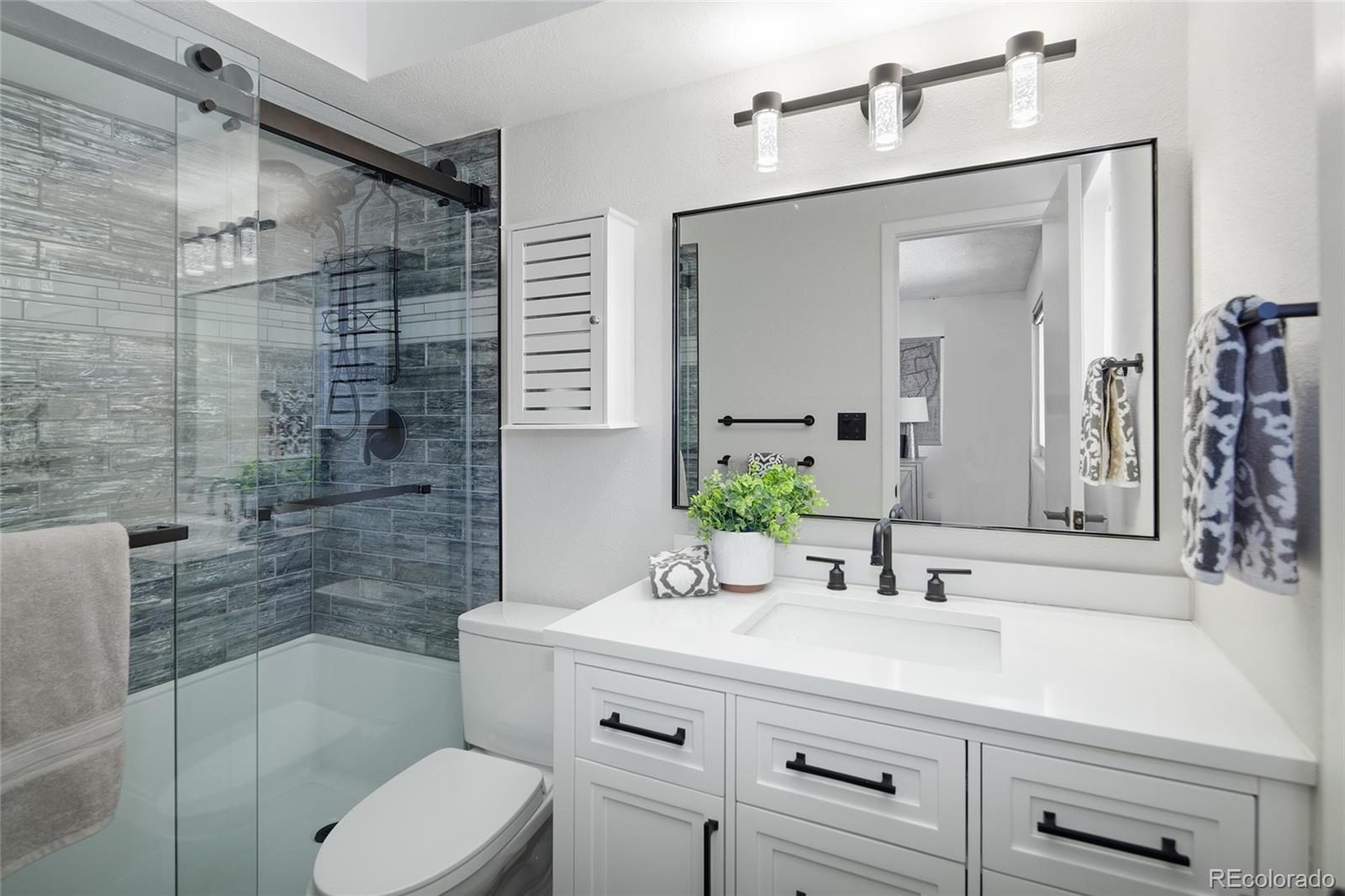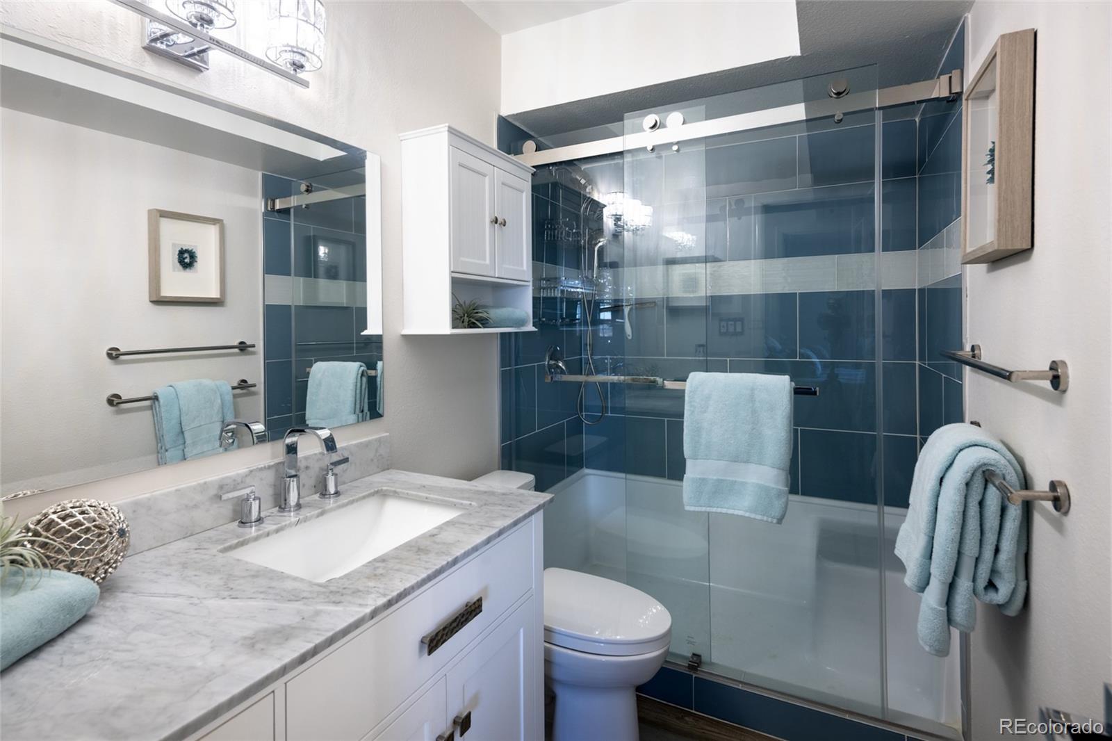 Welcome to this beautifully upgraded home in Denver, offering over $40,000 in thoughtful enhancements completed within the past two years. This 2-bedroom, 3-bathroom residence blends modern luxury with everyday comfort. Each bathroom features designer tile and Toto toilets, while the primary suite is elevated with a Carrera marble countertop. The modern kitchen is equipped with brand-new appliances, including a Bosch dishwasher, induction stove, and LG full-size washer and dryer. Fresh interior paint and smart light switches and lights throughout to enhance both style and efficiency in the home. The lower level features a new sliding glass door that opens directly to the outside living space for the summer months and abundant parking just behind the unit, including two deeded reserved spaces. Tucked into the quietest area of the community, this home offers a peaceful retreat while still enjoying access to a community pool and clubhouse, perfect for summer gatherings. A rare opportunity to own a meticulously upgraded property in a prime Denver location. A short walk to the light rail and minutes to a fabulous Whole Foods market and internet available that is a dream for remote work.