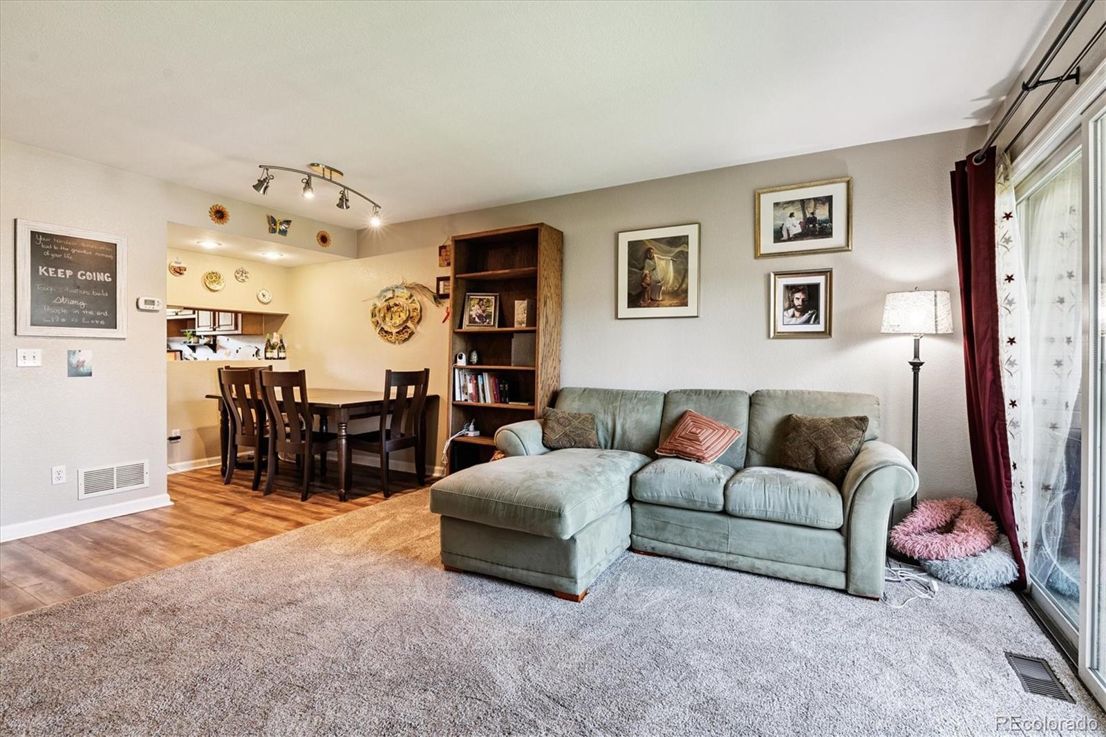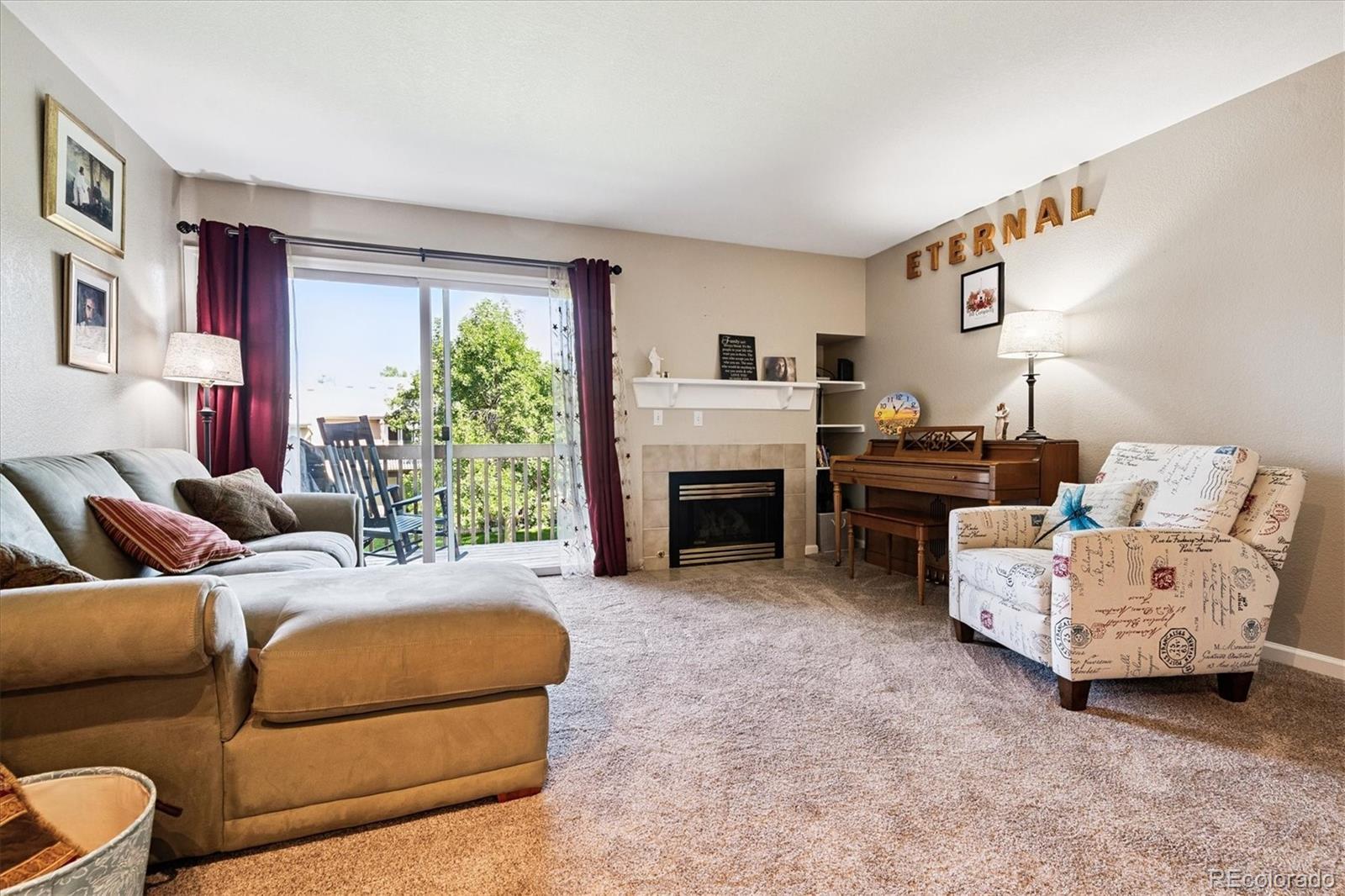 Beautiful townhome with walkout basement in quiet Aspen Meadows community. Home has 3 balconies, a covered patio, and a detached one-car garage. Bright kitchen with newer engineered wood flooring (2023), new dishwasher (2025), and stainless steel appliances. Dining room with newer engineered wood flooring (2023). Cozy living room with gas fireplace, newer high-end carpet (2023), and built-in shelving. Plenty of natural light from the large sliding glass door that opens to a lovely balcony (8.5' x 6') overlooking grassy common space. Convenient half bath on the main level. Two spacious bedrooms upstairs, each with their own balcony and private entrance to the updated full bathroom. The master bedroom, with its vaulted ceiling and separate vanity space, provides a view of the common space and a glimpse of the Rock from the balcony. The second bedroom with its balcony looks over Memmen Ridge Open Space and has a small mountain view. Two skylights upstairs. The walkout basement offers a third bedroom with an attached full bath, closet, and new engineered hardwood (2024) opening to a covered patio (8.5' x 6'). Additional flex space/laundry room/storage with its own egress window. Washer/dryer included. 6-panel doors. Home comes with a 14-month Blue Ribbon Home Warranty. Reserved parking spot (#282) and a 1-car garage (#17). The garage has attic space for storage with a pull-down ladder and enough room to stand up. Located in a quiet enclave surrounded on three sides by Memmen Ridge Open Space. Faces south -- light and bright. Close to Centennial Park and Burgess Pool, schools, shopping, and dining. Just a 15-minute walk to downtown Castle Rock via trail. Rare opportunity for a townhome with 3 bedrooms and a finished walkout basement in well-maintained Aspen Meadows.