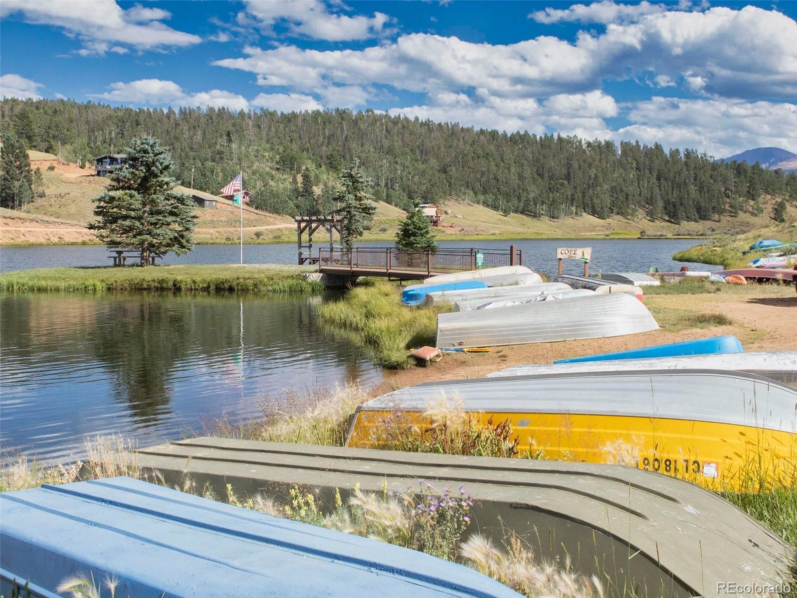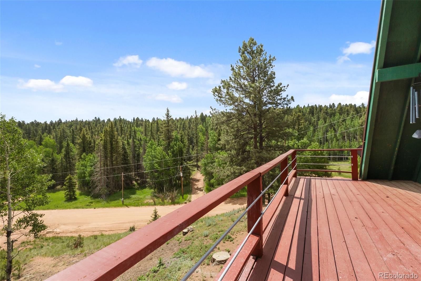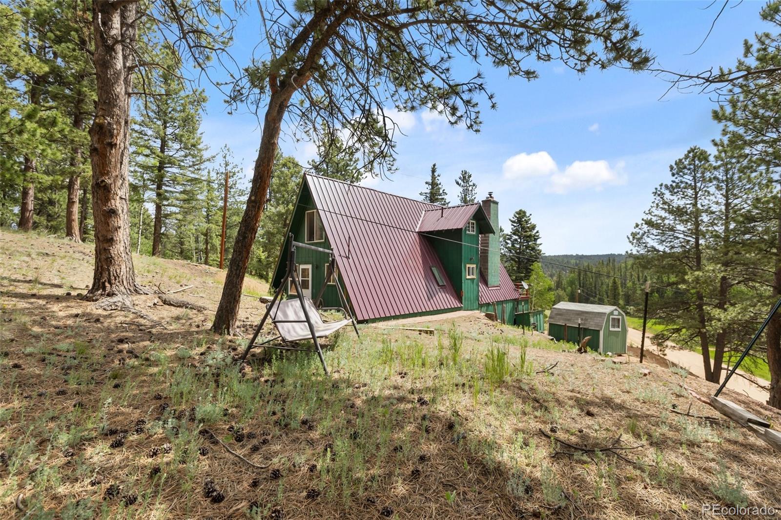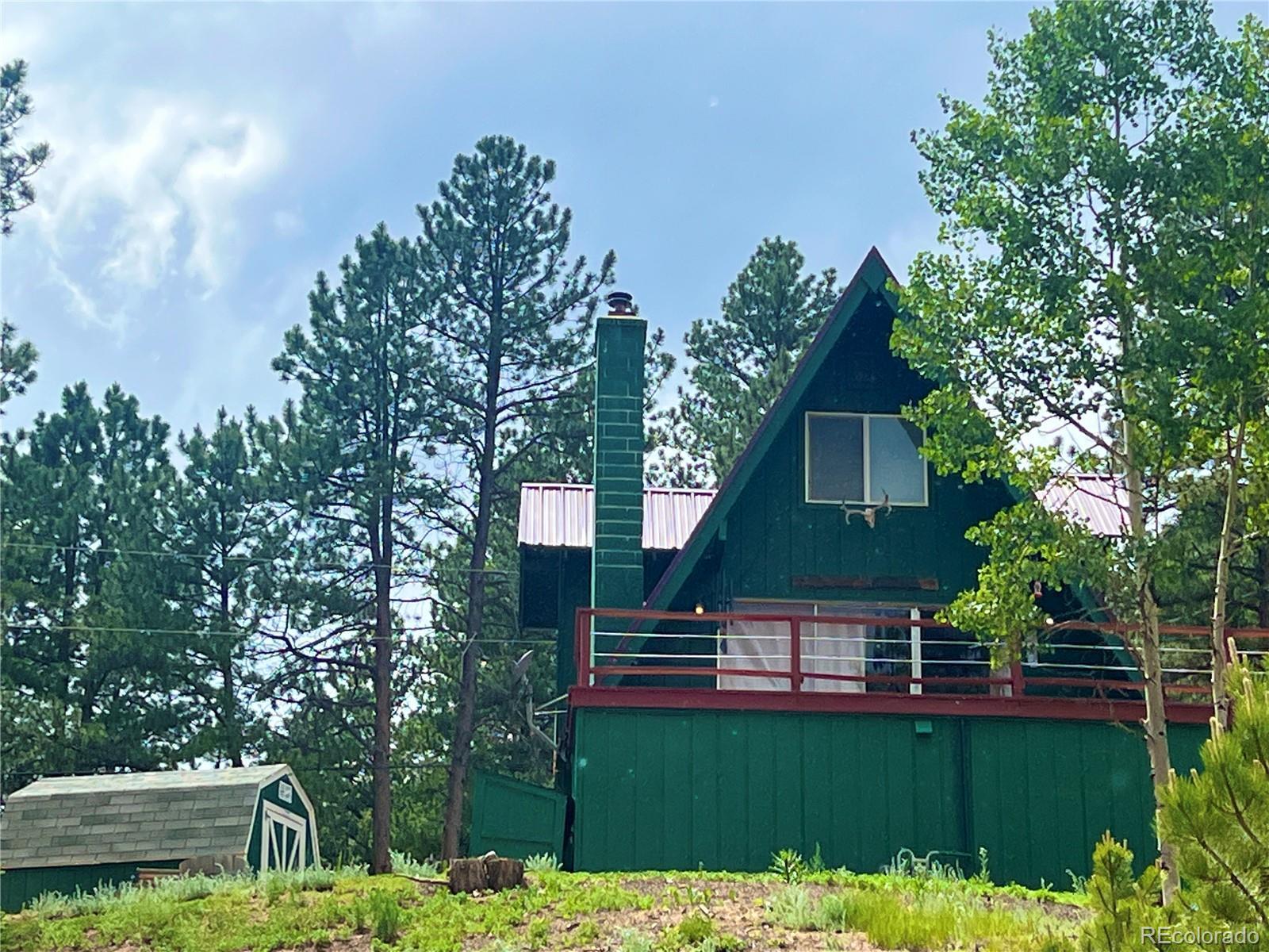 Well kept A Frame on 2 wooded acres located in Beautiful Spring Valley! Featuring 3 bedrooms and two newly remodeled sharp bathrooms that also include new plumbing! Attractive local milled hardwood is in the living room which features an expansive glass wall that takes in the beautiful wooded views. The living room has a sliding glass door that walks out to an expansive deck to enjoy the abundant wildlife from. There is also a wood burning fireplace to keep things cozy on those Colorado winter nights. Brand new class four metal roof that was just installed in 2025! Eat in kitchen has a dining area that also walks out to the private back yard. The lot was just professionally mitigated in 2024, helping with the homeowners insurance. Most properties in this subdivision have one acre, this property has two acres to enjoy life on! Walking distance to the gorgeous subdivision's Burgess Lake which provides stunning Pikes Peak Views! Located close to the National Forest which offers endless hiking, dirt biking and four wheeling. Spring Valley has 3 ponds and a gorgeous stocked lake. HOA Members can boat, fish, kayak, fish and ice fish. There is a club house that HOA members can use for family get togethers, parties, weddings, etc. Its a special place to live, rural , yet only 10 minutes from amenities and only 20 minutes from Woodland Park. Skiing is less than 2 hours away, along with many fishing/boating lakes and the famous Dream Stream. If you want mountain living in a well kept beautiful area, this is the place to be. This would make a great home, second home or long or short term rental. The septic has been cleaned and inspected. The deck and stairs have been recently painted.