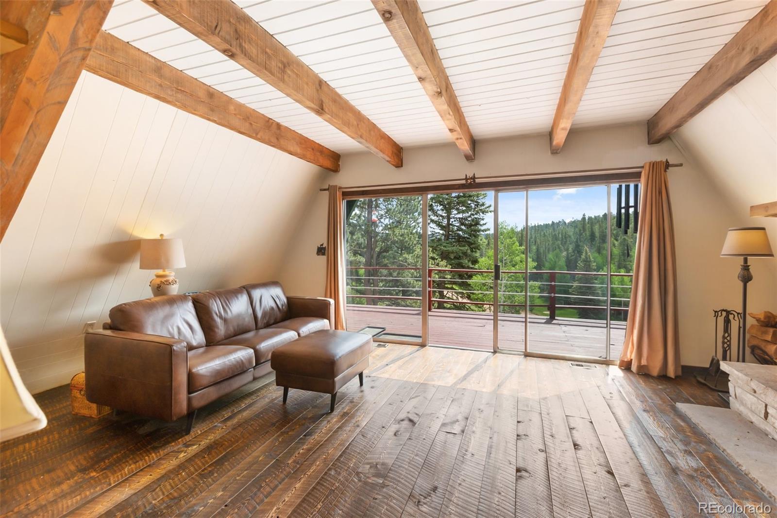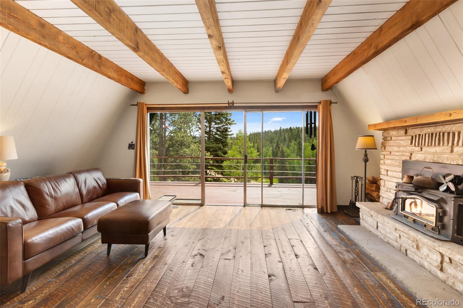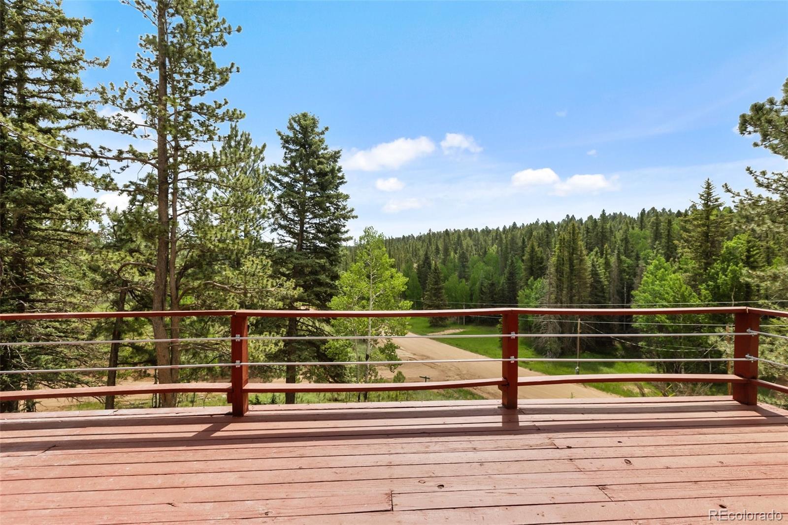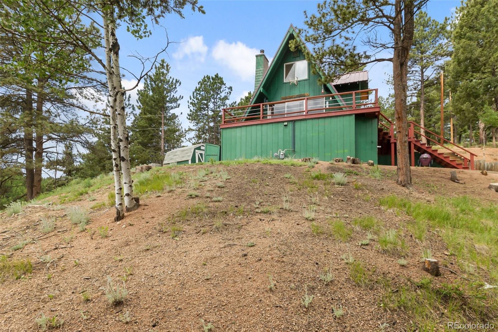Well kept A Frame on 2 wooded acres located in Beautiful Spring Valley! Featuring 3 bedrooms and two newly remodeled sharp bathrooms that also include new plumbing! Attractive local milled hardwood is in the living room which features an expansive glass wall that takes in the beautiful wooded views. The living room has a sliding glass door that walks out to an expansive deck to enjoy the abundant wildlife from. There is also a wood burning fireplace to keep things cozy on those Colorado winter nights. Brand new class four metal roof that was just installed in 2025! Eat in kitchen has a dining area that also walks out to the private back yard. The lot was just professionally mitigated in 2024, helping with the homeowners insurance. Most properties in this subdivision have one acre, this property has two acres to enjoy life on! Walking distance to the gorgeous subdivision's Burgess Lake which provides stunning Pikes Peak Views! Located close to the National Forest which offers endless hiking, dirt biking and four wheeling. Spring Valley has 3 ponds and a gorgeous stocked lake. HOA Members can boat, fish, kayak, fish and ice fish. There is a club house that HOA members can use for family get togethers, parties, weddings, etc. Its a special place to live, rural , yet only 10 minutes from amenities and only 20 minutes from Woodland Park. Skiing is less than 2 hours away, along with many fishing/boating lakes and the famous Dream Stream. If you want mountain living in a well kept beautiful area, this is the place to be. This would make a great home, second home or long or short term rental. The septic has been cleaned and inspected. The deck and stairs have been recently painted.