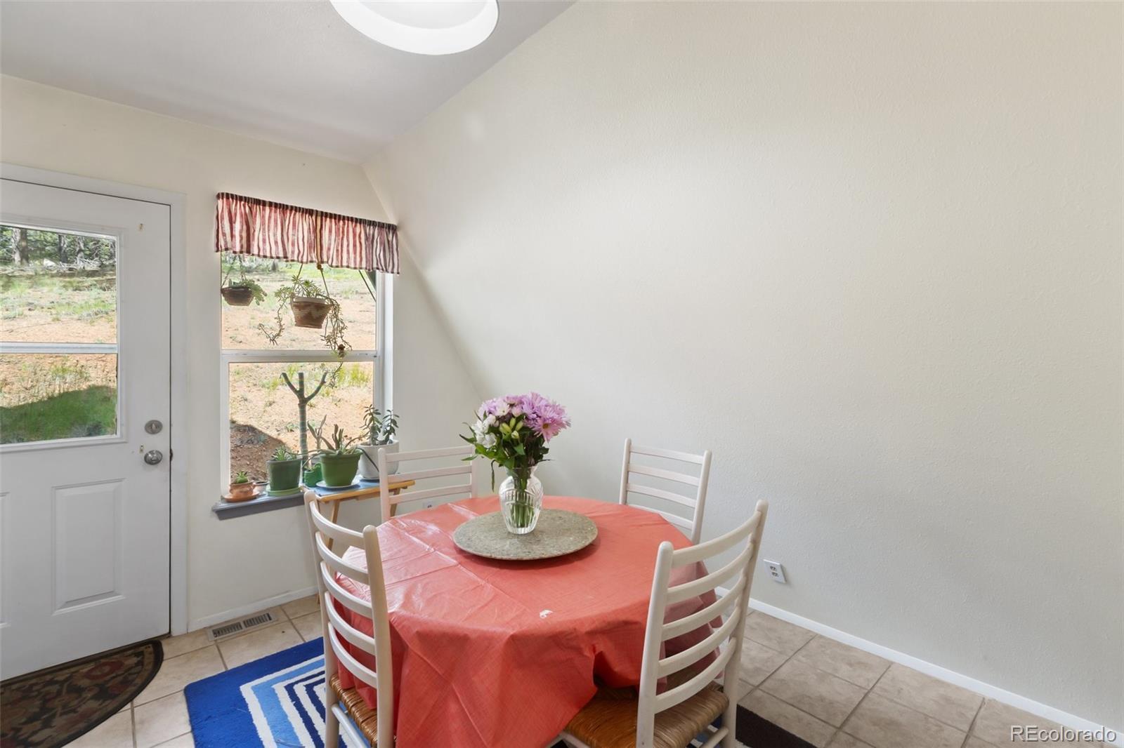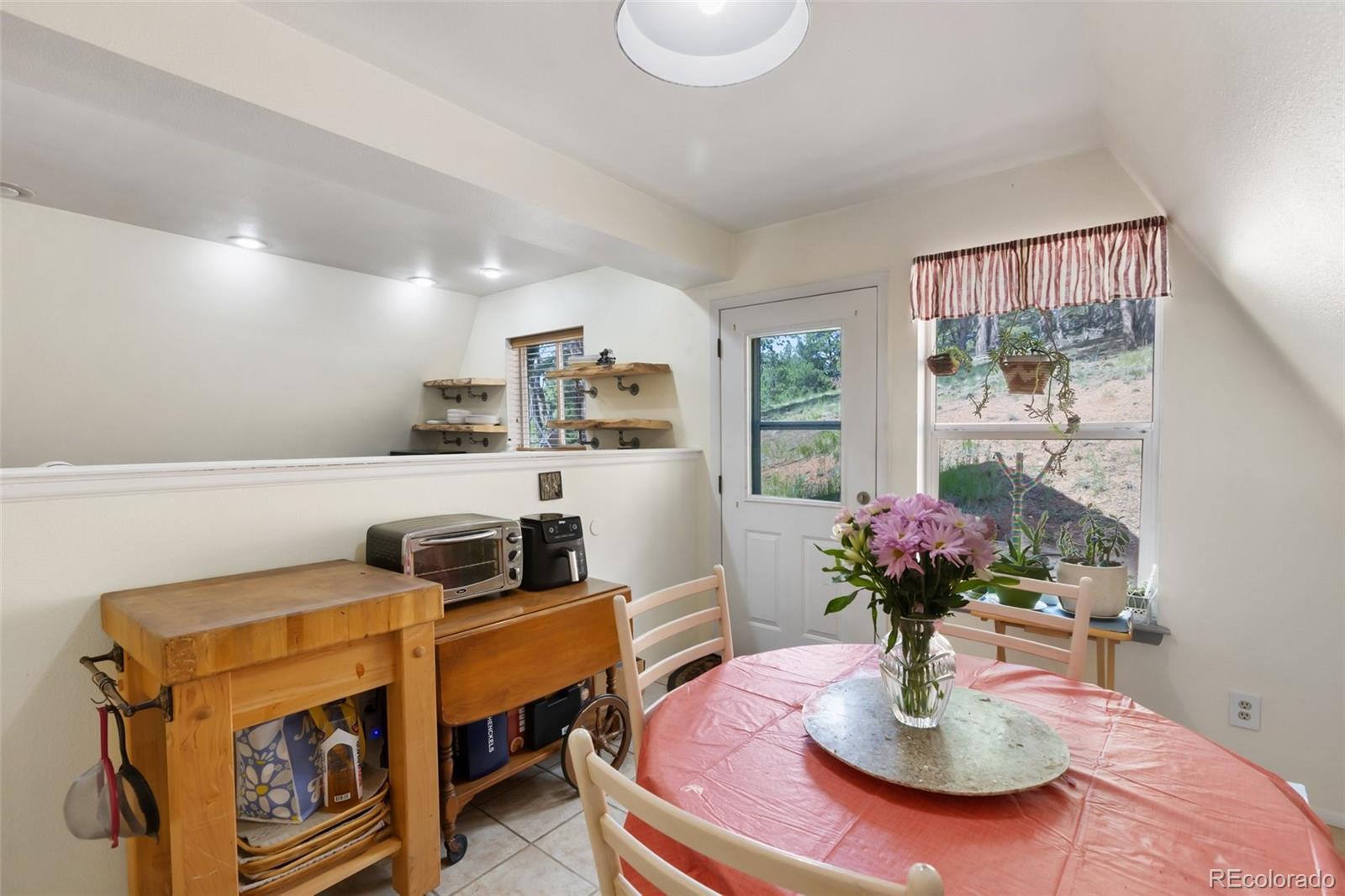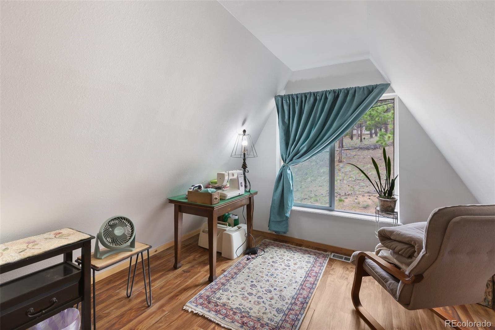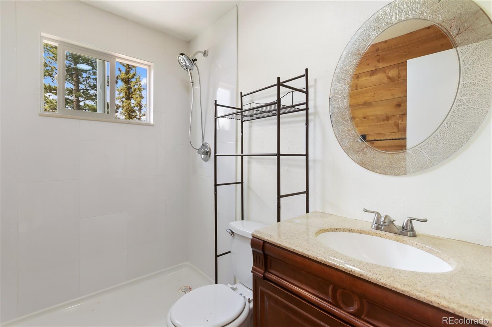 Well kept A Frame on 2 wooded acres located in Beautiful Spring Valley! Featuring 3 bedrooms and two newly remodeled sharp bathrooms that also include new plumbing! Attractive local milled hardwood is in the living room which features an expansive glass wall that takes in the beautiful wooded views. The living room has a sliding glass door that walks out to an expansive deck to enjoy the abundant wildlife from. There is also a wood burning fireplace to keep things cozy on those Colorado winter nights. Brand new class four metal roof that was just installed in 2025! Eat in kitchen has a dining area that also walks out to the private back yard. The lot was just professionally mitigated in 2024, helping with the homeowners insurance. Most properties in this subdivision have one acre, this property has two acres to enjoy life on! Walking distance to the gorgeous subdivision's Burgess Lake which provides stunning Pikes Peak Views! Located close to the National Forest which offers endless hiking, dirt biking and four wheeling. Spring Valley has 3 ponds and a gorgeous stocked lake. HOA Members can boat, fish, kayak, fish and ice fish. There is a club house that HOA members can use for family get togethers, parties, weddings, etc. Its a special place to live, rural , yet only 10 minutes from amenities and only 20 minutes from Woodland Park. Skiing is less than 2 hours away, along with many fishing/boating lakes and the famous Dream Stream. If you want mountain living in a well kept beautiful area, this is the place to be. This would make a great home, second home or long or short term rental. The septic has been cleaned and inspected. The deck and stairs have been recently painted.