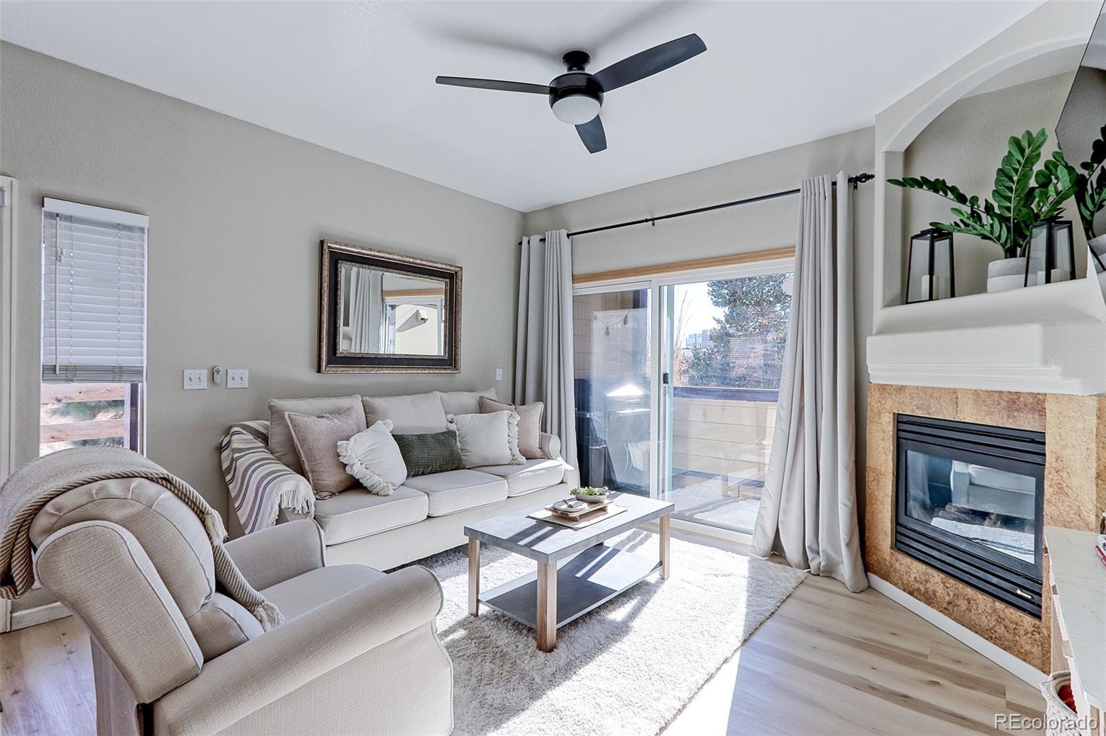 BEAUTIFULLY MAINTAINED! This sunny and open 3-bedroom, 2-bath main-floor condo with no stairs offers comfort, convenience, and standout features you won’t find elsewhere, including a front patio that faces a greenbelt (one of the only condos in the community with this setting) plus a second private patio with additional storage. The inviting interior features on-trend luxury vinyl plank flooring, neutral paint, a spacious living room with a cozy gas log fireplace, a bright dining area, and a well-equipped kitchen with stainless steel appliances. The primary suite includes a walk-in closet and a private bath with an oversized walk-in shower. A remarkably low HOA of just $250 per month—far below average—adds exceptional value and includes access to desirable community amenities such as a pool, clubhouse, and fitness center. Ideally located close to shopping, dining, and everyday conveniences with easy highway access, this move-in-ready condo checks every box for easy, low-maintenance living.