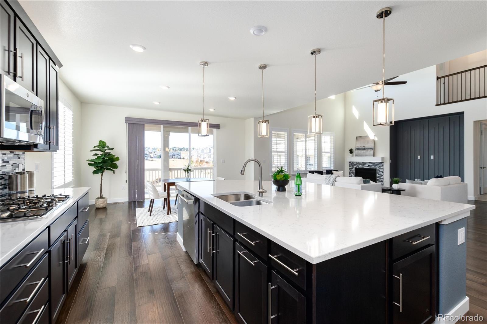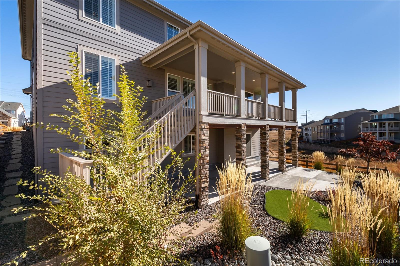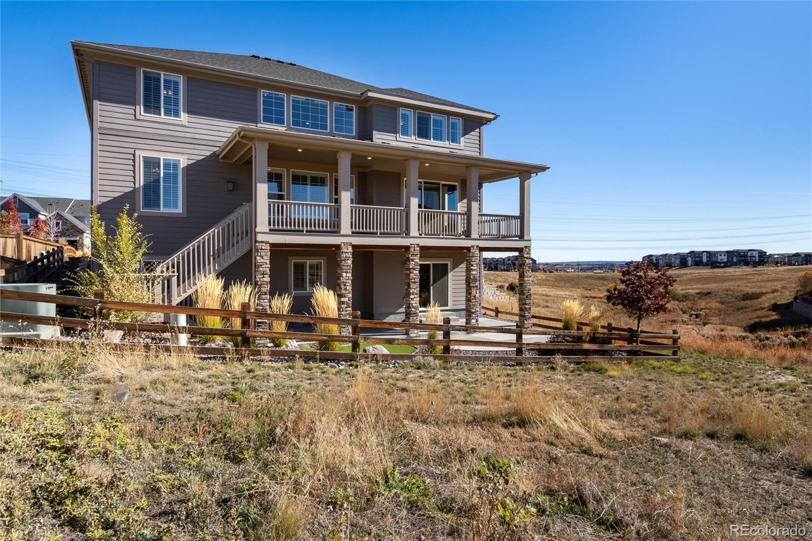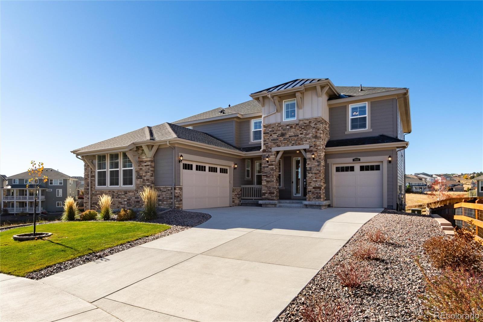 Discover this exceptional 5-bedroom, 7-bath home nestled on a cul-de-sac lot in Castle Pines. With breathtaking open space views, this home represents the pinnacle of Colorado luxury living. From the moment you enter, soaring ceilings and abundant natural light showcase the impeccable attention to detail and high-end finishes. The gourmet kitchen is a chef's dream, featuring a vast quartz island, top-of-the-line appliances, custom cabinetry, and a spacious walk-in pantry that makes organization effortless. Adjacent eat in space leads to the covered deck on the open space. The main level flows seamlessly from formal spaces to casual living areas, perfect for both intimate family moments and grand-scale entertaining. Upstairs, the luxurious primary suite offers a serene retreat, open space views and a spa-like bathroom including shower w dual shower heads and walk in closet with direct access to the upstairs laundry. Spacious loft offers a bonus living area, two additional bedrooms connected with a shared bath provide comfort and privacy for family and guests. The fully finished walkout basement transforms your lifestyle with a sophisticated wet bar and striking modern fireplace, creating the ultimate entertainment space. A 5th bedroom and bath for guests plus a powder bath with easy access from the family room. Bonus room is perfect for a home gym! Step outside to enjoy the Colorado sunshine on your patio while taking in the tranquil open space backdrop—no rear neighbors, just nature's beauty. So many upgrades: plantation shutters throughout, dual furnace and AC units, whole house humidifier, smart home features (thermostat, fans, lighting) and 2 garages with epoxy floor coating. Located in the Lagae Ranch neighborhood, you'll enjoy quick access to Castle Pines' award-winning amenities, top-rated Douglas County schools, world-class golf, dining, and convenient connections to Denver and DTC. The luxury lifestyle you've been searching for. Welcome home.