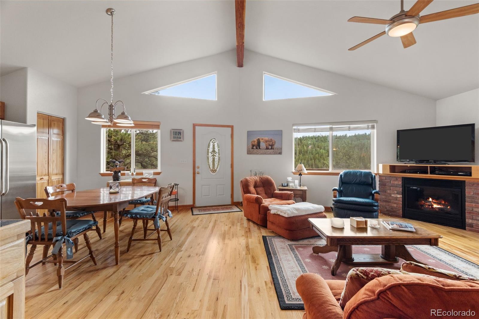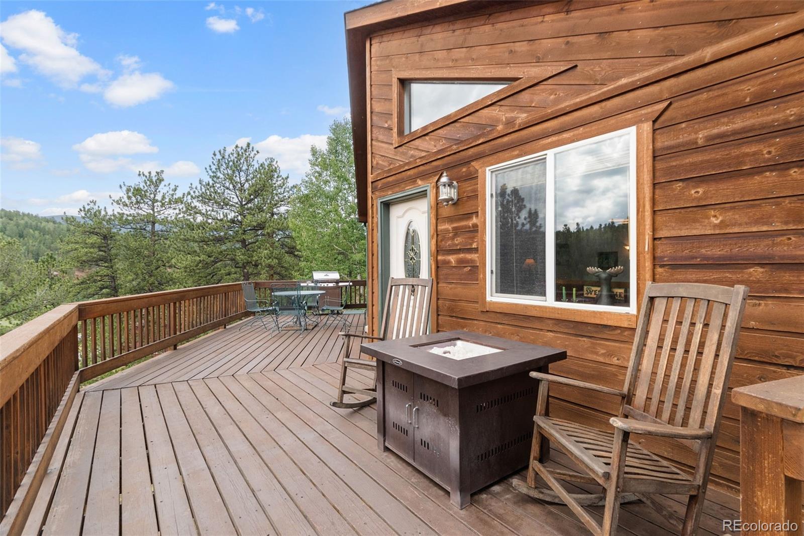 In the scenic community of Harris Park Estates in Bailey, this fully furnished mountain ranch offers a lifestyle defined by fresh air, sweeping views, and the quiet of the forest. The open layout with vaulted ceilings frames a warm and welcoming main level, where a gas fireplace anchors the living room and stainless steel appliances bring modern function to the kitchen. A wide southern-facing deck stretches across the back of the home, the perfect spot to watch the seasons change across the mountains. Downstairs, the unfinished walk-out basement waits to be transformed, whether into more living space, a workshop, or a gear-filled basecamp for all your outdoor pursuits. At the top of the property, there is a very large RV Storage Space (see photos) what you could easily park a full-size Camper, RV, or Fifth Wheel. Life here extends well beyond the walls of the home. The community offers fishing ponds, horse corrals, and direct access to Pike National Forest and the Mount Evans Wilderness, where hiking trails, wildlife, and high alpine beauty become part of everyday life. This is more than a home, it’s a place to live fully in the mountains.