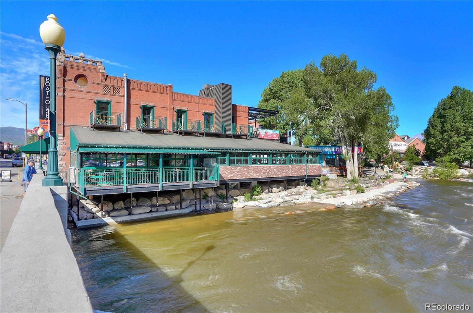 Welcome to West End, Salida’s newest neighborhood. This community of homes is perfectly located minutes from the Arkansas River and historic downtown Salida. Embrace the Colorado lifestyle surrounded by gold-medal fly fishing, whitewater, mountain biking, and annual festivals & events. Boasting a modern mountain aesthetic, this 1,501 sq. ft. three-story condo offers breathtaking mountain views from every window. The first floor features an attached garage and sunlit entryway that leads into a private bedroom (non-conforming could also be used as bonus room/office) with its own private bathroom, offering versatility and convenience – use it to fit your needs! The second floor is where you will find a great room that includes living, dining, and kitchen. The electric fireplace, chic lighting, and luxury vinyl plank flooring sets the ambiance, creating a cozy atmosphere that's perfect for relaxation. An open floor plan seamlessly connects the great room to the kitchen, complete with a pantry and half bathroom. The kitchen features LG stainless appliances, tile backsplash, and large Quartz counters with eat-in bar space. The balcony off the great room is perfect for outdoor entertaining with stairs leading down to the backyard and patio area. On the third floor, you'll find the primary bedroom with a lovely custom-tiled en-suite bathroom and views of S Mountain. The guest bedroom features a sliding glass door to its own private balcony with beautiful views of the mountains and another custom-tiled bathroom nearby. Don't miss your opportunity to experience the best of Salida living.
