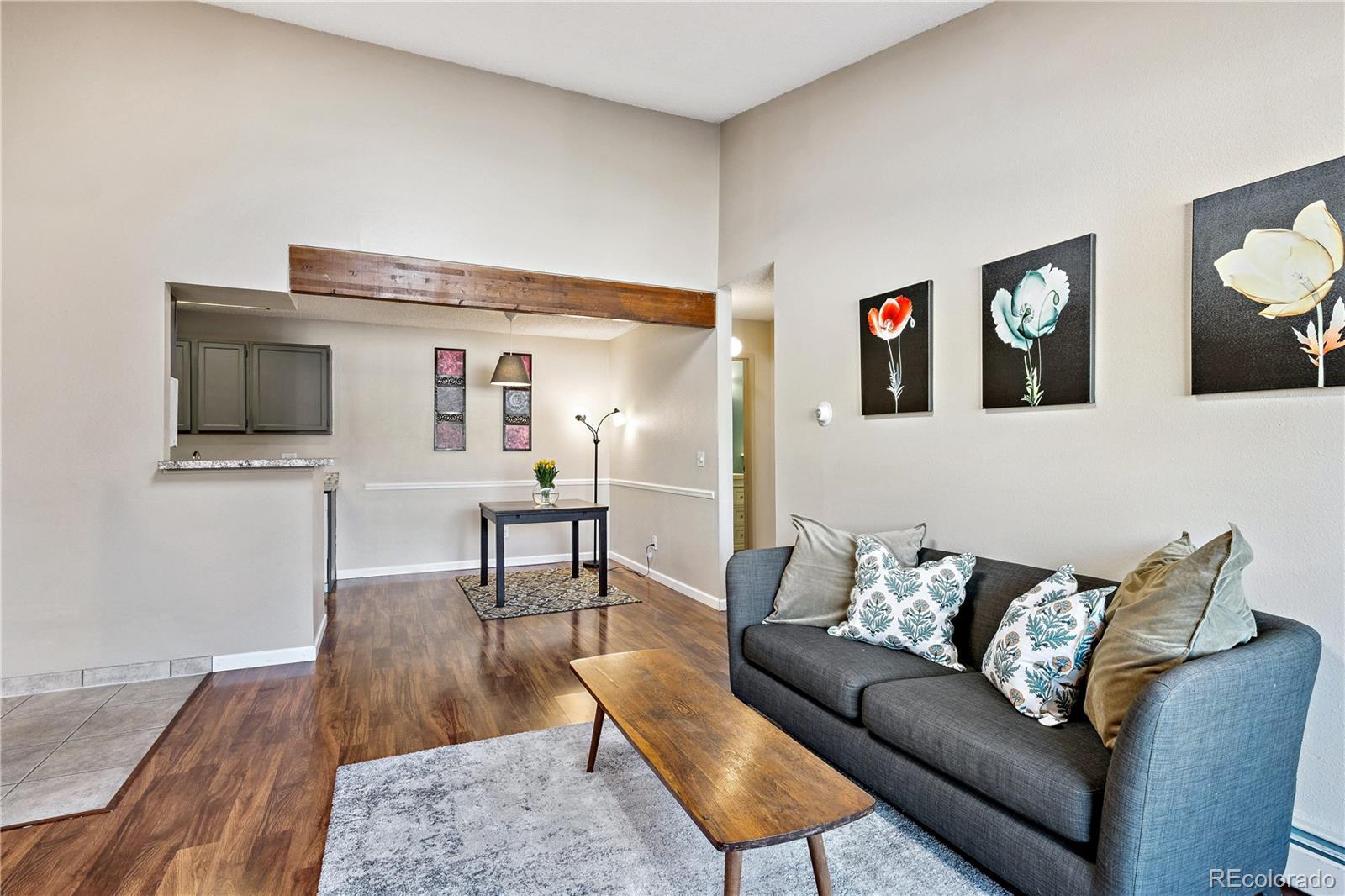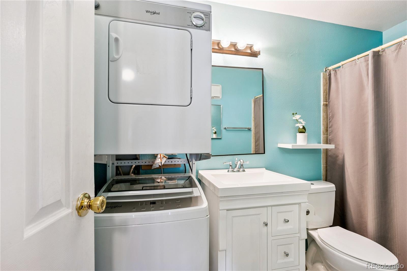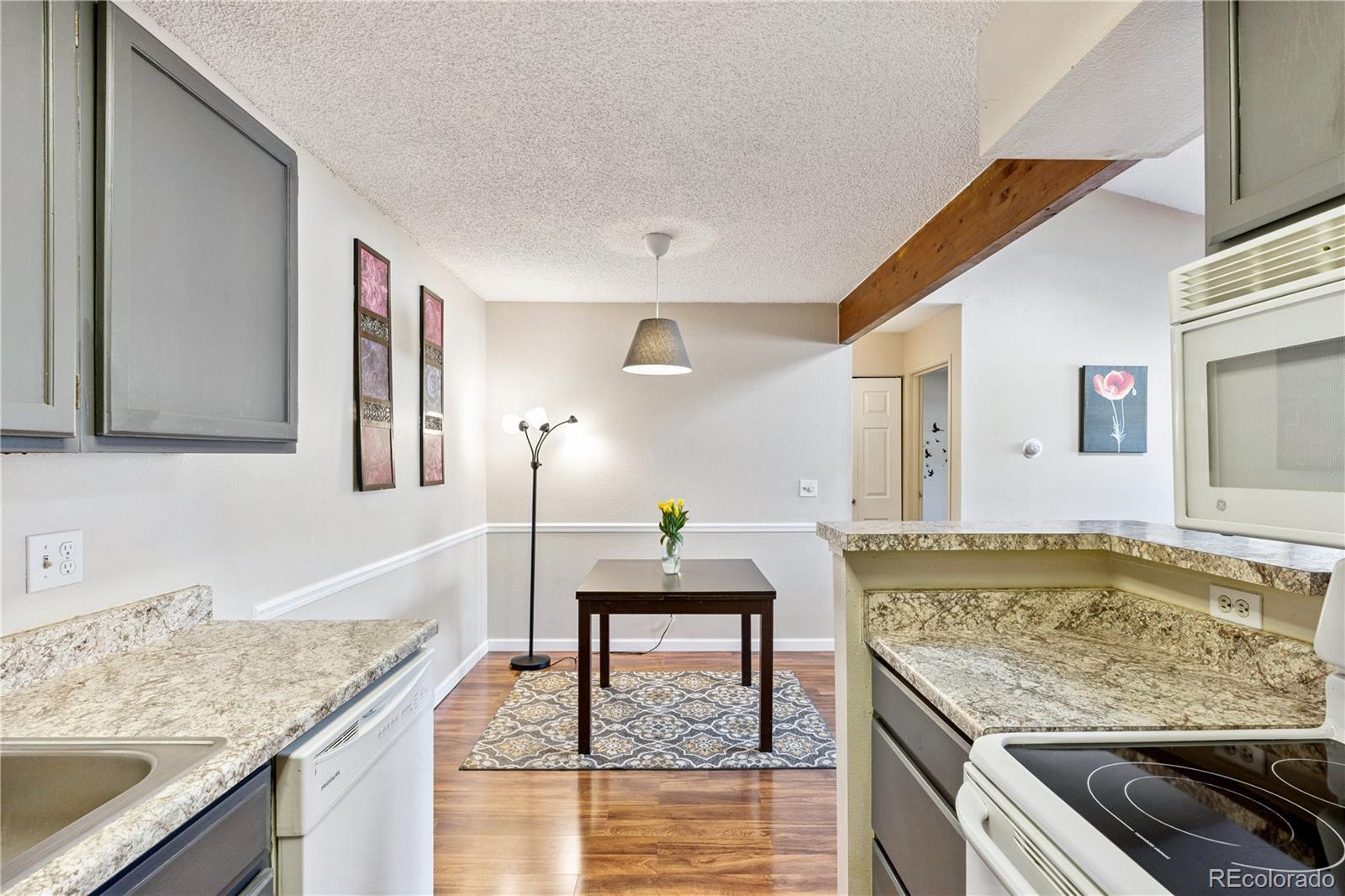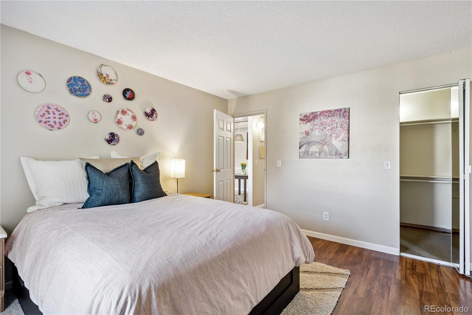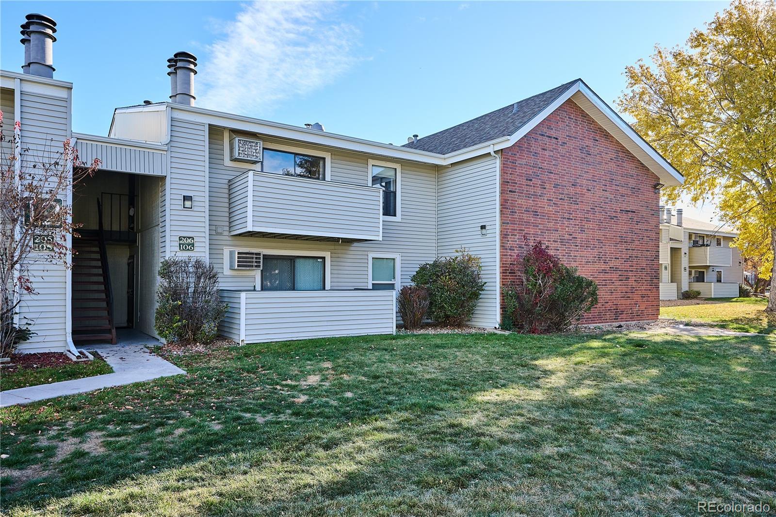 Welcome to this adorable condo in the Oak Park gated community, perfectly situated in a quiet spot by the park. This second-floor home includes a reserved parking space (#193) just steps from the entrance. The open living room feels bright and spacious with its vaulted ceiling and skylight and features a wood-burning fireplace and room air conditioners. Step out onto the balcony to enjoy peaceful views of the community park, and gated access to Ben Bezoff Park. The primary bedroom offers a walk-in closet and easy access to the hall bath. A stackable washer and dryer are included. Community amenities include pool, volleyball court, clubhouse, picnic pavilion, and playground area. The HOA fees include exterior and grounds maintenance, sewer, trash, water and other amenities. Centrally located near the Lowry neighborhood restaurants and shops, Anchutz Medical Campus, Children's Hospital in Aurora, the light rail, High Line Canal, and more! *Seller is offering a $4,000 concession to help buyers with closing costs or a rate buy-down*