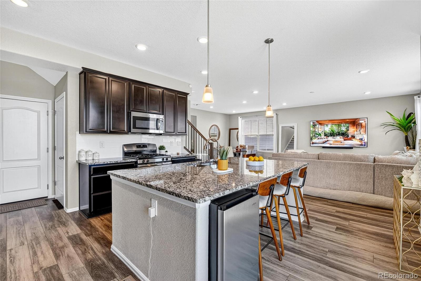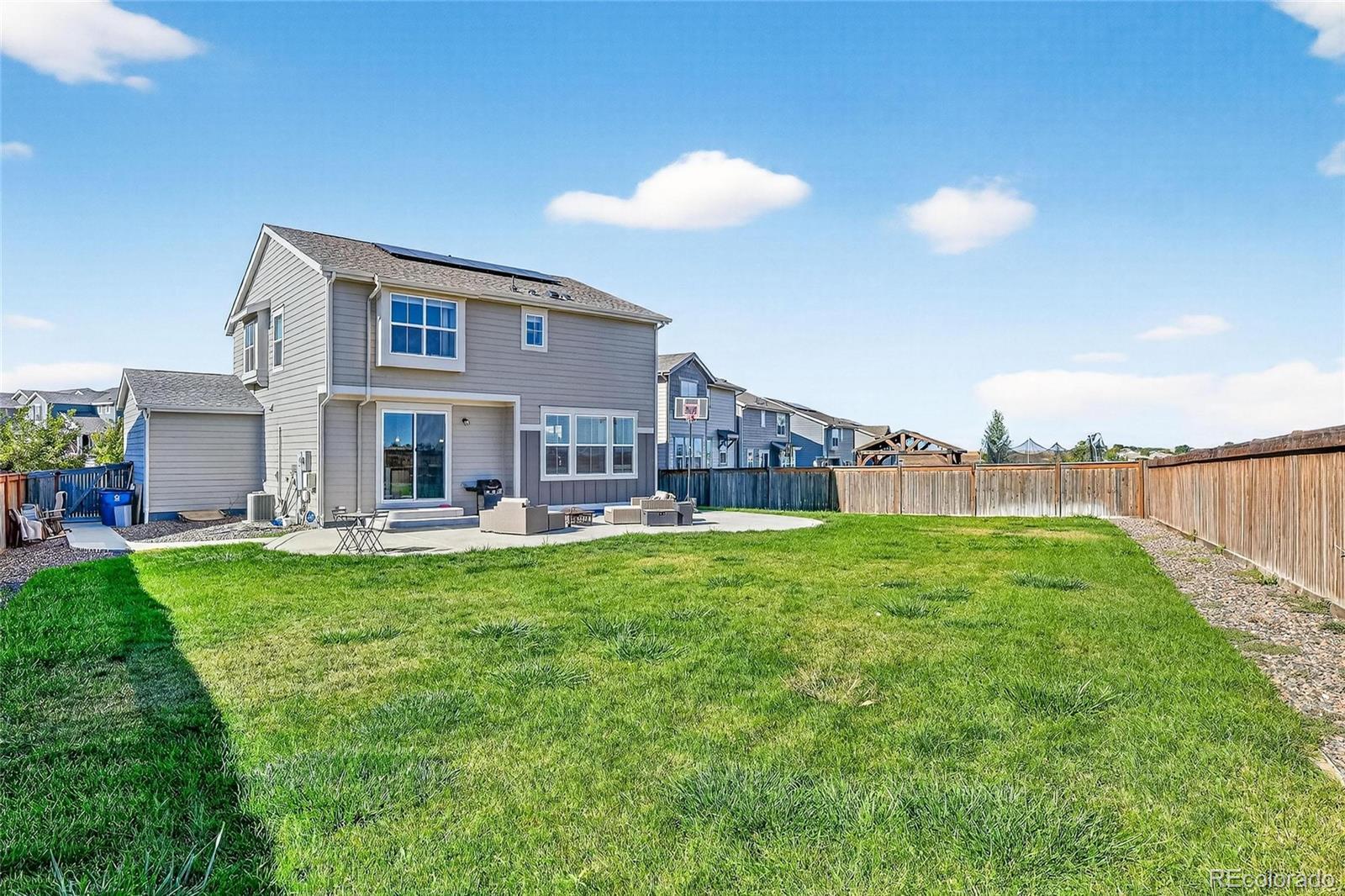 INCOME PROPERTY! One-of-a-kind home with over 3,500 sq. ft. of beautifully finished living space! This immaculate 5-bedroom, 5-bathroom property shines like new and offers an open-concept design perfect for entertaining. The massive kitchen boasts quartz countertops, an oversized island, and abundant storage—truly the heart of the home. The fully finished basement includes 2 bathrooms, a kitchenette, washer/dryer, and has been successfully rented for over a year—an incredible house-hack opportunity providing steady income. Spacious bedrooms feature large walk-in closets, and every detail reflects pride of ownership. Enjoy Colorado living on one of the largest lots in the neighborhood, complete with a huge concrete patio for gatherings. Energy costs stay exceptionally low thanks to leased solar panels. This home shows like a model, combining luxury, functionality, and income potential all in one!