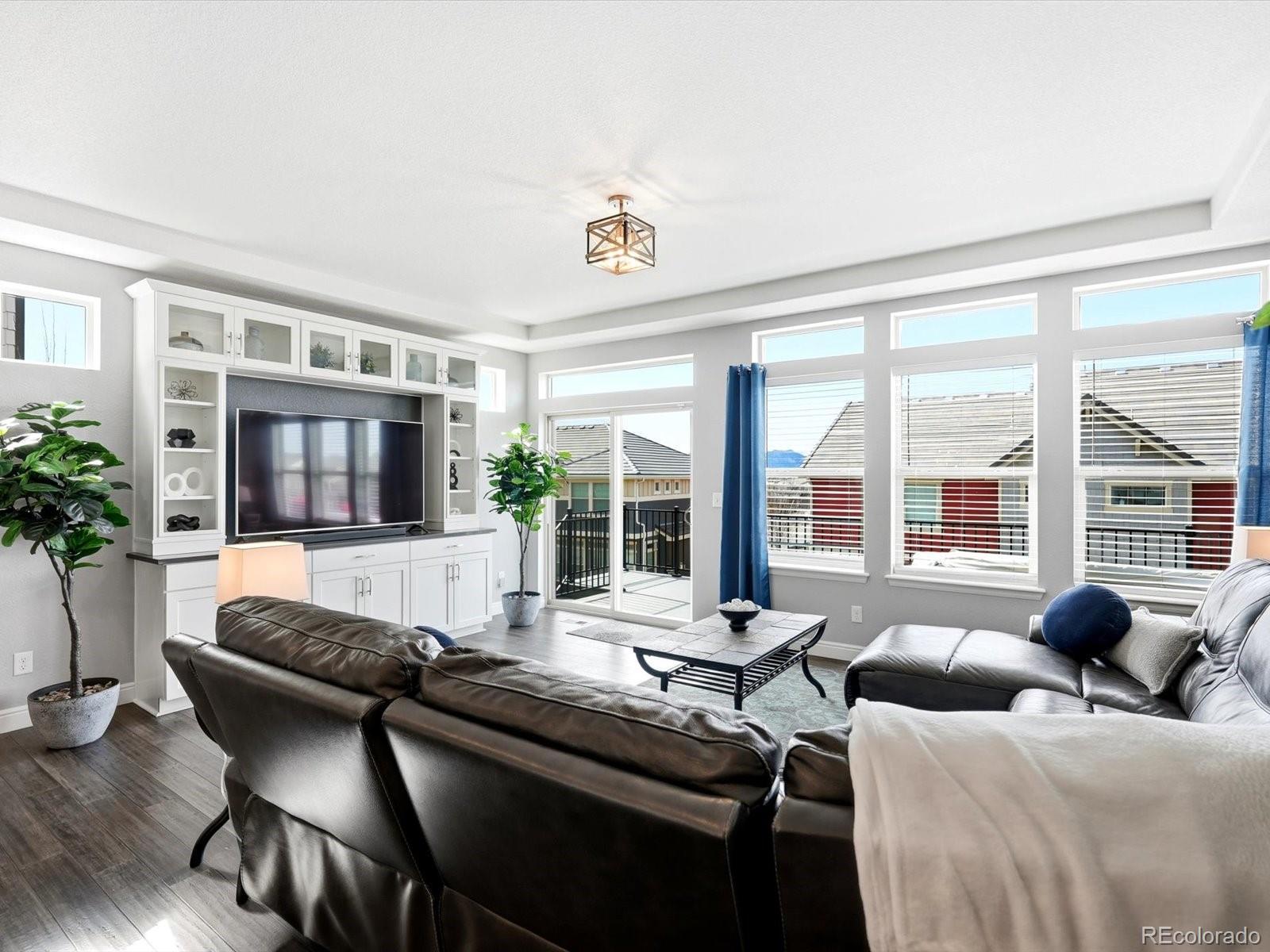Experience a masterclass in modern design at this stunning Erie Highlands residence, where luxury is matched by a highly functional layout. The heart of the home is an expansive open-concept great room, anchored by a sophisticated built-in entertainment center and a chef-inspired kitchen. Featuring a sleek waterfall island and premium finishes that flow seamlessly toward the dining area. From here, step out onto the extended deck—an ideal spot for sunset cocktails and alfresco dining. The main level is highlighted by a primary suite that rivals a five-star hotel. This private sanctuary offers ultimate convenience and high-end flair, featuring sleek built-ins with a dedicated coffee station for a seamless morning routine. The spa-like bath boasts a grand shower and a massive custom-designed closet. Adding to the main floor’s effortless flow is an additional bedroom with murphy bed and bathroom, providing the perfect setup for guests or a secondary office. Even the utility spaces have been elevated, with a laundry room featuring custom shelving for effortless organization. Upstairs, the home expands into a spacious loft, providing a versatile second living area along with a private bedroom and bathroom—perfect for guests or secluded home office. The walk-out basement is the ultimate "wow" factor of this home, designed with an industrial-chic aesthetic featuring polished epoxy floors. This level is built for hosting, boasting a full bar and an awesome family room centered around an oversized TV and a sleek, built-in electric fireplace. The true "X-factor" is the EVO electric door that tilts up to merge the indoor lounge with the brand-new lower patio. This seamless transition to the backyard creates an unparalleled indoor-outdoor entertaining experience, making this home the premier choice for the modern buyer. You’re just a short stroll or bike ride from the amazing community clubhouse, which features a lap pool, a kid-friendly pool with slides, and a fitness center.