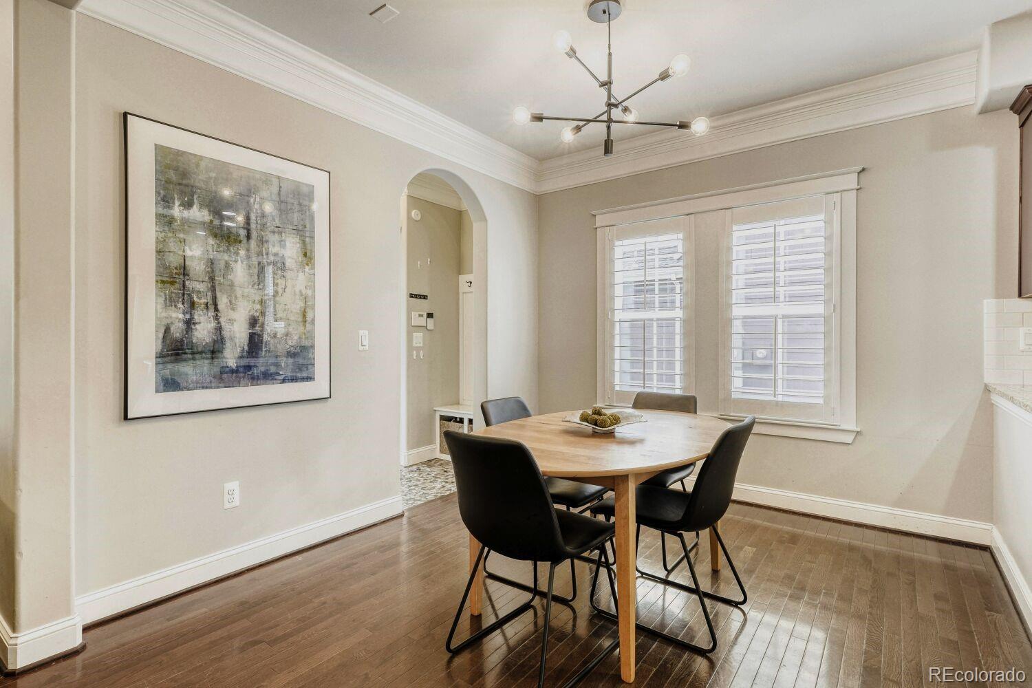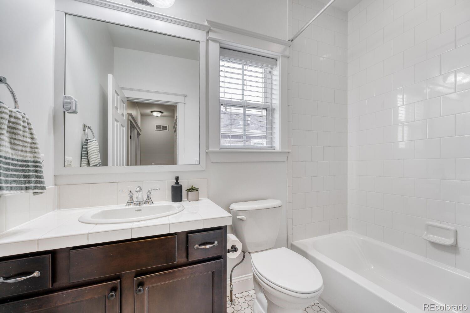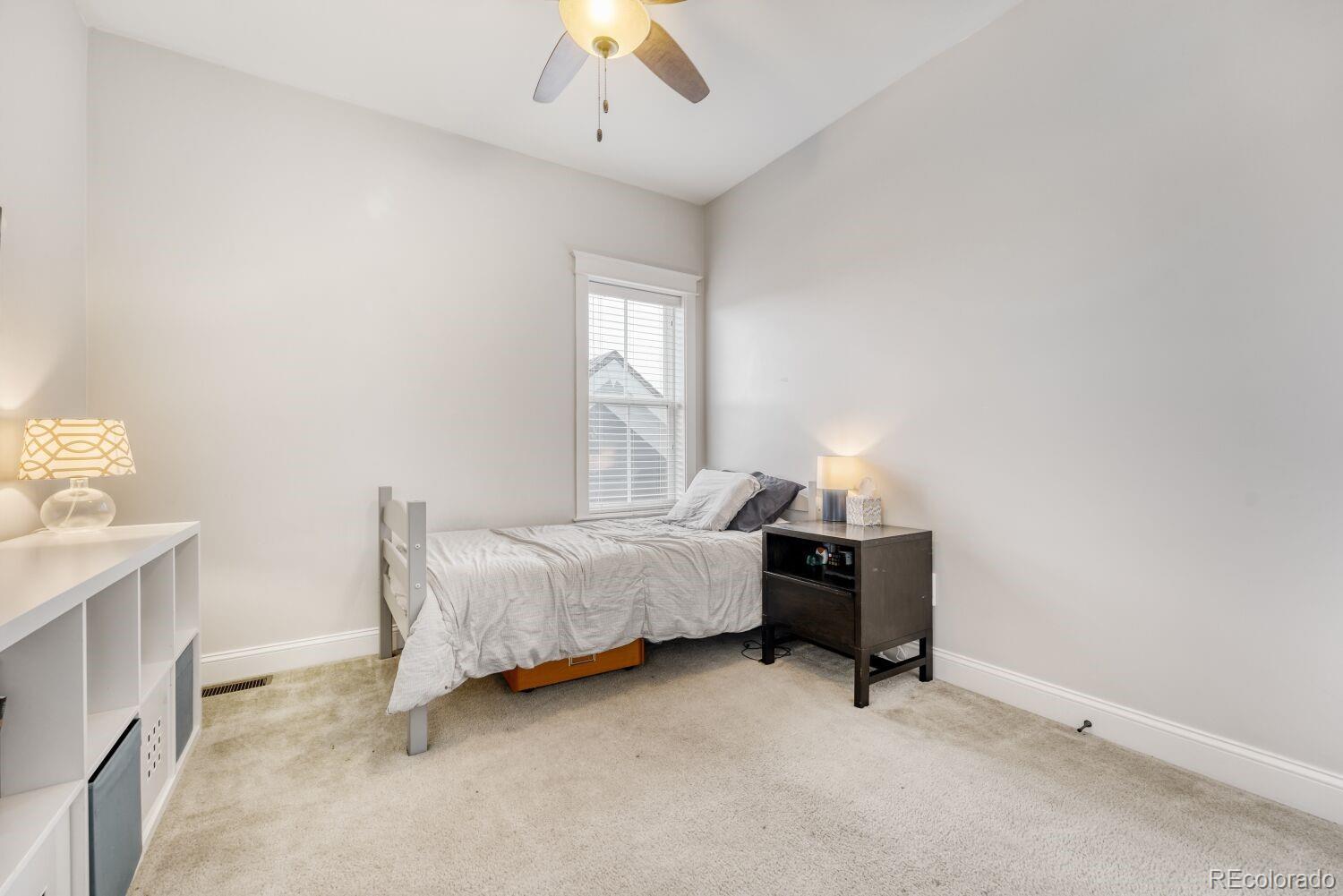 Experience refined comfort in this beautifully appointed Parkwood home in Central Park. Thoughtful upgrades shine throughout, including crown molding, hardwood floors, and louvered shutters. Professionally landscaped grounds lead to a welcoming front porch and foyer, opening to a home office and an inviting living room with a cozy gas fireplace. The seamless layout flows into the dining area and eat-in kitchen, featuring granite countertops, stainless steel appliances, and abundant cabinetry. A functional mudroom provides gear storage beside convenient powder bath. Outside, find a spacious backyard perfect for gatherings and outdoor dining on the patio, as well as an oversized EV compatible detached two-car garage with alley access and dog run. Upstairs, natural light fills the landing and guides you to a spacious primary suite with a five-piece bath, marble countertop and an oversized shower. Two additional bedrooms with generous closets, a full bath, and a convenient laundry closet complete the upper level. The recently remodeled basement offers exceptional versatility with a stylish wet bar, entertainment/study/gym area, conforming bedroom, bath with walk-in shower, and ample storage. Enjoy the peace of mind of a new roof (2025), and new exterior paint (2026), and smart Rachio sprinkler. Ideally located near Stanley Marketplace, Westerly Creek, Central Park Greenway, Central Park Town Center, Eastbridge and highly rated neighborhood schools.