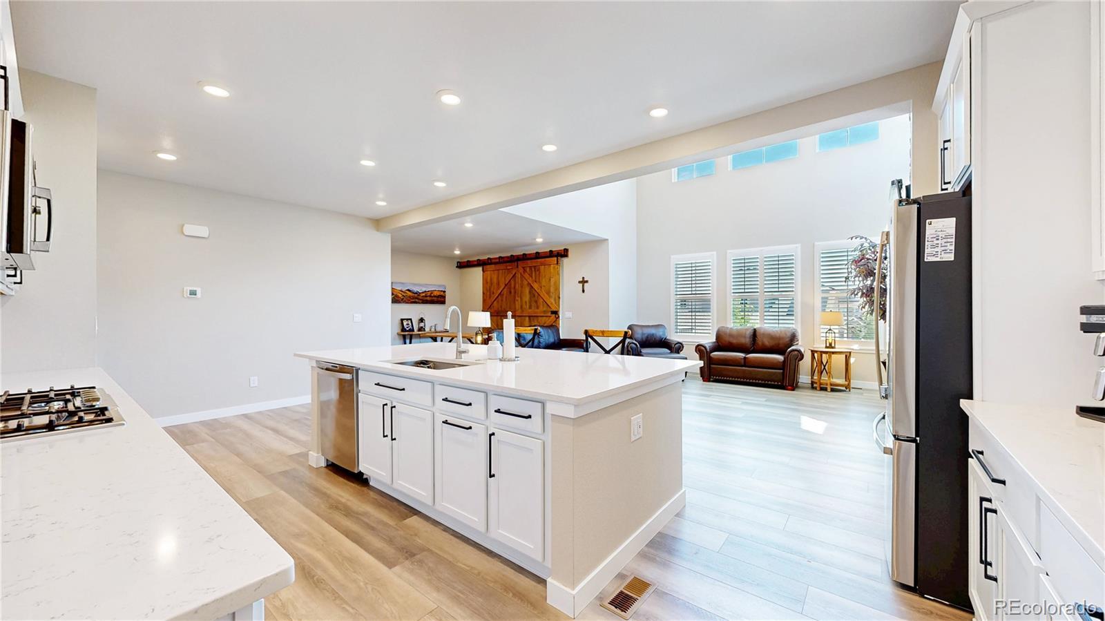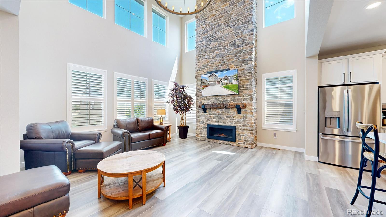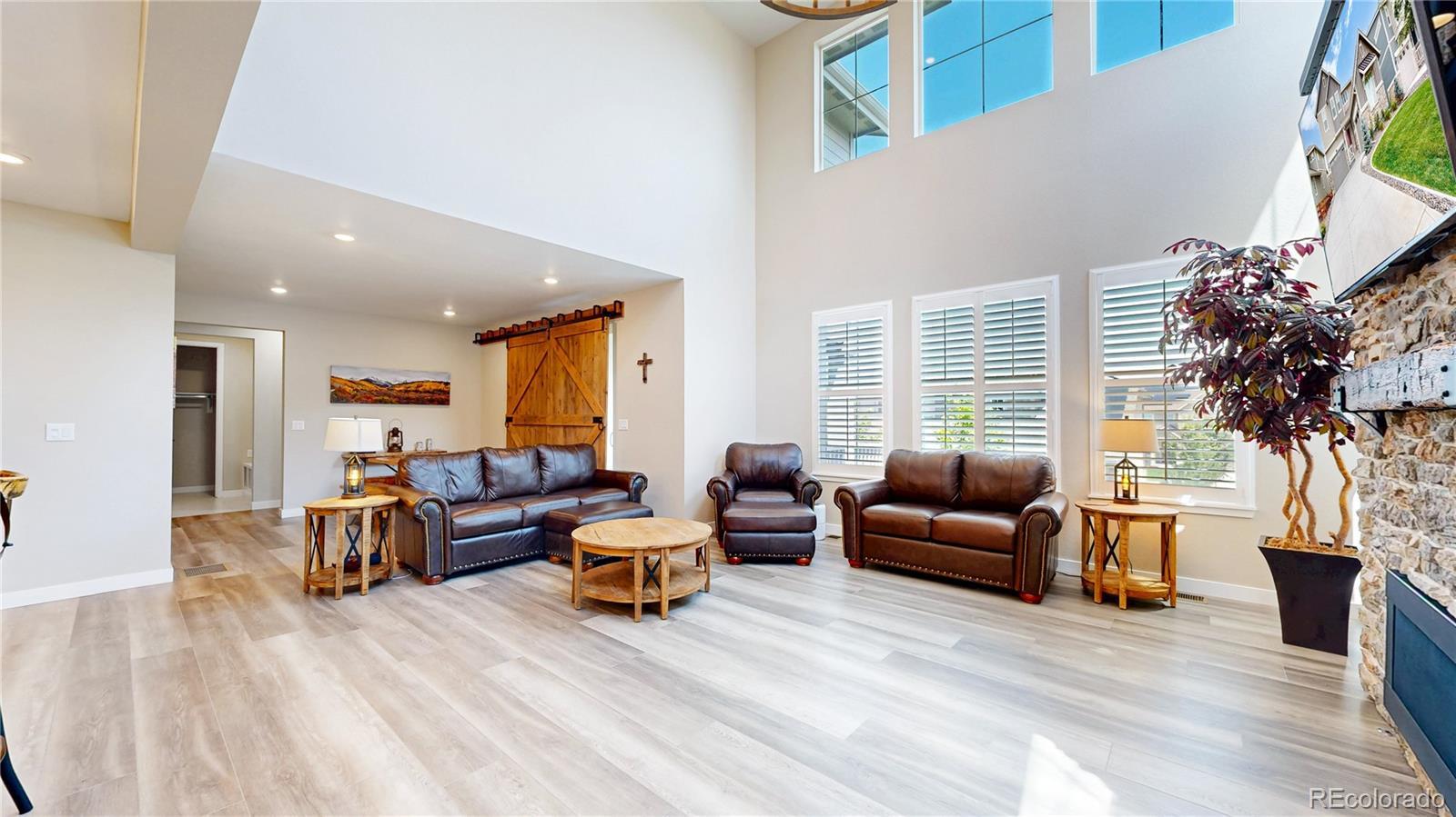 Discover Colorado casual elegance in this impeccably maintained, better-than-new home perfectly situated on a quiet cul-de-sac. Inside, you'll find a bright, open floorplan featuring a striking two-story stone fireplace with custom mantle and up-down lighting, plantation shutters throughout, and gorgeous quartz countertops. The gourmet kitchen is a chef's dream with a large quartz island, Bosch gas range, full tile backsplash, and a walk-in pantry. The main level offers a flexible bedroom/office space, while the upper level boasts a luxurious master suite with spa-like bath and walk-in closet, two additional bedrooms connected by a Jack-and-Jill bath, plus a private guest suite with a lock-out bath. A custom sliding barn door leads to a covered deck overlooking a beautifully landscaped backyard, complete with stamped concrete patios, raised garden beds, natural gas firepit (dedicated line), an abundance of mature trees and custom concrete curbing framing it all. With two garages-both featuring custom epoxy floors, overhead storage, and upgraded insulation-this home combines function and style. Added comforts include a new Class IV roof (2023), upgraded attic insulation, and an unfinished walk-out basement ready for your touch. Enjoy the neighborhood amenities; playground park, greenbelt, almost four miles of walking paths INSIDE the subdivision, and a beautiful pool. HOA is under $90/mo! All of this plus quick access to Longmont, Boulder, Denver, and I-25. This is spacious, upgraded living without the Boulder County price tag-move-in ready with every detail done!