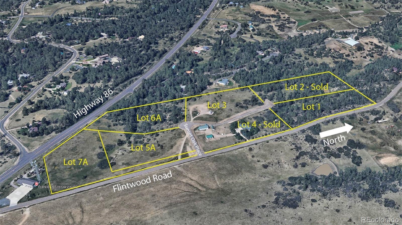 Welcome to Vista Hills—a new community of 5-acre lots ideally situated between Franktown and Elizabeth. This parcel sits adjacent to Flintwood Road and will allow for a private drive from Sunset Oaks Place. With a mostly level landscape and the possibility for a walk-out or garden level basement, this lot offers flexibility for designing and building your custom dream home. From the southern portion of the lot, enjoy sweeping Front Range views. Zoned Rural Residential, the property welcomes a variety of livestock—horses, goats, llamas, alpacas, donkeys, and chickens—and is well-suited for a barn, workshop, greenhouse, or grazing pasture. Thoughtful covenants allow for building a more modest custom home. Each lot in the community will be serviced by propane and require a private well and septic. Located in the Douglas County School District, Vista Hills combines the tranquility of Colorado country living while being conveniently located to Castle Rock, Elizabeth and Parker.