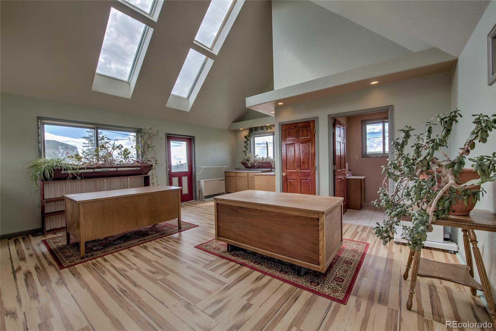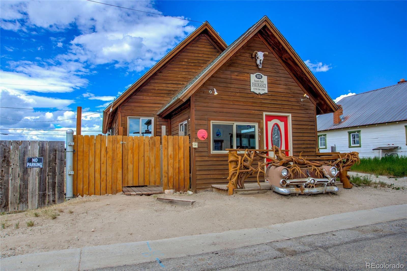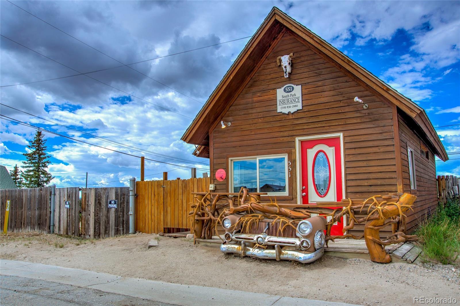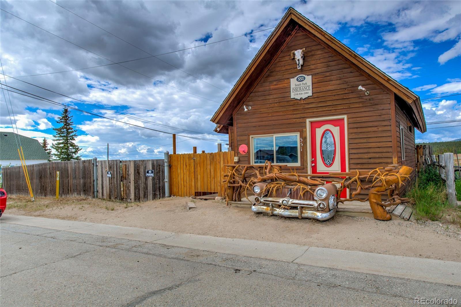 This downtown Fairplay, Front Street property is located in Town Center zoning over-looking the Middle Fork of the South Platte River, the famous Fairplay Beach, the Mosquito Mountain Range with views towards Buffalo and Sheep Mountains. The building is currently set up as an office space, bright and open with vaulted ceilings and skylights that warm up the room. Built in shelving, kitchen counter with sink, 1/2-bathroom and Renai natural-gas heater. Walking through the back yard, you will see just how special this location really is along with the potential for future expansion. One block off Main Street (Highway 9) with easy access and visibility from 6th Street. Take a stroll down Historic Front Street and experience a Blast from the Past with Old Town charm, the Hand Hotel, South Park Musuem and several artist, retail and restaurants to enjoy. Home of Burro Days, this location is just a few yards from the start and finish line, and one of the best spots for Independence Day Celebrations! Turn the open sign around to GONE FISHING and head on down to Fairplay Beach with your fly-rod for some of the best trout fishing in Colorado on your lunch break. Nature trails connect the river park and abundant wildlife traverse the wetlands below. The occasional moose will appear and even walk through town looking for some grass, an aspen tree or willow to chomp on. This is a must-see property if you are seeking that special lifestyle location to anchor your business in. Less than 30 minutes from Breckenridge and World-Class Resort amenities with Summit Stage Bus access. 90 minutes to Denver or Colorado Springs. 35 minutes to Buena Vista and the Arkansas Valley. Surrounded by locals and second homeowners looking for the small-town experience with local identity, Fairplay is in the Center of Colorado and the place to call home, slow down and smell the roses, or escape from the concrete jungle that attracts visitors and new residents alike.