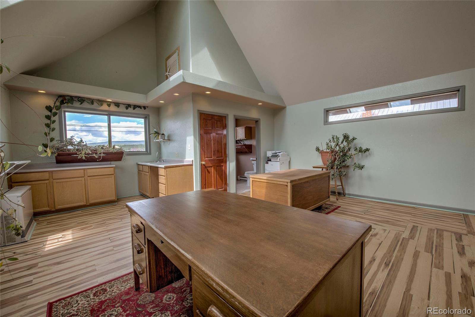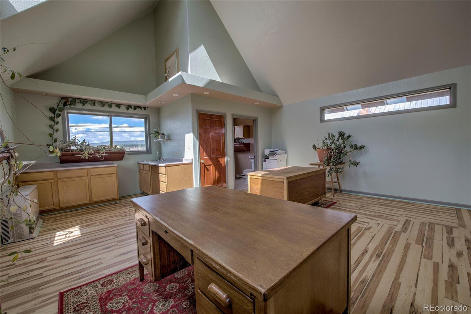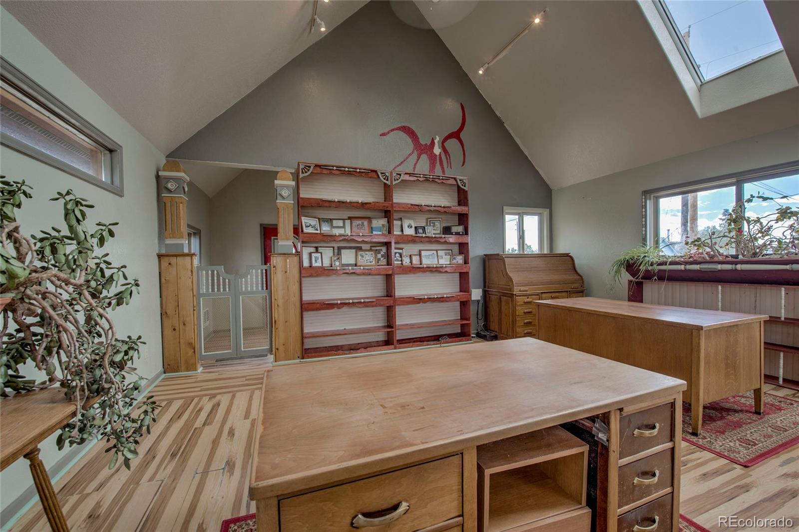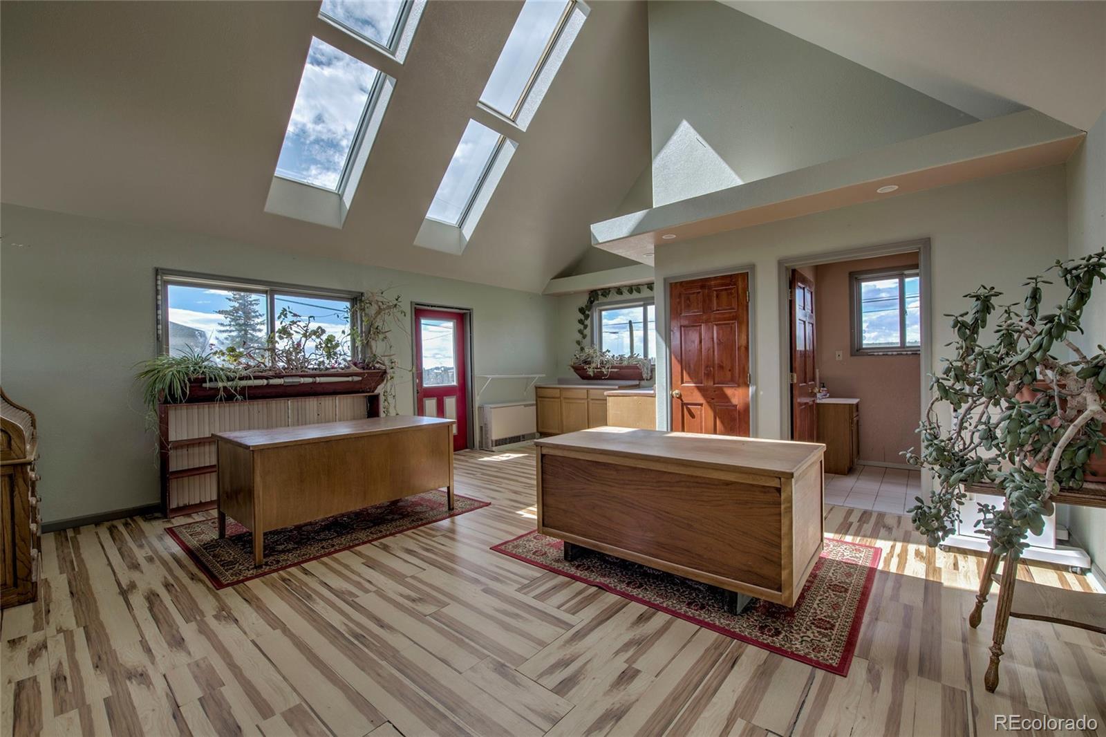 This downtown Fairplay, Front Street property is located in Town Center zoning over-looking the Middle Fork of the South Platte River, the famous Fairplay Beach, the Mosquito Mountain Range with views towards Buffalo and Sheep Mountains. The building is currently set up as an office space, bright and open with vaulted ceilings and skylights that warm up the room. Built in shelving, kitchen counter with sink, 1/2-bathroom and Renai natural-gas heater. Walking through the back yard, you will see just how special this location really is along with the potential for future expansion. One block off Main Street (Highway 9) with easy access and visibility from 6th Street. Take a stroll down Historic Front Street and experience a Blast from the Past with Old Town charm, the Hand Hotel, South Park Musuem and several artist, retail and restaurants to enjoy. Home of Burro Days, this location is just a few yards from the start and finish line, and one of the best spots for Independence Day Celebrations! Turn the open sign around to GONE FISHING and head on down to Fairplay Beach with your fly-rod for some of the best trout fishing in Colorado on your lunch break. Nature trails connect the river park and abundant wildlife traverse the wetlands below. The occasional moose will appear and even walk through town looking for some grass, an aspen tree or willow to chomp on. This is a must-see property if you are seeking that special lifestyle location to anchor your business in. Less than 30 minutes from Breckenridge and World-Class Resort amenities with Summit Stage Bus access. 90 minutes to Denver or Colorado Springs. 35 minutes to Buena Vista and the Arkansas Valley. Surrounded by locals and second homeowners looking for the small-town experience with local identity, Fairplay is in the Center of Colorado and the place to call home, slow down and smell the roses, or escape from the concrete jungle that attracts visitors and new residents alike.