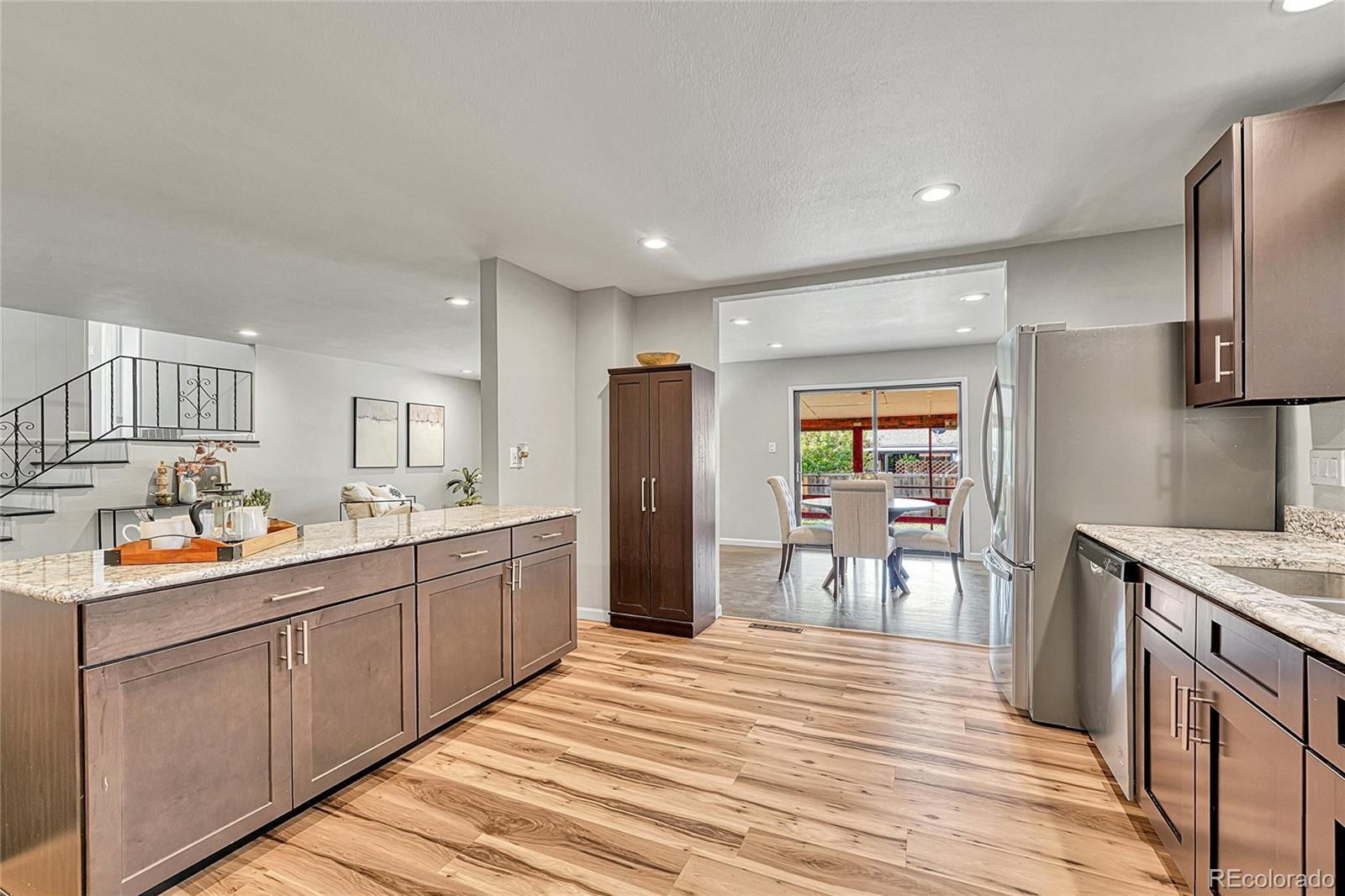 Step inside this spacious three-level home with an open-concept design and a large basement. Space will never be an issue here - with 2 living rooms, 5 bedrooms, 1 (ea) full bathroom and 2 (ea) ¾ bathrooms! The newly remodeled kitchen features brand-new cabinets, appliances, and flooring. The open flow between the kitchen, dining, and living areas makes this home perfect for entertaining or enjoying everyday life. The interior of the home is newly painted. Access to back yard and patio from dining room. Complete with a covered patio and fully fenced, this outdoor space is ideal for summer gatherings or simply relaxing. Upstairs, the primary suite boasts an updated bathroom. Two additional bedrooms, along with another full bathroom provide plenty of options for family, guests, a home office, or even a workout room. On the lower level, you’ll find another spacious family room with a cozy fireplace, as well as another bedroom and bathroom. The basement includes another finished bedroom, along with a laundry area that offers endless possibilities, from storage to future expansion. The attached two-car garage and extended driveway provide ample parking. Sitting on a desirable corner lot, the home also features a newly xeriscape front yard for water conservation and easy maintenance, adding to its excellent curb appeal. Schedule your showing today!