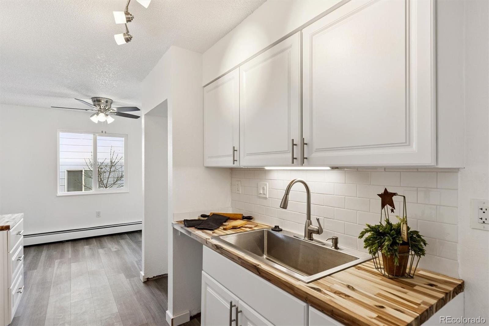 Experience modern living at its finest in this fully updated two-bedroom townhome where every detail has been thoughtfully renovated. From top to bottom, this residence showcases light and bright finishes. Step inside to discover new flooring that flows throughout, complementing the fresh, professionally applied paint. The gally kitchen, featuring brand-new cabinetry, and stylish countertops. Open-concept main floor, where the kitchen, dining, and living areas connect effortlessly for both relaxed evenings and social gatherings. Large windows bathe the space in natural light while offering pleasant views of the community pool area—positioned right outside for ultimate convenience. Upstairs, two inviting bedrooms await, including a primary suite with excellent closet space. The second bedroom provides flexible space—ideal as a guest room, home office, or creative studio. The refreshed full bathroom serves both bedrooms. At 922 square feet across two levels, this townhome maximizes every inch. Practical features include a shared one-car garage with storage space and a newer boiler system ensuring reliable comfort year-round. Newer boiler unit and hot water heater. Hampden Villas offers resort-style amenities including a pool, park areas, and playground facilities within beautifully landscaped grounds. Location advantages abound: quick access to Hampden Avenue and 6th Avenue, minutes to Belmar's abundant shopping and dining, and neighboring the Bear Creek Greenbelt trails. Restaurants, parks, and public transportation are all within walking distance. This exceptional townhome combines complete updates with unbeatable convenience and low HOA fees—a rare find in today's market.