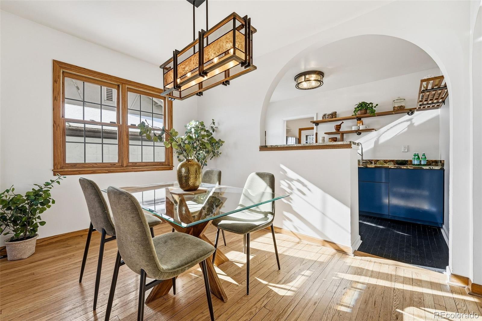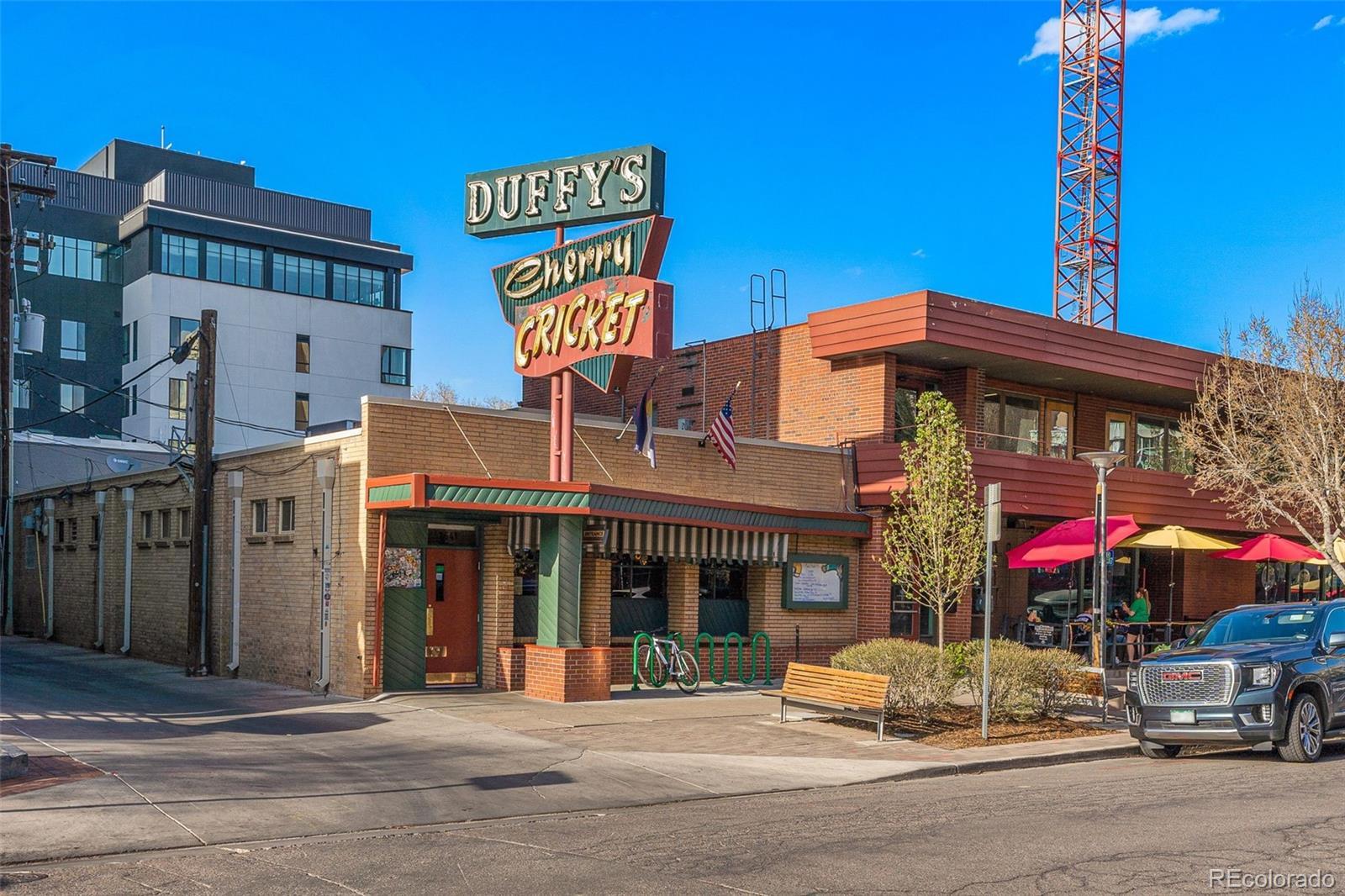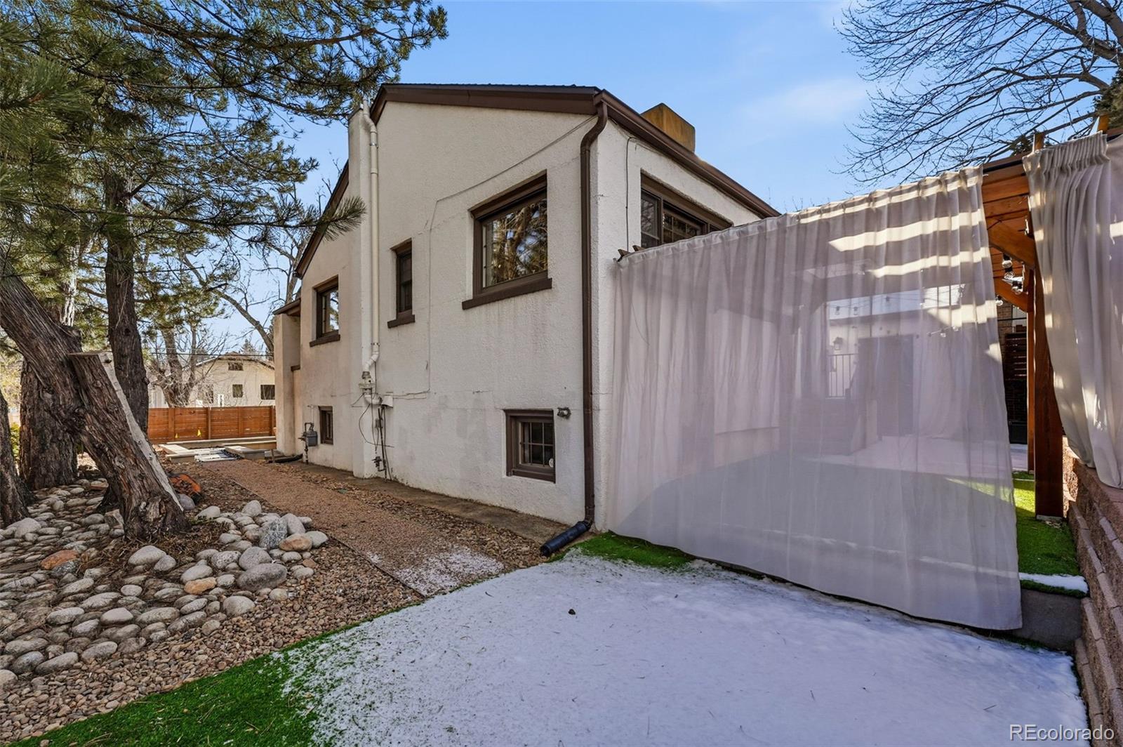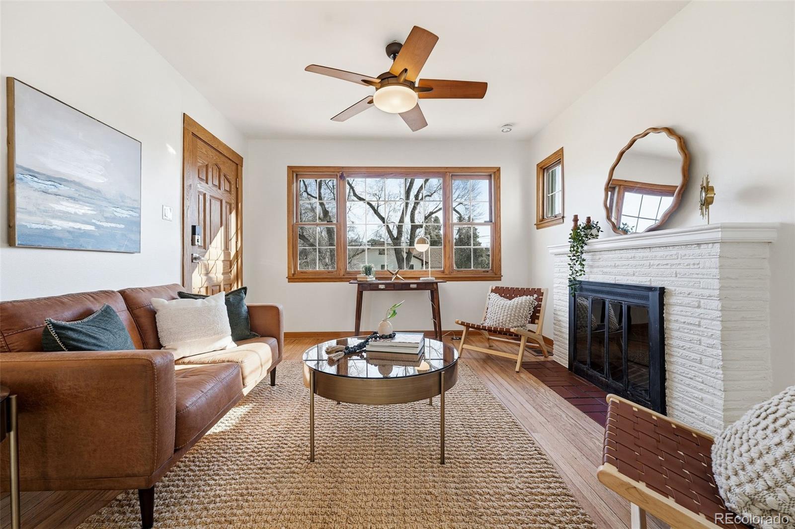 Charming and updated bungalow in Cherry Creek North offers a blend of classic character and modern comfort. This thoughtfully designed home includes three bedrooms and two bathrooms with a flexible layout perfect for everyday living and entertaining. The main floor has two bedrooms and one full bathroom, hardwood flooring, a cozy living room with a fireplace, and natural light throughout. The kitchen flows into adjacent spaces, making meal prep and gatherings effortless. The finished basement adds valuable living space, providing room for a family room, recreation space, or home office along with additional storage options. This level also includes a non-conforming bedroom and ¾ bath. Recent updates include a newer roof, windows, evaporative cooler, and furnace. Exterior features include a welcoming front porch, fully fenced yard for privacy, a variety of fruit trees and beautiful landscaping. The private backyard patio is perfect for hosting outdoor movies and watch parties. The oversized detached two-car garage offers off-street parking and additional storage. Situated on a corner lot in a highly desirable area, this home is close to vibrant dining, shopping, parks, and transit options. The combination of location, thoughtful updates, and classic architectural charm creates a rare opportunity for those seeking a move-in ready home with flexibility for the way you live. Discover comfort, character, and convenience in this delightful Cherry Creek residence.