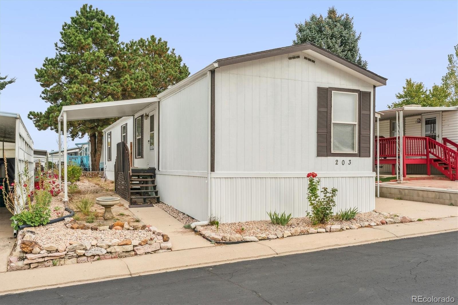Welcome to La Cresta Mobile Estates, a well-maintained 55+ community offering resort-style amenities and a welcoming atmosphere. Residents can enjoy a heated indoor pool, relaxing hot tub, saunas, billiards room, and a full calendar of community activities. Lot 203 is a 2-bedroom, 2-bathroom home built in 2000, featuring 960 square feet of comfortable living space. The exterior is highlighted by crisp white siding, clean skirting, and a covered carport that provides convenient, protected parking. Inside, vaulted ceilings and multiple ceiling fans create an open, airy feel throughout the home. The family room is bright and inviting with plenty of natural light, flowing seamlessly into the kitchen area that offers ample cabinet storage, included appliances, and barstool seating at the peninsula. The primary bedroom is spacious with vaulted ceilings and an en suite bathroom featuring a walk-in shower and single-sink vanity. The secondary bedroom offers generous space and large windows, while the second bath includes a shower-tub combo for added flexibility. Washer and dryer are included. Enjoy comfortable living in a friendly, active 55+ community with excellent amenities. CALL TO SCHEDULE A SHOWING TODAY!