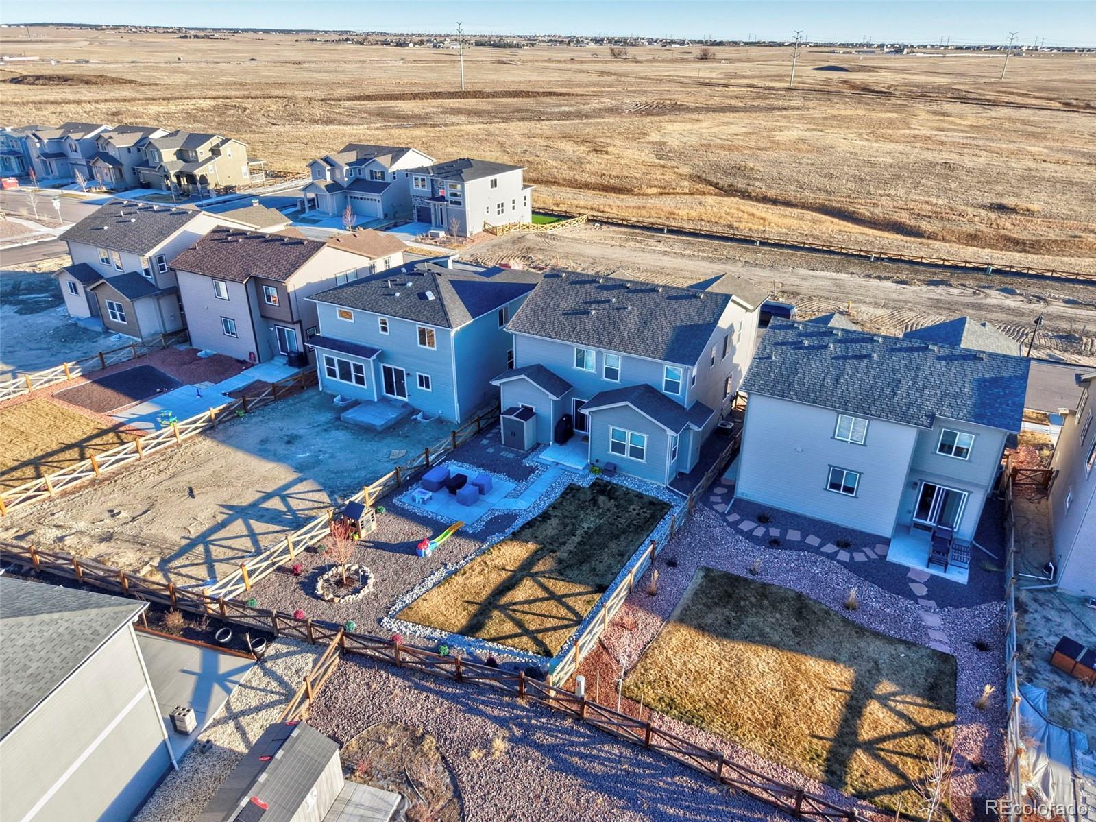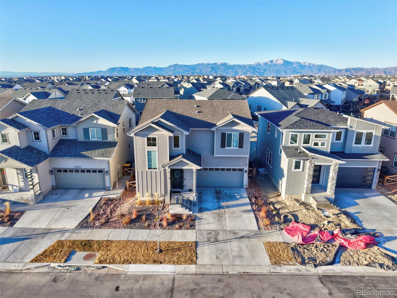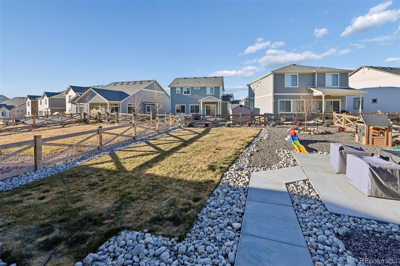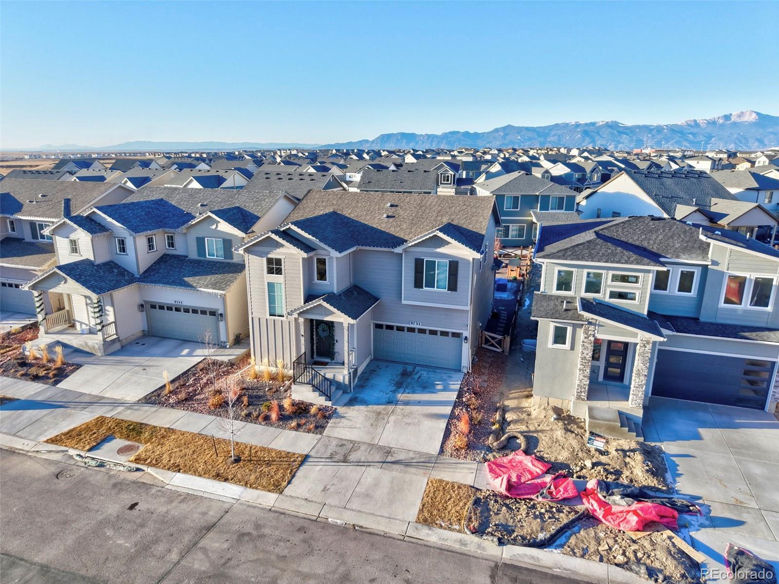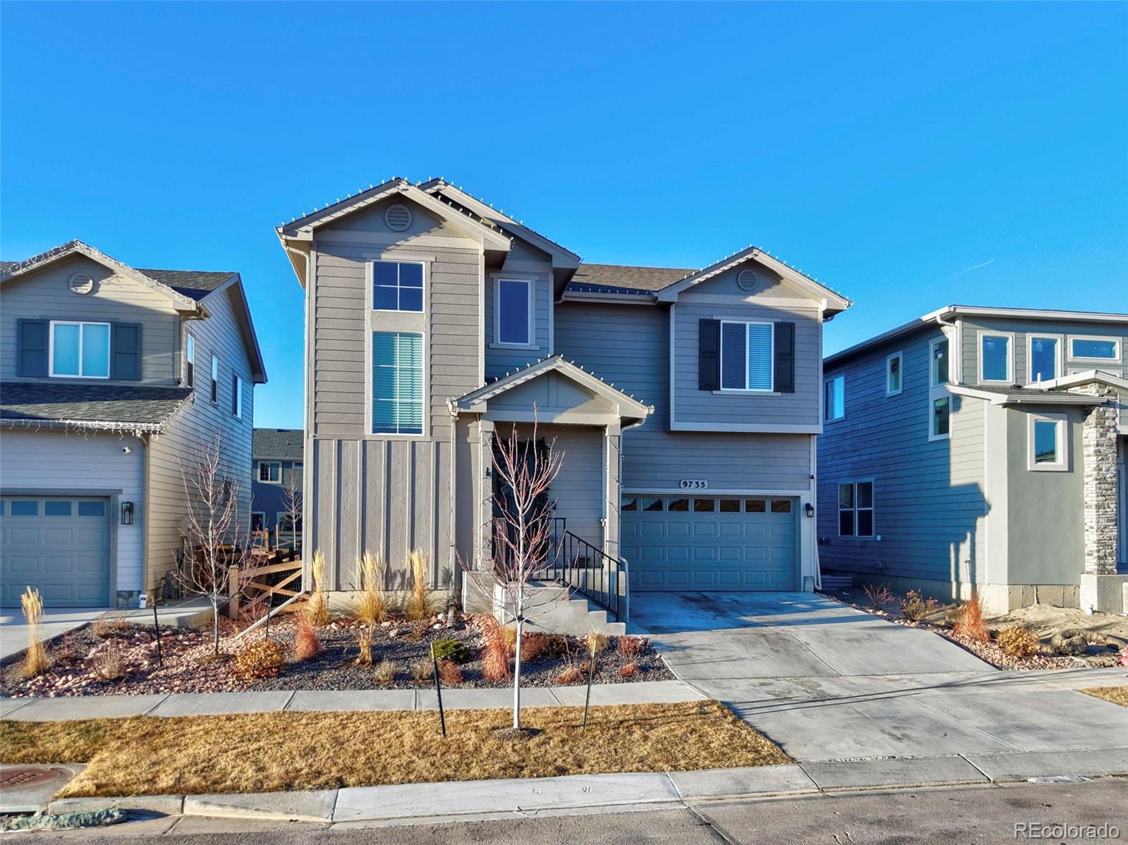 Builder warranty still in effect!! Gorgeous landscaping draws you in from the moment you walk up to the home. The covered front porch welcomes you through the front door to the entryway/foyer that opens into the front room that can be utilized as a formal dining room. Down the hall the home opens to the living, dining, and kitchen area, naturally lit through picturesque windows. The kitchen boasts a barstool height center island, stainless steel appliances, pantry, and ample counter and cabinet space. The dining area provides walk out access to the back patio and beautiful fenced back yard. A perfect opportunity to slide open the back door and let the outdoors in for entertaining or kids in and out. The stairs to the upper level are back to towards the front door and as you walk up you are greeted by a wonderful loft space, which could be utilized as a family/tv room, workout area, kids play area, or many other possibilities depending on needs. The upper level hosts all three bedrooms including the master suite which features a spacious walk in closet and ensuite bath with double vanity and free standing shower. Bedrooms two and three share a full bath. Completing the upper level a spacious walk in laundry room provides convenience. This home features a 3 car tandem garage, allowing you plenty of space for two cars plus all of your tools, and gardening equipment, or a third car! The Banning Lewis Ranch community has amenities galore, including neighborhood schools within walking distance, over 65 acres of parks/trails/open space for hiking/biking, tennis courts, pickleball courts, basketball court, rock climbing, zip-lines, access to pools, splash pad, water park, and dog park. The recreation center houses a fitness center and regularly hosts classes and events for all ages. In the summer months, catch a neighborhood concert, festival, food trucks, farmers market or enjoy other regular community events. This community has it all.