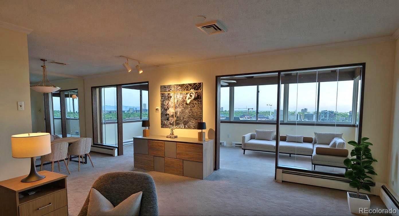 All-inclusive luxury in Cherry Creek—where your HOA works harder for you. At $1,069/month, the HOA at Polo Club covers nearly every utilities; heat, water, sewer, trash, recycling, cable, internet, plus concierge and security services, building insurance, rentable guest suites, and access to resort-style amenities including an indoor pool, sauna, hot tub, fitness center, clubhouse, business center, bocce courts, and two acres of beautifully landscaped gardens. You’ll also enjoy secured underground parking with EV charging stations, bike storage, and capital reserves that protect long-term building value. Located on the 16th floor, Unit 1604 offers breathtaking 270-degree views of downtown Denver, the Capitol, and the mountains from every window. The spacious 2-bedroom, 2-bath layout includes a custom walk-in Jacuzzi tub in the primary suite and private lanai access from the second bedroom—perfect for morning coffee or sunset unwinding. Additional conveniences include on-floor laundry, secure entry, heated garage, garage-level storage, and two deeded underground parking spaces. Guest rental units make hosting effortless. This is a rare opportunity to personalize a solid, well-laid-out home in one of Cherry Creek’s most iconic addresses. Whether you envision a full renovation or simple updates, the potential is yours to unlock. Moments from Cherry Creek Mall, Cherry Creek North, and the scenic bike path, this location offers vibrant city living with lock-and-leave ease. Bonus: a stunning atrium remodel is slated for completion in 2025, adding even more elegance to the building’s common spaces.