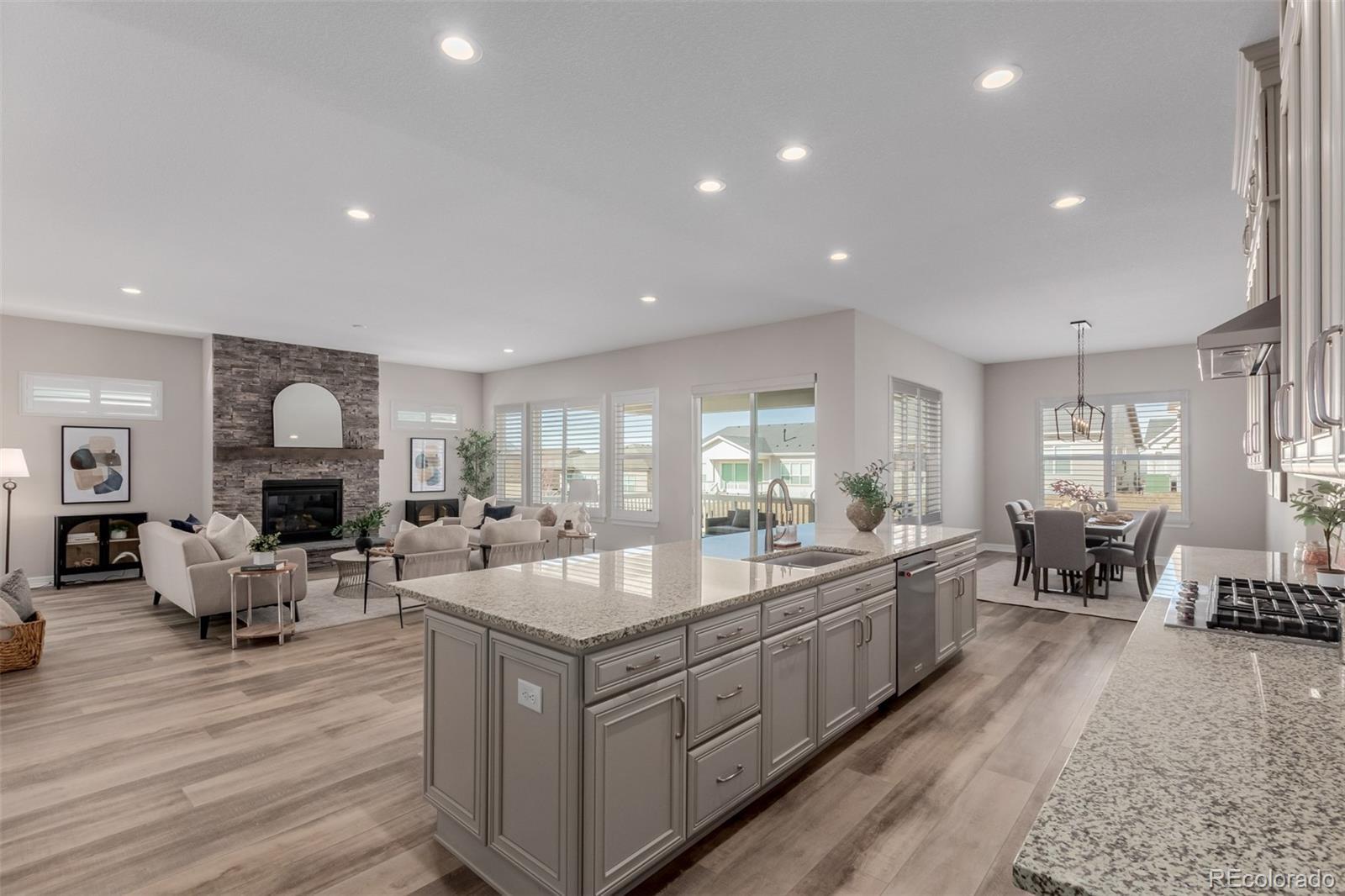 LIKE NEW, this Drake model, which is apart of the Regency 55+ community at Montaine, Boulder Collection, by Toll Bros., comes appointed with all the finest structural upgrades and design center features: the entire backside of the home has been bumped out 5' which extends the patio, dining space, primary bedroom and also increases the kitchen island length to a 13' countertop (the island now includes wrap around base cabinetry), the kitchen has been upgraded with a gourmet kitchen package featuring KitchenAide stainless steel appliances: five burner gas cooktop, convection oven, built in microwave and French door refrigerator, the addition of top-stacked glass cabinets above the 42" upper cabinetry really accentuates the 10' ceilings, a gas fireplace in the center of the family room has a hearth and stacked stone to the ceiling with mantle, the whole house has been custom fit with plantation shutter window treatments, the primary five-piece bath includes a spa like floating tub and fully tiled shower with seamless glass, the laundry has additional cabinets with a utility sink right off the three car garage entrance, and the entire main floor features 9" luxury vinyl plank flooring (excluding carpet in the bedrooms) and 8' doors. There is so much more and too much to list! This doesn't even include the premium lot that faces south and backs to open space which is close to the clubhouse featuring a pool, fitness center, tennis and pickle ball courts, tons of activities and the property is down the block from the entrance to vast open space walking trails! The home has been meticulously lived in for the past two and half years by the original owner. There are limited Boulder Collection series homes left in the Regency. 467 Scrubjay Trl, for it's improvements, for it's location, for it's condition, all for it's price is the one you want!