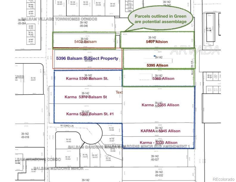Welcome to 5396 Balsam Street in the heart of Arvada! This 3-bedroom, 1-bath home sits on an expansive 25,265 sq. ft. lot offering a rare opportunity for both homeowners and investors. The property’s generous size and multi-unit zoning create outstanding development potential—whether you envision building additional residences, exploring income-producing opportunities, or designing your own dream retreat. The existing home provides comfortable living with three well-sized bedrooms, a full bath, and a functional floor plan. Surrounded by mature trees and open space, the oversized lot delivers a sense of privacy while still being close to everything Arvada has to offer. Enjoy easy access to Olde Town Arvada’s shops, dining, and light rail, as well as nearby parks, schools, and major commuter routes. This property combines current livability with incredible future upside—making it a truly unique find in today’s market. Additionally, the owners of several adjacent properties are willing to sell for the right price so a larger assemblage would be an option. The subject property is zoned R13 and the parcels to the North are zoned R24 so the possible density options are attractive. Consult with Arvada City planning to fully understand the potential. Don’t miss the chance to own a piece of Arvada with endless possibilities! Note that all offers need to be submitted to the Xome Auction Portal. https://www.xome.com