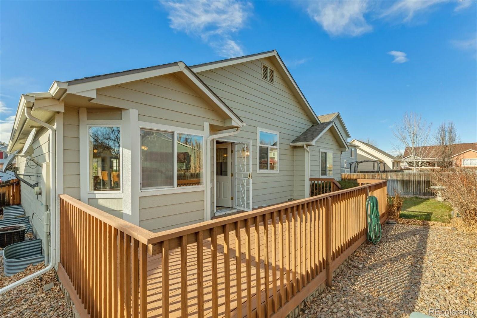 Welcome to 548 Badger Creek Drive, a beautifully maintained ranch-style home in Brighton, Colorado offering true one-floor living, abundant storage, and exceptional indoor–outdoor space. With strong curb appeal and thoughtful design throughout, this home is ideal for buyers seeking comfort, space, functionality, and future potential. Step inside to an open floor plan with vaulted ceilings and oak hardwood flooring throughout, creating a warm, spacious feel. The large, well-appointed kitchen features ample cabinetry, generous counter space, and an eat-at bar, perfect for casual dining and entertaining. The kitchen flows seamlessly into the main living area, ideal for gatherings and everyday living. At the front of the home, a third bedroom or private home office provides flexibility for remote work or guests. The primary suite is a true retreat, complete with a walk-in closet and a spacious primary bathroom featuring a makeup vanity and abundant storage. Additional main-level highlights include a large laundry and mudroom and direct access to the three-car garage, which offers workspace, storage, and a convenient door to the backyard. Outside, enjoy a huge back deck overlooking a professionally landscaped yard, perfect for relaxing, entertaining, or outdoor dining. The unfinished basement provides incredible expansion potential, already stubbed for a bathroom, with room for additional bedrooms, recreation space, or a home gym. An extra storage crawl space adds even more practical value. Located in a desirable Brighton neighborhood, this home combines single-level living, future growth opportunity, and everyday livability—making it a standout choice in the Brighton, CO real estate market. This home is move-in ready with room to grow—schedule your showing today!