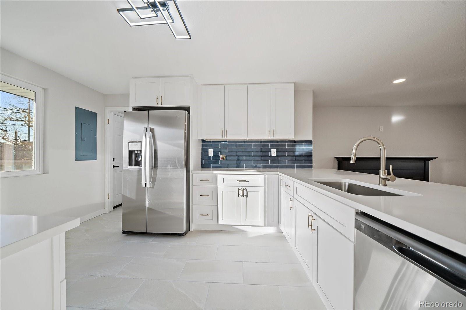 Welcome Home to City View Heights neighborhood! Your Dream Home awaits! Fully renovated from inside and out. Front yard has a vibrant xeriscape finish and 2 beautiful trees! New Crisp exterior full paint giving a white and black elegant look, New walkway and front porch. Full New refreshing Interior Paint throughout. Open Space in main levels living room/kitchen area. Kitchen Quartz countertops, new sleek island and all new appliances. New smooth white cabinets. Well designed kitchen back splash style and kitchen floor tile. All new lighting fixtures and outlets. New Double pane windows! Stunning Electric fireplace and new hardwood floor in living room! 3 Stylish, bathrooms fixtures and tile/design. New hardwood floors on main level bedrooms.. All new ceiling lights throughout giving a home theatre feel! Main level bedrooms each contain ceiling fans and their remote controls. Basement has new carpet in family room and bedrooms. In-Unit laundry inside utility room! (No more laundromats)! Large full fenced backyard for little ones and family pets to play all day! Concrete parking spot and a connected 1 car garage/driveway. Easy access to Highway I-25 and other main freeways and nearby RTD's transportation. Across the way is Rotella Park so many yummy fast food and lovely restaurants, shopping retailers, grocery stores and of course night life! Gorgeous Balistreri Vineyard for date nights and with family/ friends and so much more to enjoy! Invest in this home today to create lifelong, wholesome, happy, loving memories! To find out more information please call or text and email:)