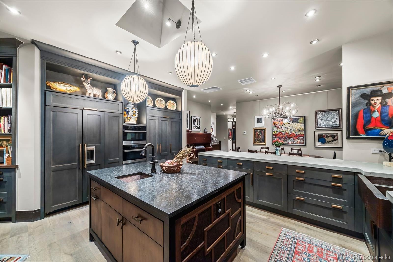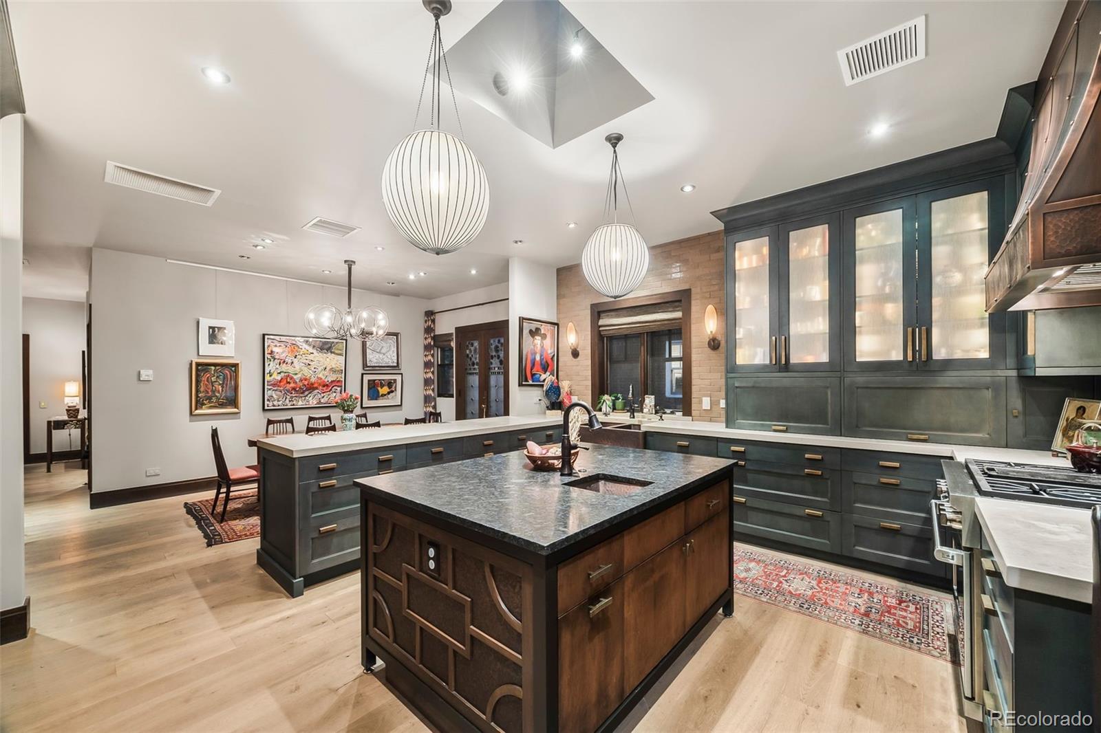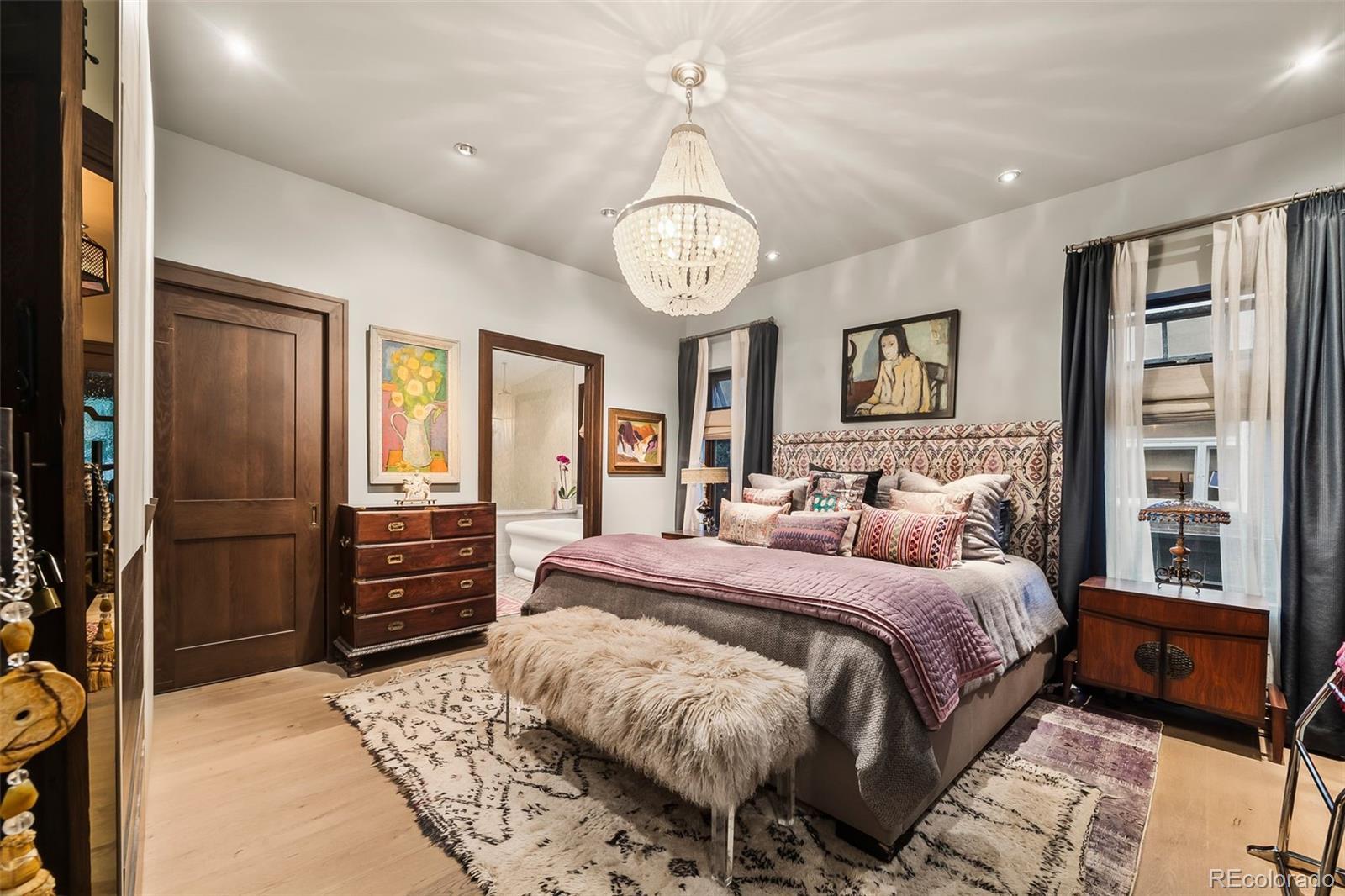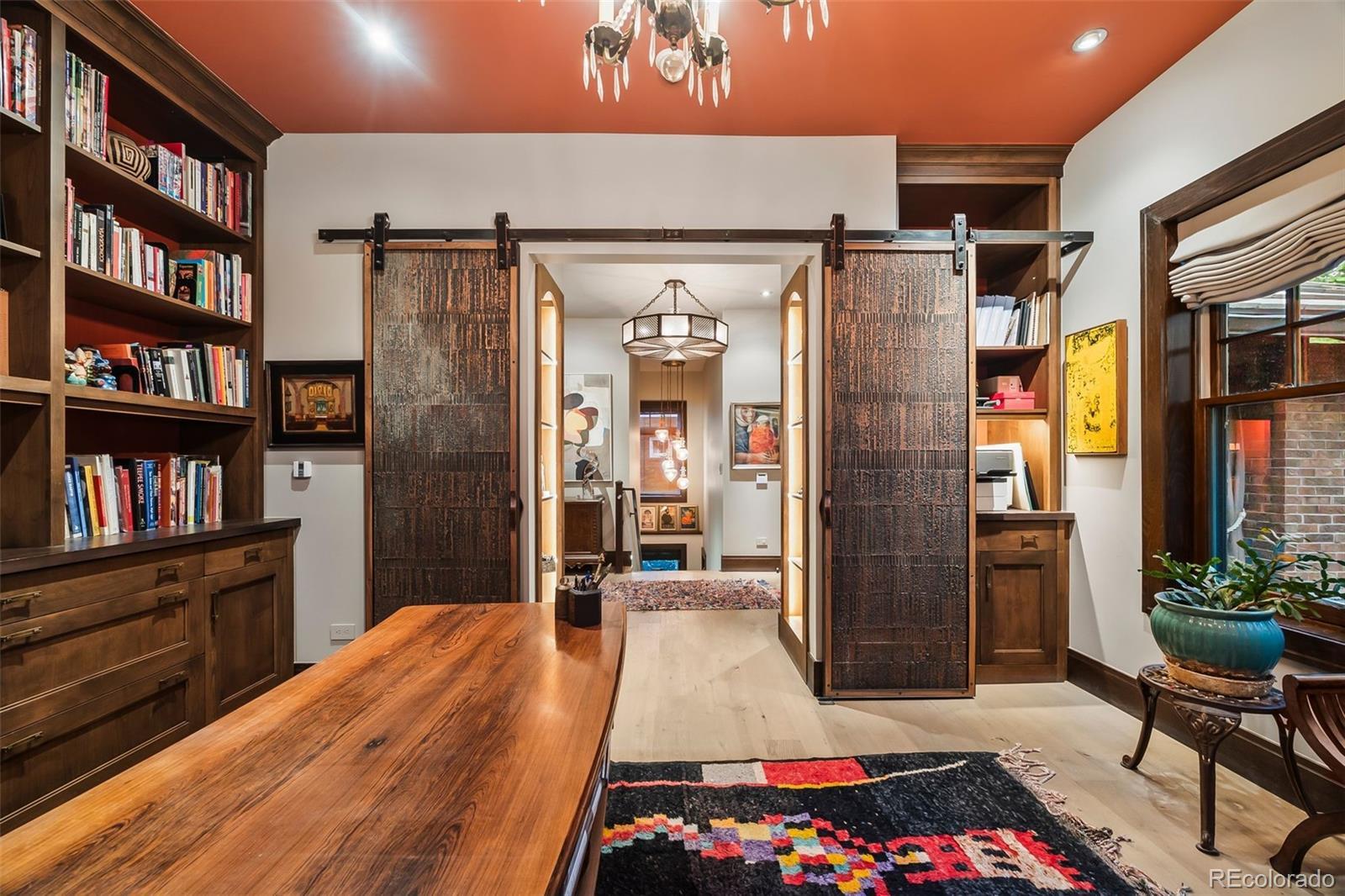 Welcome to 1233 S Williams - a masterpiece of local design talent and exquisite finishes, steps from Denver's Wash Park. Fully renovated in 2015 and honored twice in 5280 Home Magazine for its exceptional design. A stately front garden welcomes guests to the front porch with nods to the craftsman details of the property. Inside, the vision of Atelier Design comes to life, somehow striking a perfect balance of cozy and moody, with a vibrant ambiance. Every corner reveals a thoughtful detail, from stained-glass doors in the dining room by local artist Anne Wolff, to Evelyn Ackerman wood panels repurposed into doors for the main-level suite. The primary bedroom includes dual walk-in closets, and a bathroom oasis. At the front of the home a bedroom/office with a fireplace, and built-ins offers serene front garden views. A distinguished living room, complete with a fireplace and vaulted statement ceiling, leads to the outdoor living area. The heart of the home, the kitchen, is a showstopper. A William Ohs design, it features New Mexican sandstone countertops, top of the line appliances, and custom cabinetry. Also on the main level, a laundry room offers additional storage. Head down the stairs and peek inside the hidden storage built in behind the decorative shelves (a well kept secret!) which leads to the lower-level den. Downstairs includes two additional bedrooms, bathroom, a versatile workshop or non-conforming bedroom, a climate-controlled wine closet, and more storage. Outside the backyard adds another living area to the home. Designed to maximize space the deck flows down to the patio and firepit. Around the corner steel garden beds and a dog run complete the space. This meticulously designed property has every detail thought out, from the Arrigoni wood floors with radiant in-floor heat and Lutron lighting, to every light fixture and piece of cabinet hardware - no detail was spared. This is a one-of-a-kind property showcasing design, comfort, and functionality.