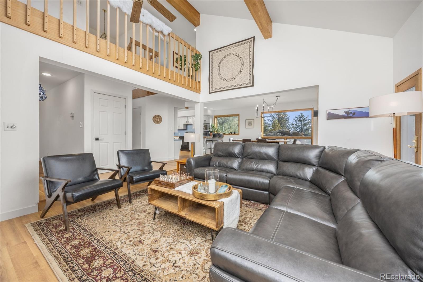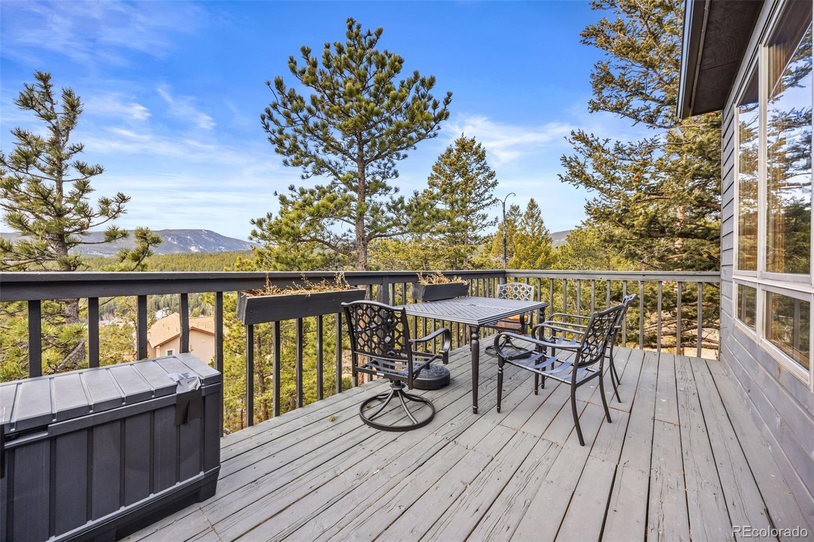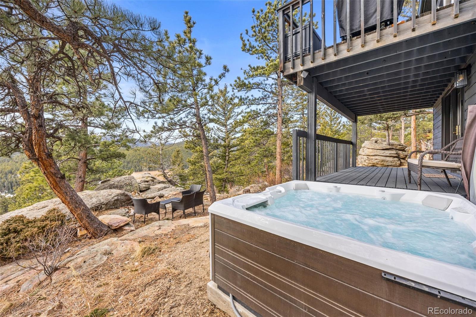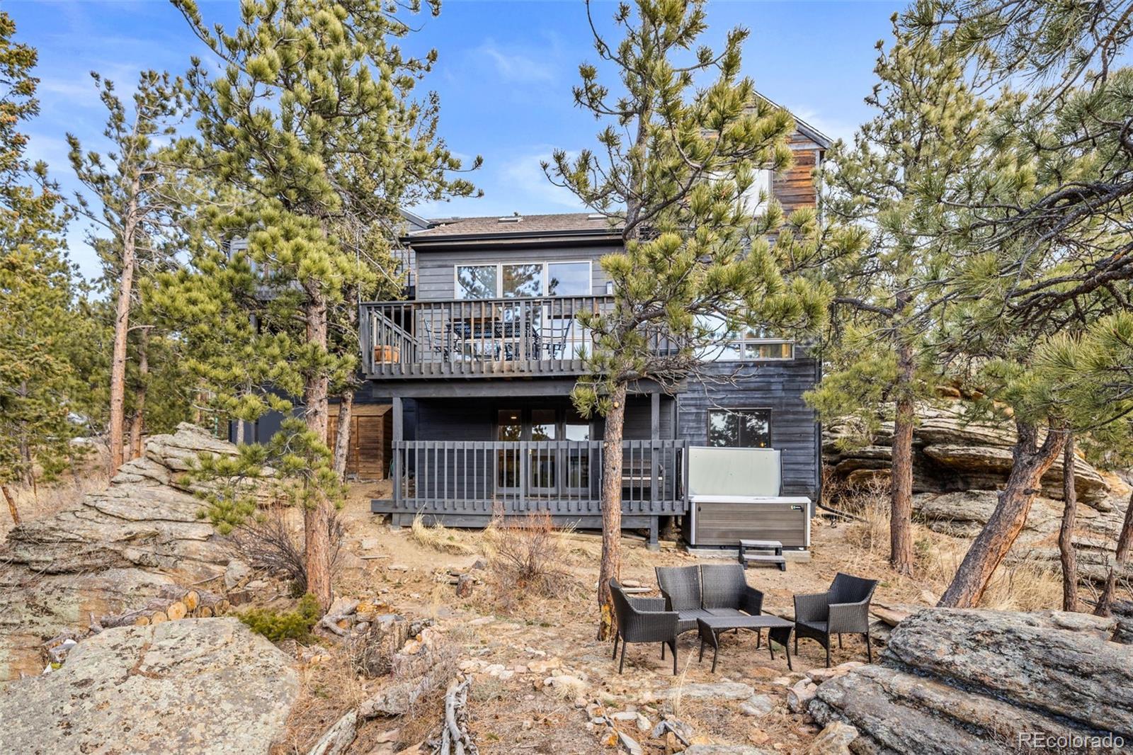 Spectacular location in Nederland's premier Sunnyside subdivision, overlooking the charming Town of Nederland with sweeping views of snow-capped peaks and surrounding mountains. This well-designed home features an open floor plan with a large air-lock foyer and sun-drenched spaces throughout, all oriented to capture incredible light and views. Nestled among beautiful rock outcroppings, this property offers a rare combination of privacy and convenience just a short walk to downtown Nederland, the elementary school, trails, restaurants, breweries, shops, grocery stores and the local movie theater. Enjoy quick access to outdoor recreation year-round, including nearby Eldora Ski Resort. Recent improvements include updated carpet and brand-new LVP flooring, along with updates to 3 of the 4 bathrooms. The primary suite is a true retreat with a private balcony showcasing Divide Mountain views, a versatile bonus room ideal for an office, yoga space, or nursery, a large walk-in closet and 5-piece bath. The walkout lower level has a separate entrance and has been thoughtfully converted into a successful short-term rental unit, offering excellent income potential ($22K in 2025) or flexible multi-generational living. Additional upgrades include a whole-house natural gas generator that automatically provides reliable backup power during outages. Set well back from the road, this private mountain home features 3 separate decks for enjoying the outdoors, ample storage throughout and a layout that offers both comfort, flexibility & mountain views. A rare opportunity to own a well-built home with strong bones, modern updates, unbeatable views and exceptional location in one of Nederland's most desirable neighborhoods.