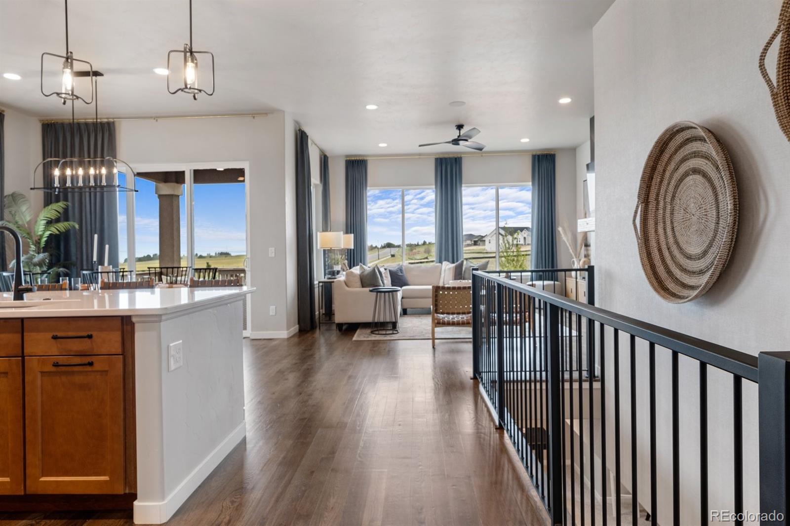 Welcome to this stunning Vantage Homes model located in the desirable Timber Ridge community! Situated on over a quarter acre lot, this beautifully designed home offers unobstructed views of Pikes Peak and is loaded with premium builder upgrades throughout. Enjoy the ease and convenience of true main-level living, with an open concept layout that blends functionality, comfort, and style. From the moment you enter, you’ll notice the thoughtful details throughout including elegant flooring, upgraded lighting, and expansive windows that fill the home with natural light and showcase the breathtaking mountain views. The gourmet kitchen is a chef’s dream, featuring top of the line appliances, upgraded cabinetry, and quartz countertops, perfect for both entertaining and everyday living. The spacious main level primary suite is a private retreat with a spa-like bathroom and generous walk-in closet. Additional bedrooms and living spaces are equally well appointed, with high end finishes and smart design throughout. Outside, the oversized lot offers space for outdoor living, gardening, or future expansion all in a peaceful setting that backs to open space. Don’t miss this rare opportunity to own a showcase quality home in Timber Ridge with luxury upgrades, main-level living, and unbeatable views of Pikes Peak!