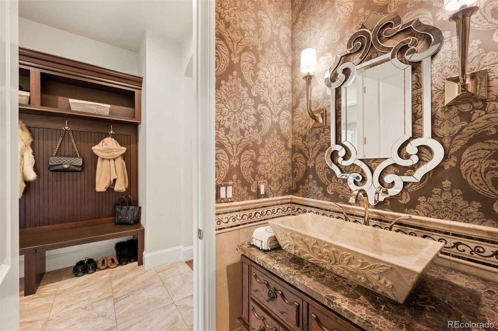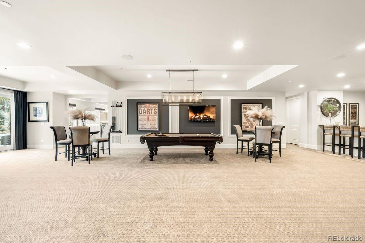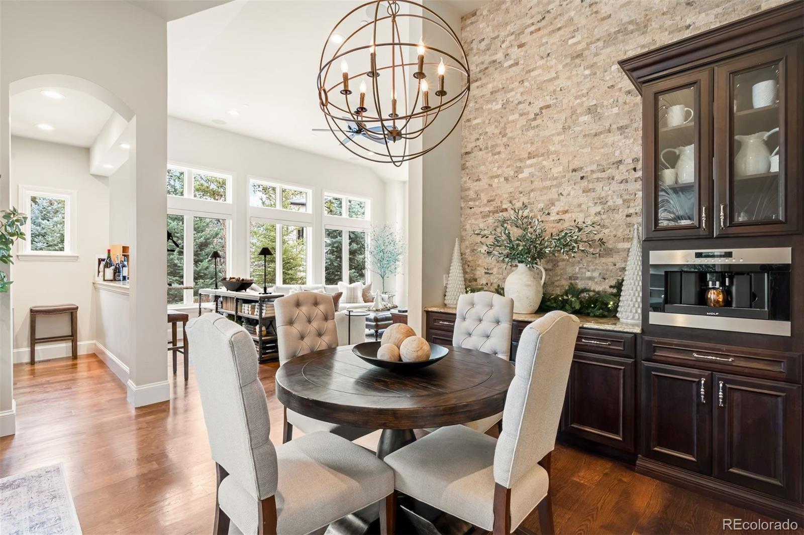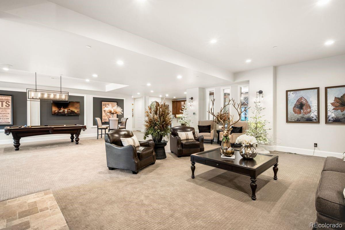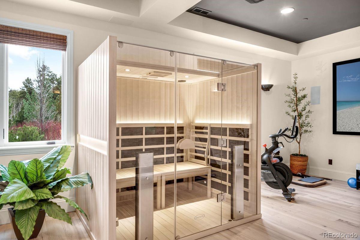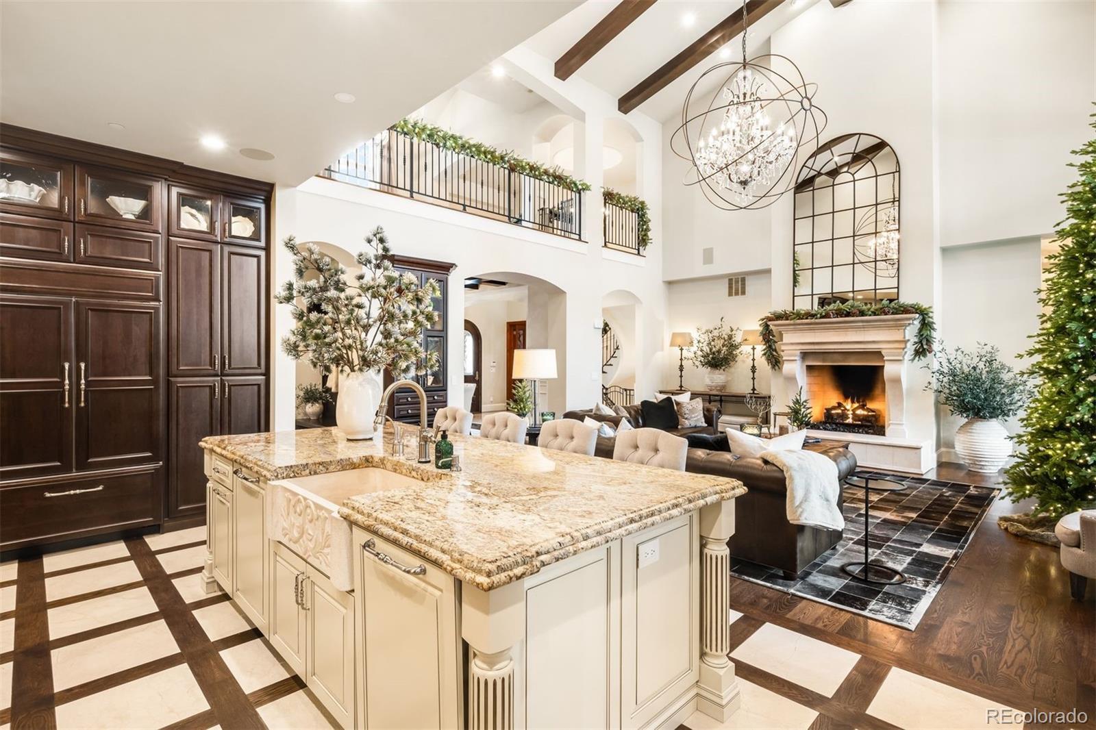 Envision arriving home to this opulent estate in Pinon Soleil, gracefully set among majestic 100-year-old pines. Designed by a renowned architect, this bespoke residence sits on a pristine acre, offering sweeping views, exceptional privacy, and a setting that harmonizes beautifully with its natural surroundings. Soaring ceilings, rich wood accents, and meticulously curated architectural details define an atmosphere of timeless luxury throughout. Expansive windows frame forested vistas and natural light throughout, creating a serene retreat that feels both grand and welcoming year-round. A distinguished main-level study welcomes you with quiet authority, featuring custom wood paneling, intricate flooring, dramatic ceiling heights, and its own fireplace. The great room unfolds in grand fashion, anchored by a striking fireplace and seamlessly connecting to the chef-inspired kitchen and outdoor living spaces. The kitchen blends culinary excellence with architectural beauty, showcasing Wolf, Sub-Zero, Thermador, and Bosch appliances, along with refined wood, marble, and granite finishes. A spacious butler’s pantry enhances functionality, while a 500-bottle wine cellar with a dedicated tasting room offers a gallery-like experience for collectors. The main-level primary suite is a private sanctuary, highlighted by a fireplace, vaulted beamed ceilings, and a spa-inspired bath with heated floors and a sculptural soaking tub. All five bedrooms feature private en-suites, while six fireplaces and lofty ceilings throughout add warmth and architectural presence. Outdoor living is elevated by a covered patio with a full kitchen and 85-inch Seura outdoor television. Savant smart-home technology, a heated-tile porte-cochere, circular drive, over $500,000 in custom landscaping, and a finished four-car garage complete this exceptional offering. Ideally located in Castle Rock with immediate access to I-25, shopping, and premier amenities, this residence defines Colorado luxury living.