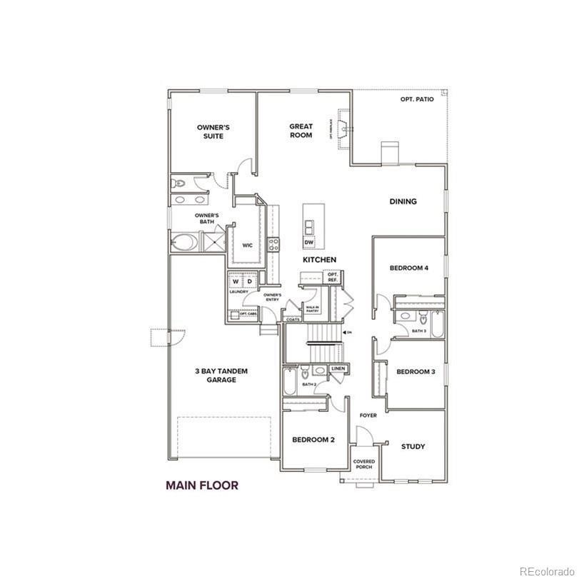 Home backing to open space! This one-of-a-kind ranch floor plan offers an expansive layout, perfect for entertaining. As you enter the foyer from a covered porch, you'll find three generous secondary bedrooms—boasting two full bathrooms—plus a private study. Featuring a chef kitchen and great room fireplace, and an extended cover patio. Beautiful design selections have been made to include upgraded white cabinets and quartz in the kitchen. The secluded primary suite showcases a roomy walk-in closet and a private bath with double sinks, tub and a walk-in shower. Additional highlights include a valet entry off the garage and a convenient laundry room. A standard unfinished basement completes the home. Photos are not of this exact property. They are for representational purposes only. Please contact builder for specifics on this property. Prices and incentives are contingent upon buyer closing a loan with builders affiliated lender.