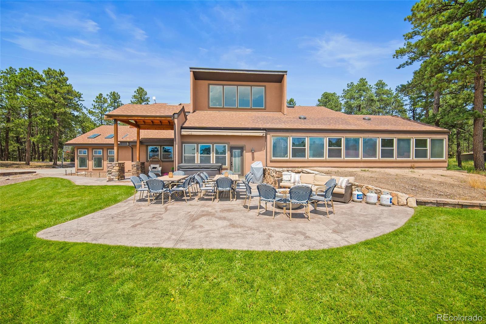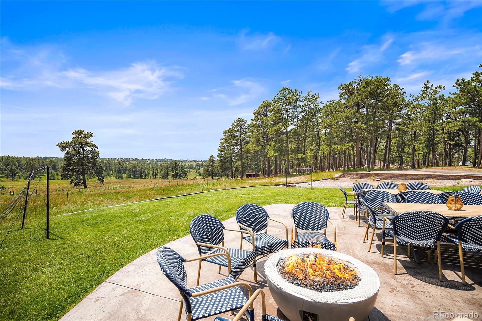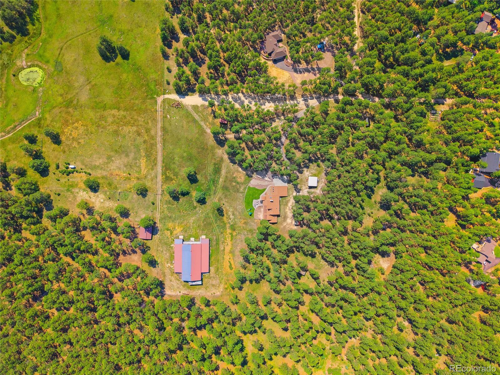 Tucked away on nearly 10 pristine acres of pine covered serenity, this one of a kind 6003 sq ft estate offers ultimate privacy, luxury, and equestrian living- just 20 minutes from shopping, dining, and urban conveniences. Designed for both relaxation and entertainment the home features a gourmet kitchen, with top-of-the-line appliances, expansive granite counters, and custom cabinetry. The open concept living areas are bathed in natural light and boast breathtaking views of Pikes Peak, visible from multiple rooms and outdoor spaces. Indulge in year-round wellness with your own hot tub and indoor pool, nestled in a vaulted atrium-style enclosure that brings the outdoors in. Whether you're hosting guests or enjoying a quiet morning swim, the ambiance is unmatched. Outside, the property is zoned for horses. The "barn" (11,976 SF) has a 78' by 58' indoor riding arena, 8 stables with heat, 3-bedroom caretaker residence, tack rooms, office space, feed room, and bathroom. There is also nearly 2,000 SF of covered outdoor storage. The barn has not been used by the current owner but is ready to create new value for a buyer. The grounds are fully usable and ideal for those seeking the tranquility of country life without sacrificing proximity to excellent D-38 schools and city amenities. This is more than a home-it's a retreat, a lifestyle, and a rare opportunity to own one of the area's most private and versatile properties. Please do not disturb guests by driving on property as this is an active VRBO.