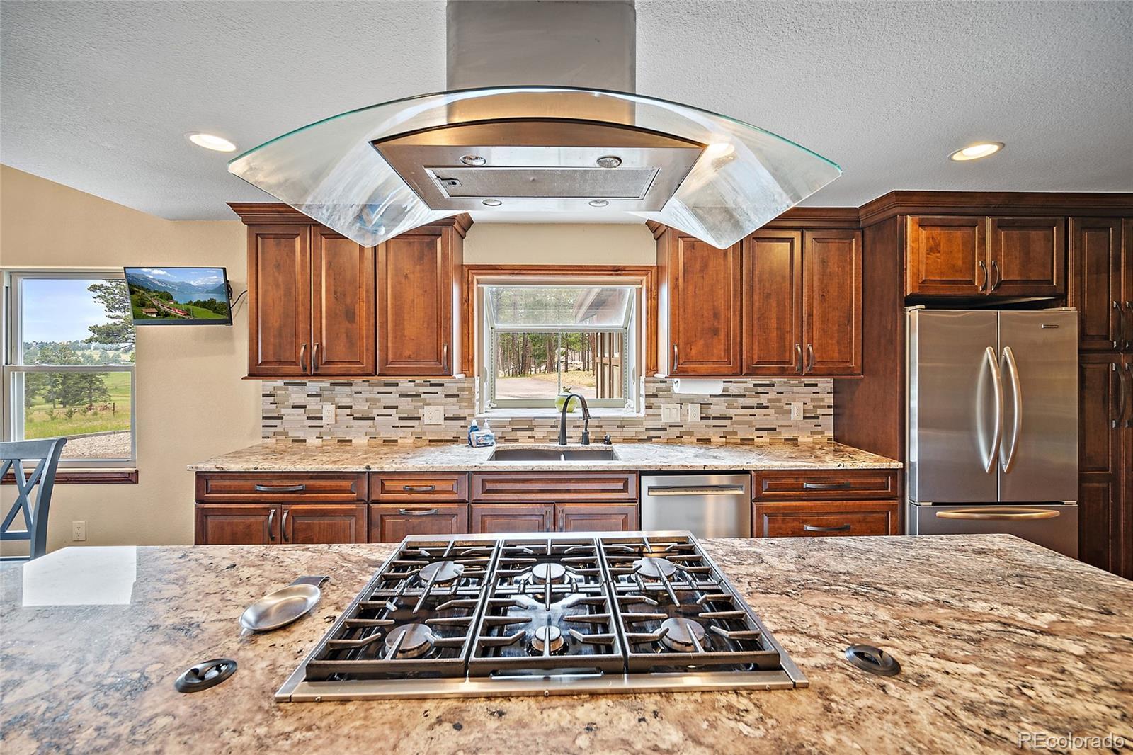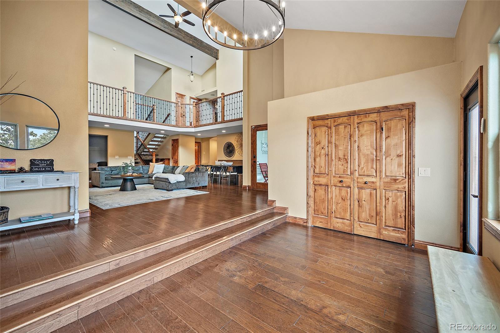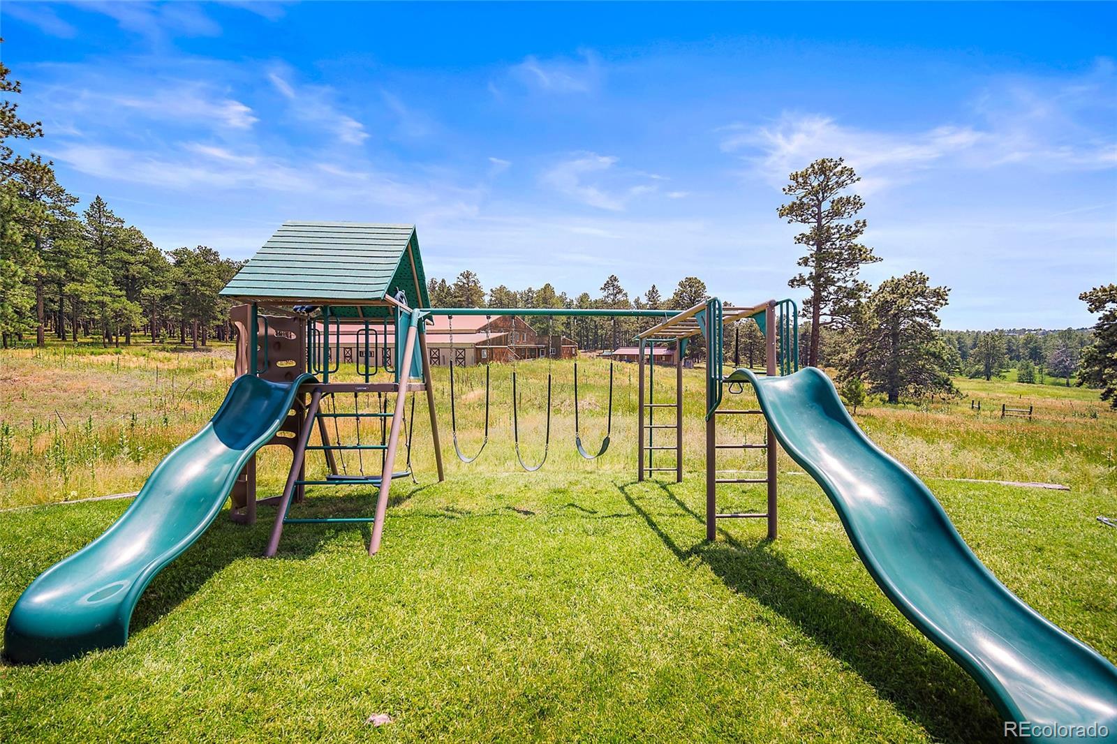 Tucked away on nearly 10 pristine acres of pine covered serenity, this one of a kind 6003 sq ft estate offers ultimate privacy, luxury, and equestrian living- just 20 minutes from shopping, dining, and urban conveniences. Designed for both relaxation and entertainment the home features a gourmet kitchen, with top-of-the-line appliances, expansive granite counters, and custom cabinetry. The open concept living areas are bathed in natural light and boast breathtaking views of Pikes Peak, visible from multiple rooms and outdoor spaces. Indulge in year-round wellness with your own hot tub and indoor pool, nestled in a vaulted atrium-style enclosure that brings the outdoors in. Whether you're hosting guests or enjoying a quiet morning swim, the ambiance is unmatched. Outside, the property is zoned for horses. The "barn" (11,976 SF) has a 78' by 58' indoor riding arena, 8 stables with heat, 3-bedroom caretaker residence, tack rooms, office space, feed room, and bathroom. There is also nearly 2,000 SF of covered outdoor storage. The barn has not been used by the current owner but is ready to create new value for a buyer. The grounds are fully usable and ideal for those seeking the tranquility of country life without sacrificing proximity to excellent D-38 schools and city amenities. This is more than a home-it's a retreat, a lifestyle, and a rare opportunity to own one of the area's most private and versatile properties. Please do not disturb guests by driving on property as this is an active VRBO.