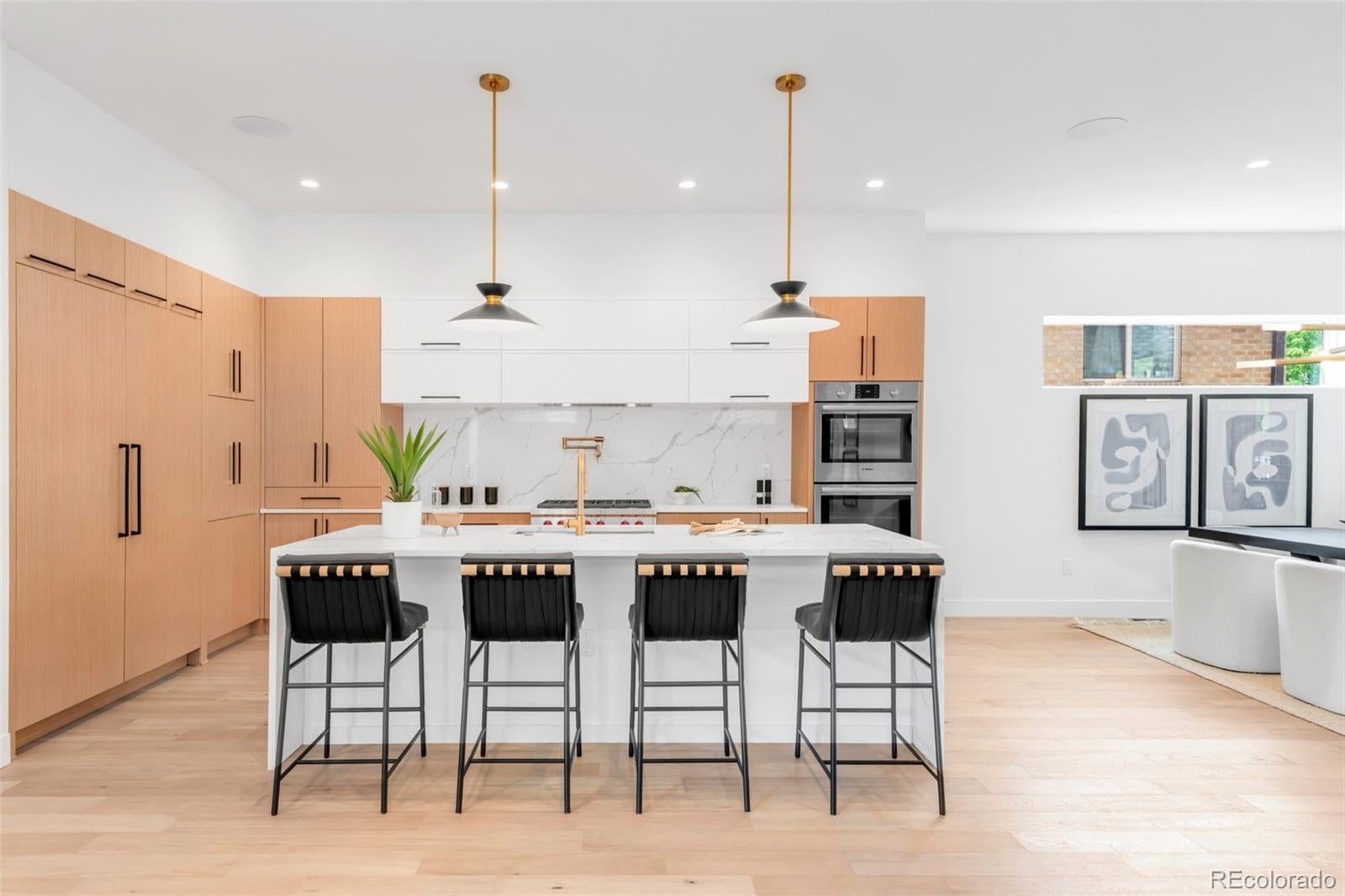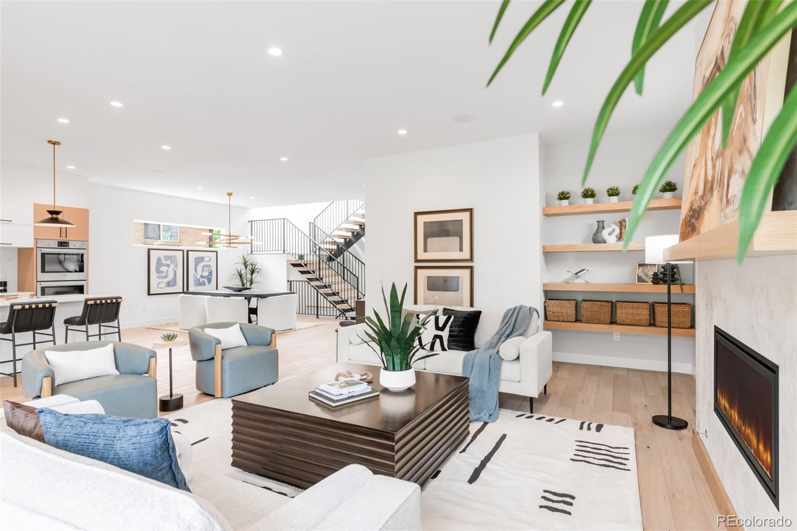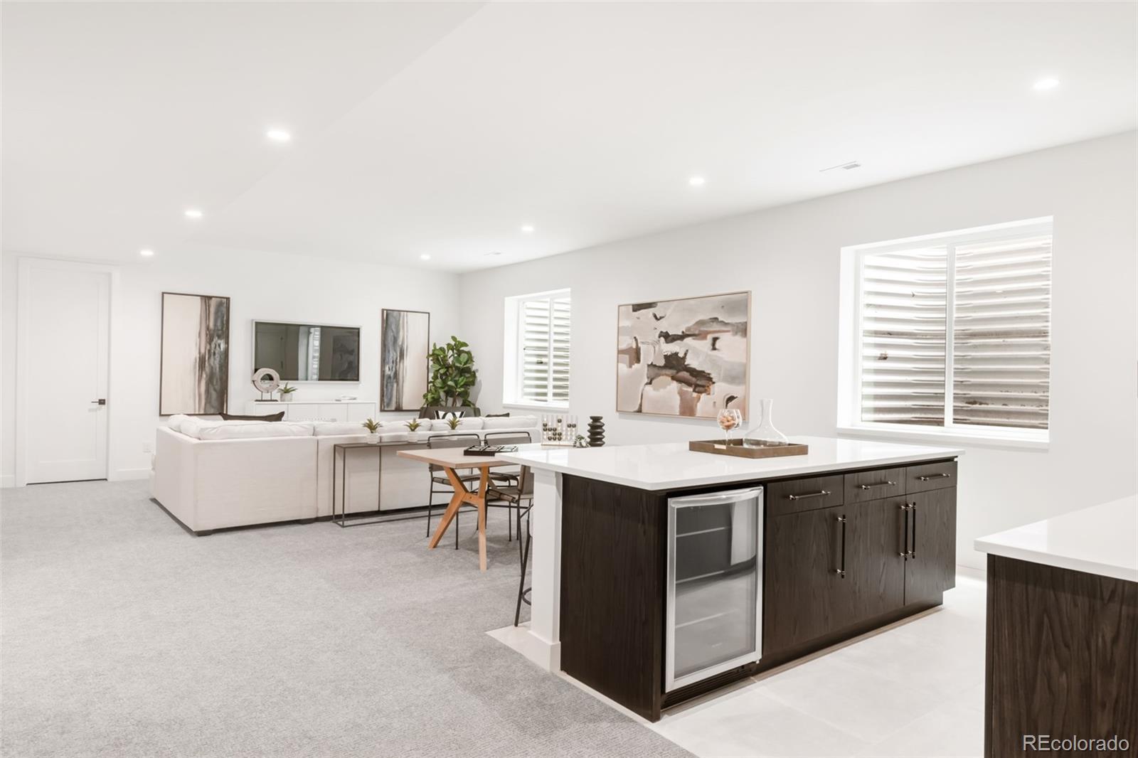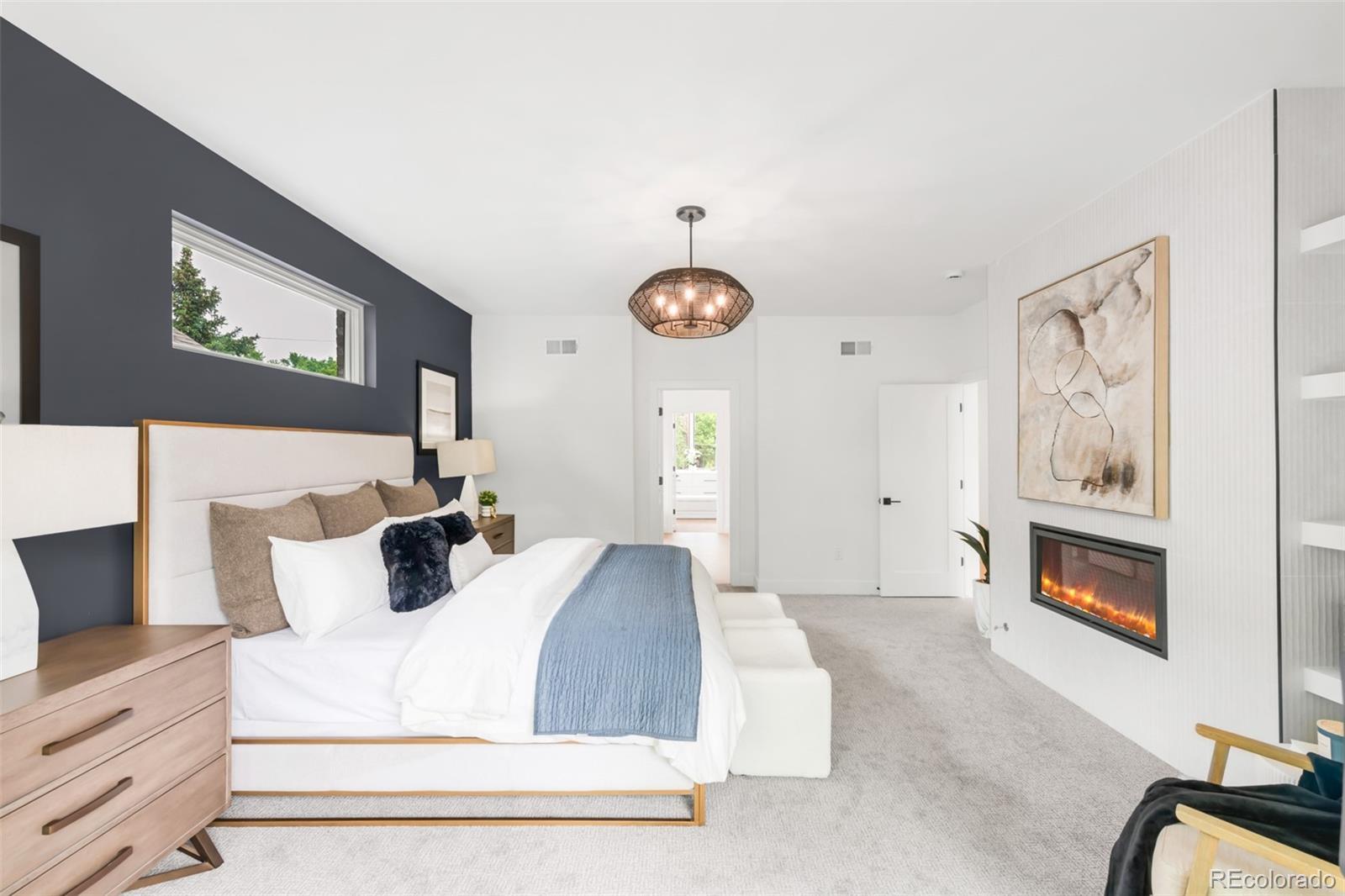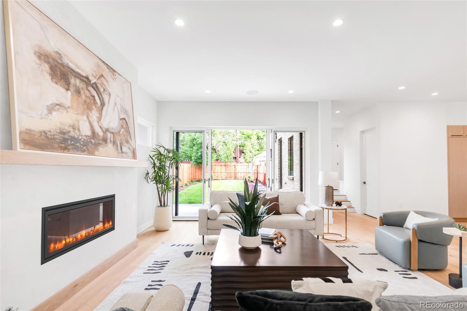 Poised in the heart of East Wash Park, this newly constructed residence is a masterclass in refined design and modern elegance. Bathed in natural light, the open-concept layout showcases rich hardwood flooring and designer finishes throughout. A spacious living area with a striking plaster fireplace flows seamlessly into a stunning chef’s kitchen featuring a Wolf range, hidden paneled refrigeration and a vast center island. An adjacent dining space, accented by a contemporary chandelier, sets the tone for elevated gatherings. Sliding glass doors open to reveal a private, fenced backyard with a patio ideal for entertaining. A serene home office and a generous three-car attached garage add ease and functionality. Upstairs, a luxurious primary suite impresses with a spa-like bath, a modern fireplace, a custom walk-in closet and a large outdoor balcony. The finished basement offers a rec room with a sleek wet bar, exercise room and soaring ceilings — making this home a rare Wash Park gem.