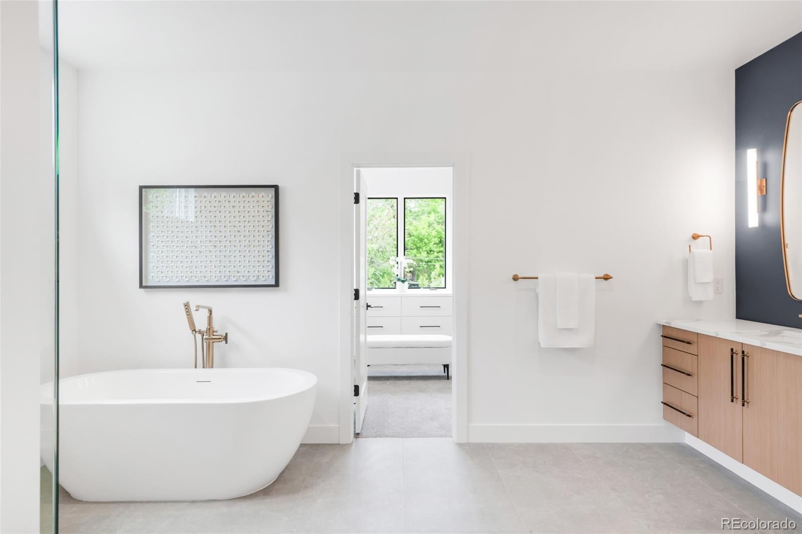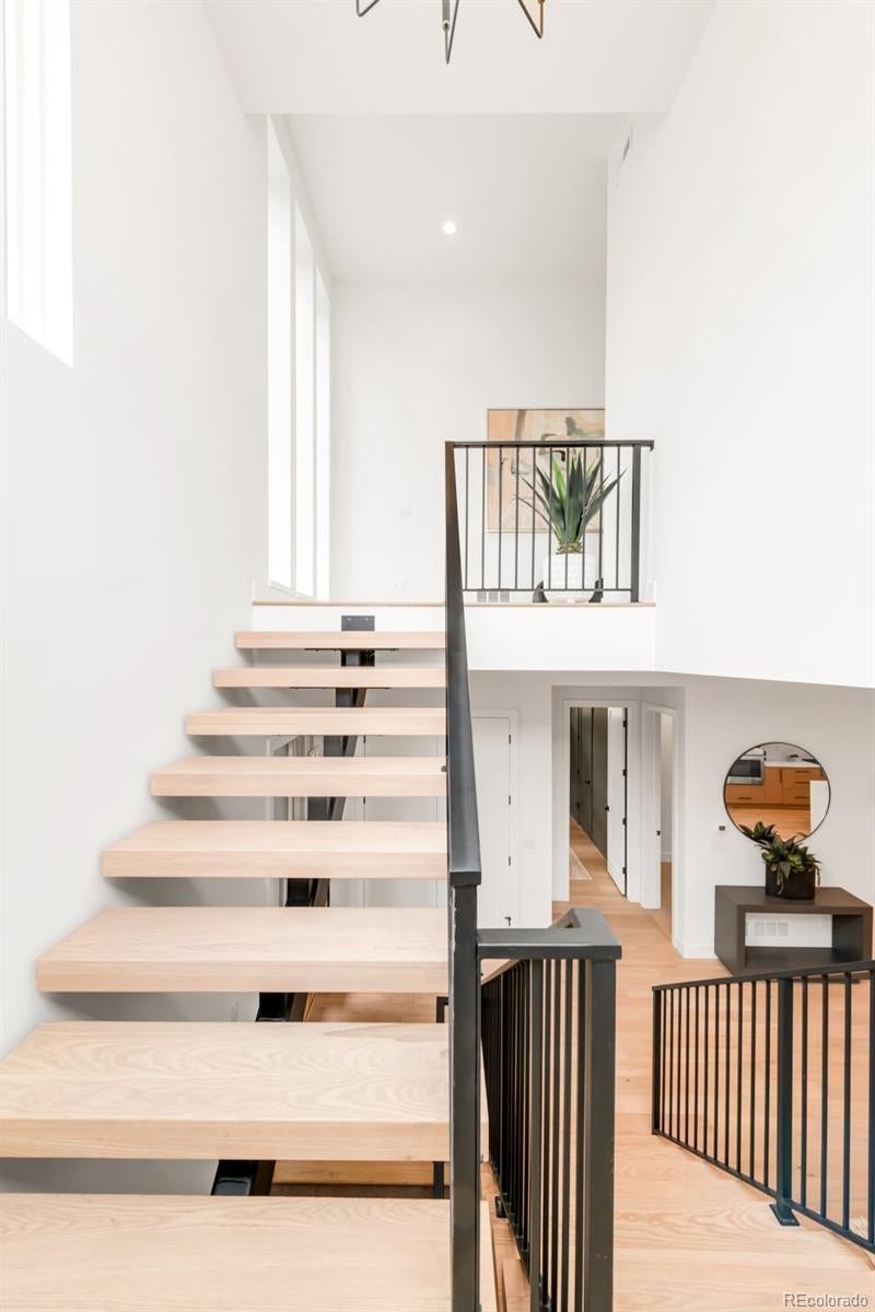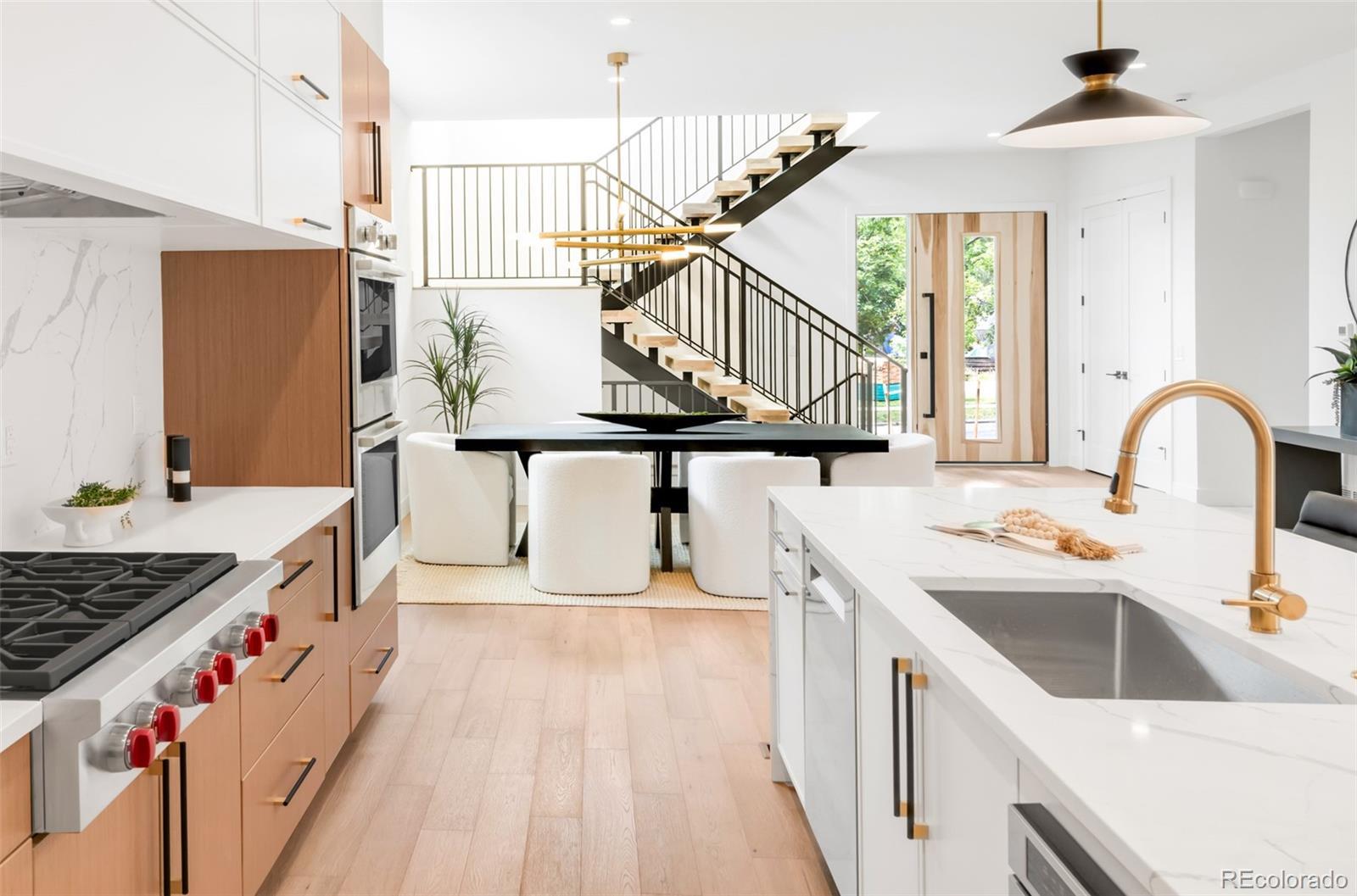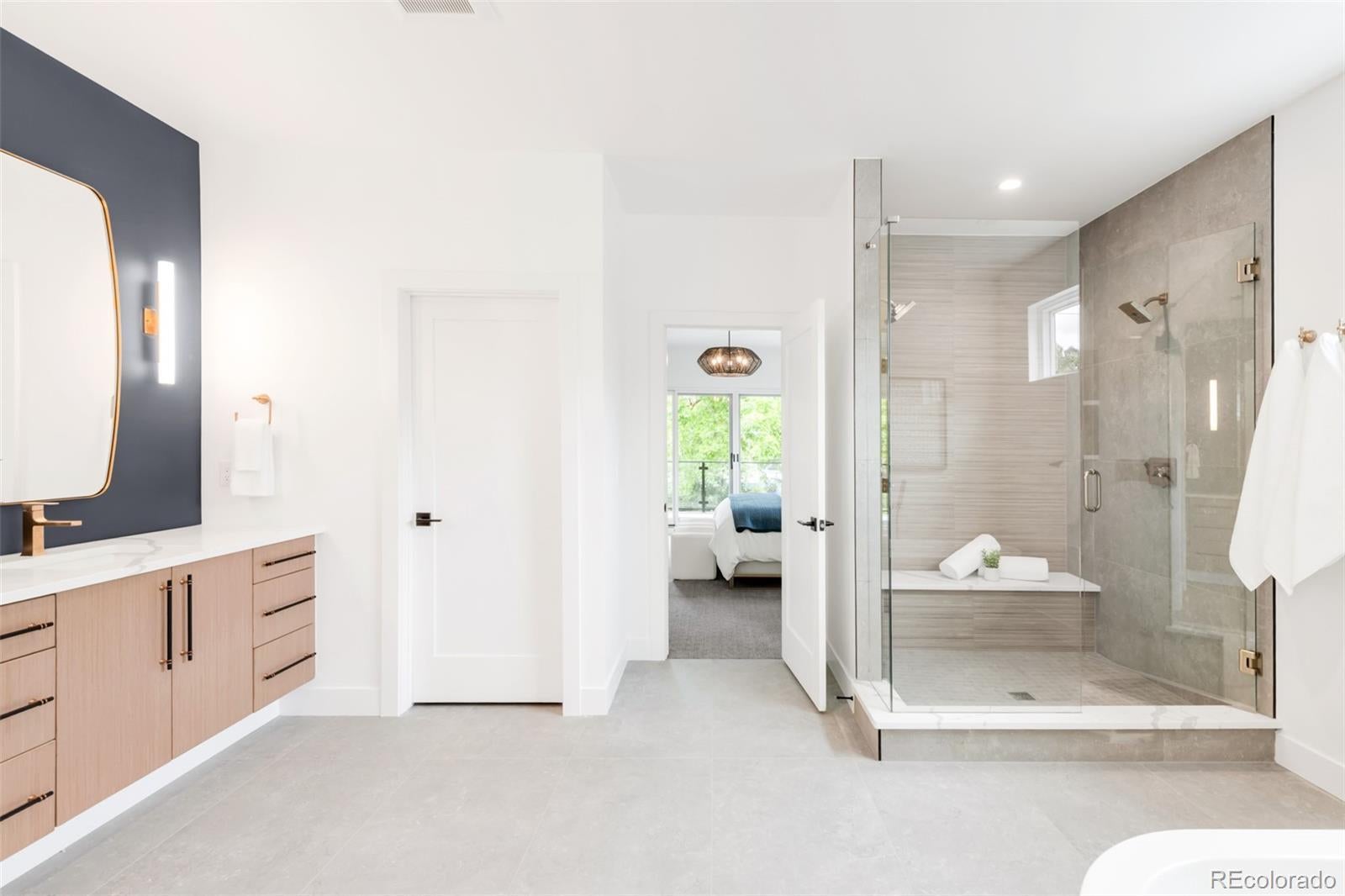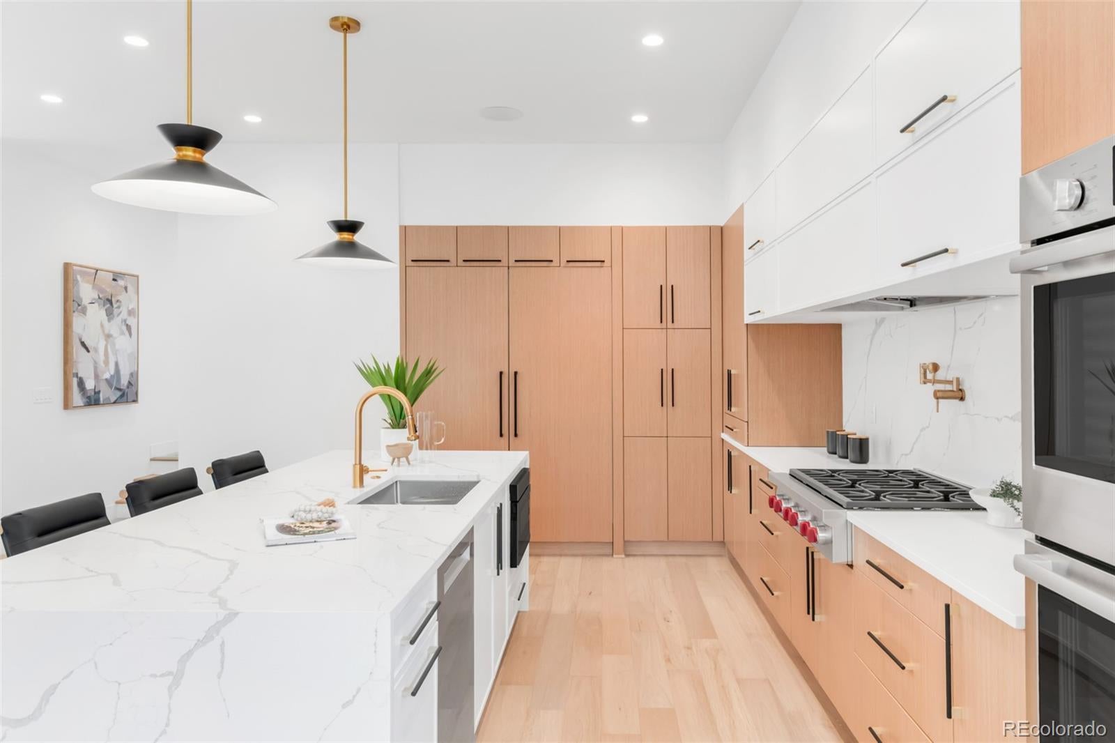 Poised in the heart of East Wash Park, this newly constructed residence is a masterclass in refined design and modern elegance. Bathed in natural light, the open-concept layout showcases rich hardwood flooring and designer finishes throughout. A spacious living area with a striking plaster fireplace flows seamlessly into a stunning chef’s kitchen featuring a Wolf range, hidden paneled refrigeration and a vast center island. An adjacent dining space, accented by a contemporary chandelier, sets the tone for elevated gatherings. Sliding glass doors open to reveal a private, fenced backyard with a patio ideal for entertaining. A serene home office and a generous three-car attached garage add ease and functionality. Upstairs, a luxurious primary suite impresses with a spa-like bath, a modern fireplace, a custom walk-in closet and a large outdoor balcony. The finished basement offers a rec room with a sleek wet bar, exercise room and soaring ceilings — making this home a rare Wash Park gem.