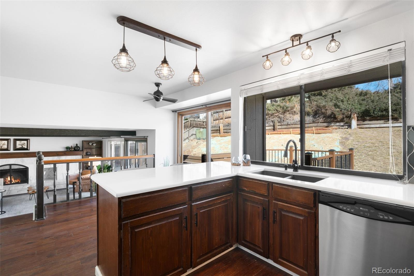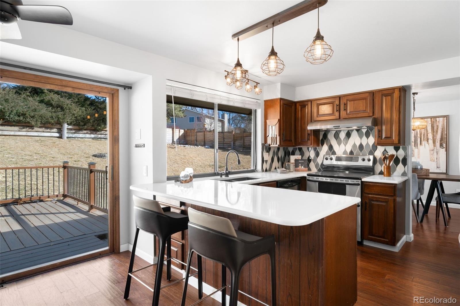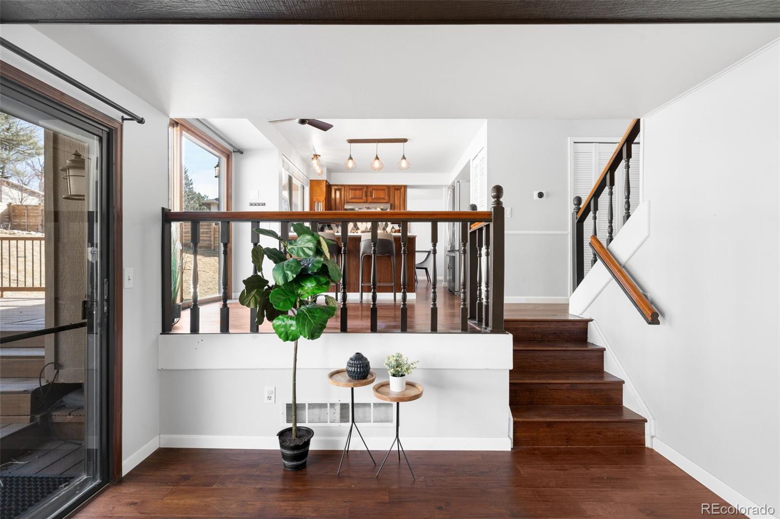Beautifully updated tri-level in the heart of Hyland Greens! This light-filled home features gleaming wood floors, walls of windows, and an open, inviting layout. The renovated kitchen offers quartz countertops, stainless steel appliances, and a cozy eat-in dining area. The lower-level family room showcases a stunning full-wall fireplace and opens to a spacious Trex deck and backyard—perfect for indoor/outdoor living and entertaining. With four bedrooms and three baths, including a flexible lower-level bedroom with adjacent ¾ bath, there’s space for guests, a home office, or multi-generational living. Two bathrooms have been thoughtfully remodeled, and the finished basement provides additional living space for a gym, playroom, or media room. Major updates include electical panel (2021), 5-year roof cert (2026), sewer line repair (2026), furnace and A/C (2024) and water heater (2025). Ideally located near pools, trails, the new Trader Joe’s, Westminster Rec Center, and with easy access to Denver, Boulder, and DIA. Giving you peace of mind for years to come. This is the kind of home where memories are made warm, welcoming, and set in one of Westminster’s most desirable communities.