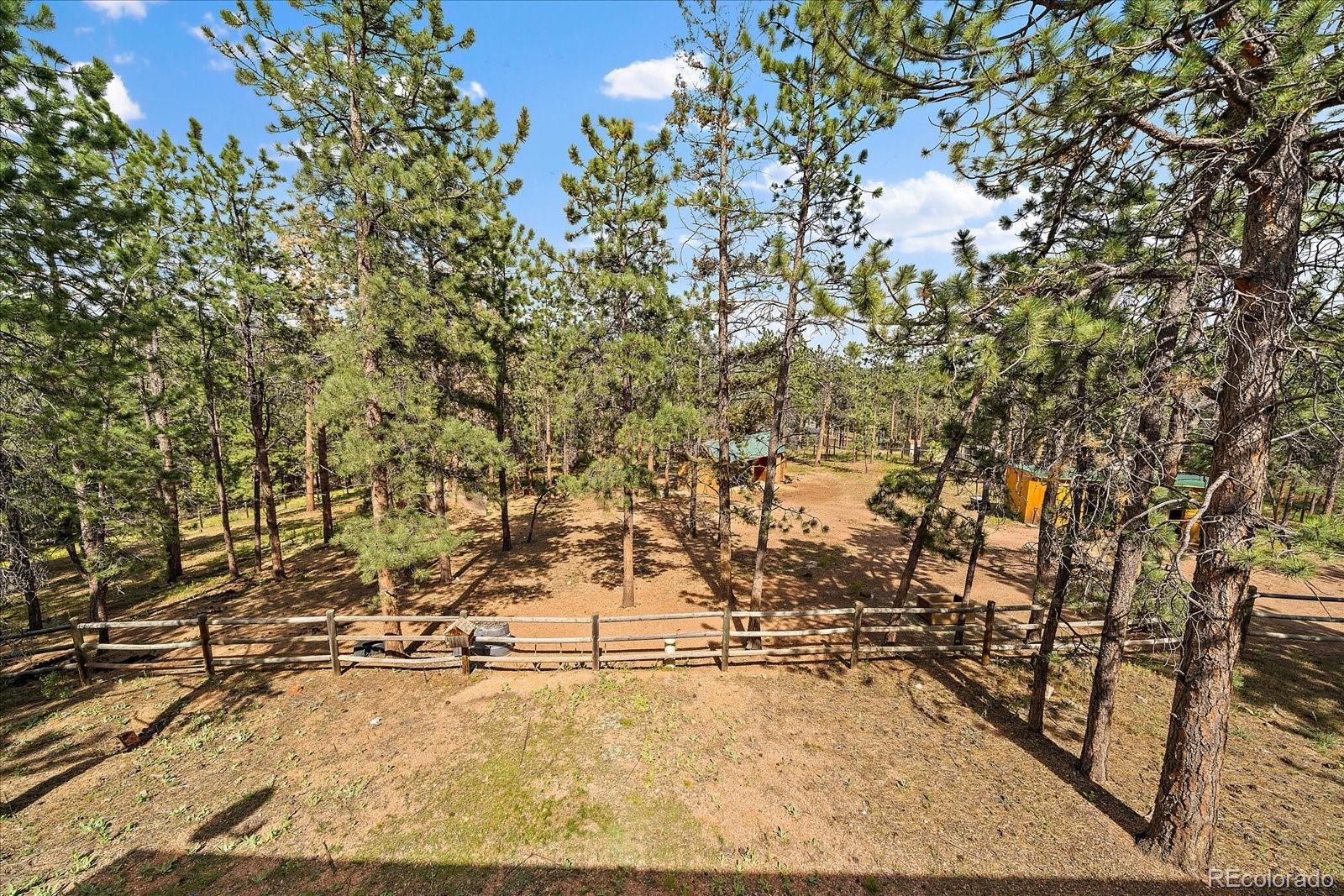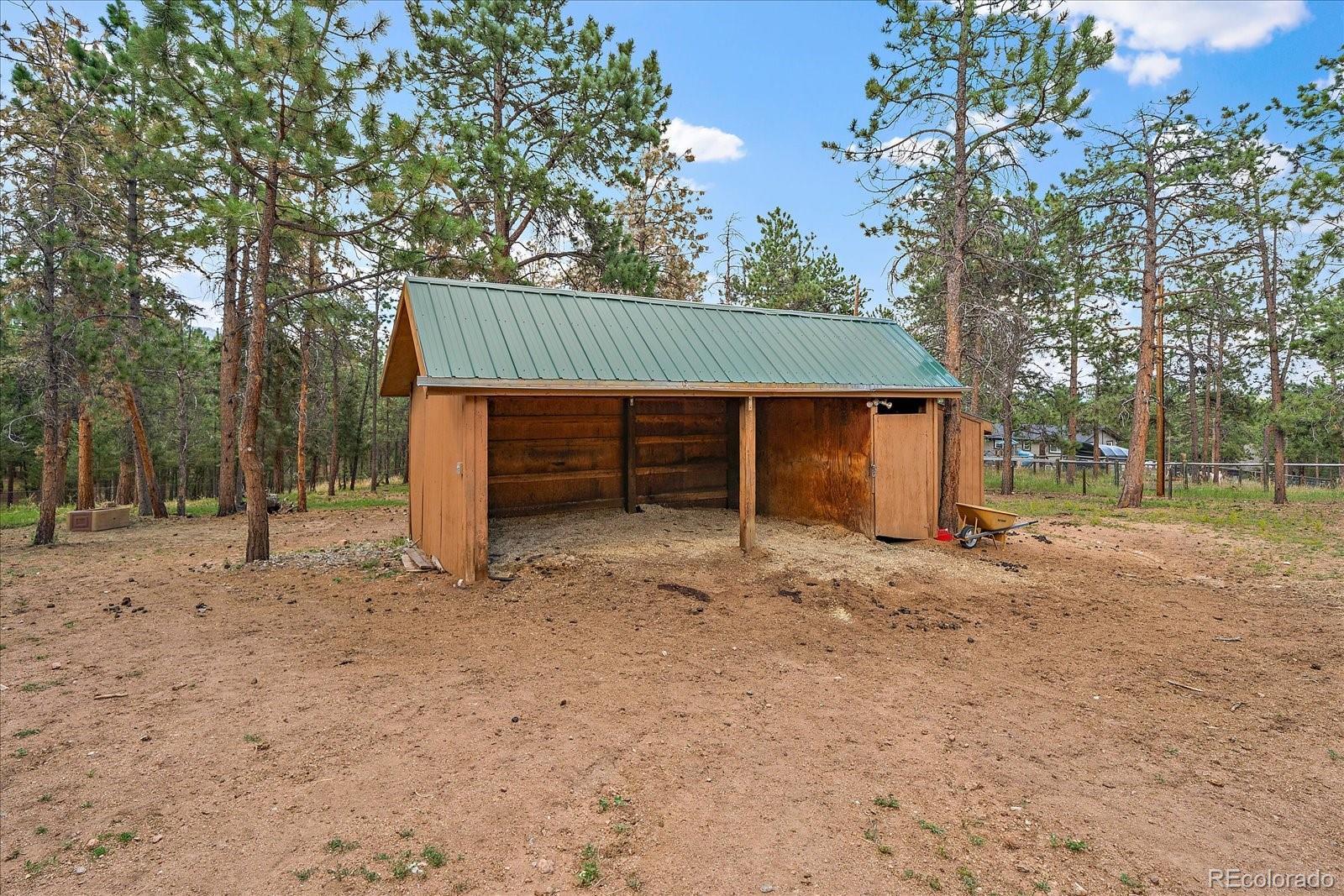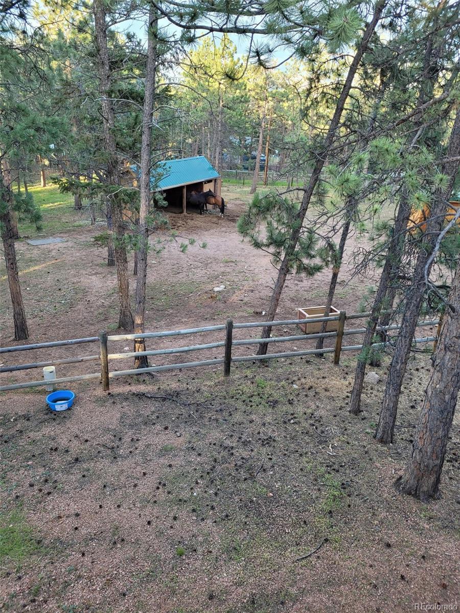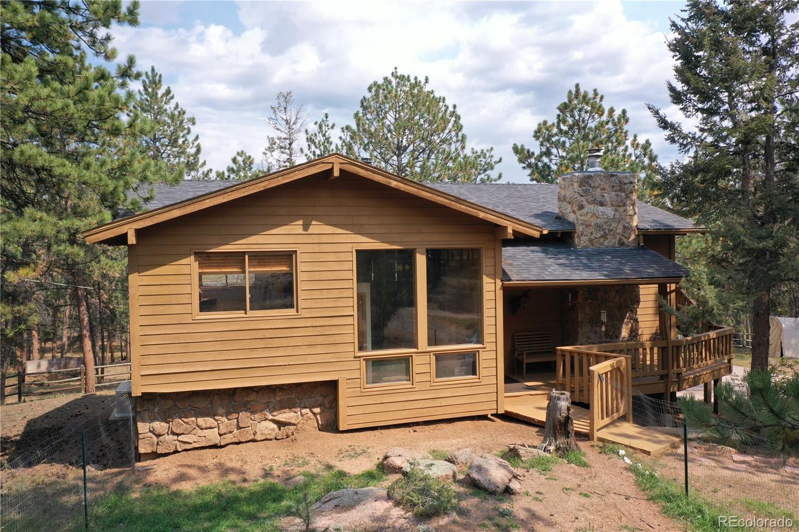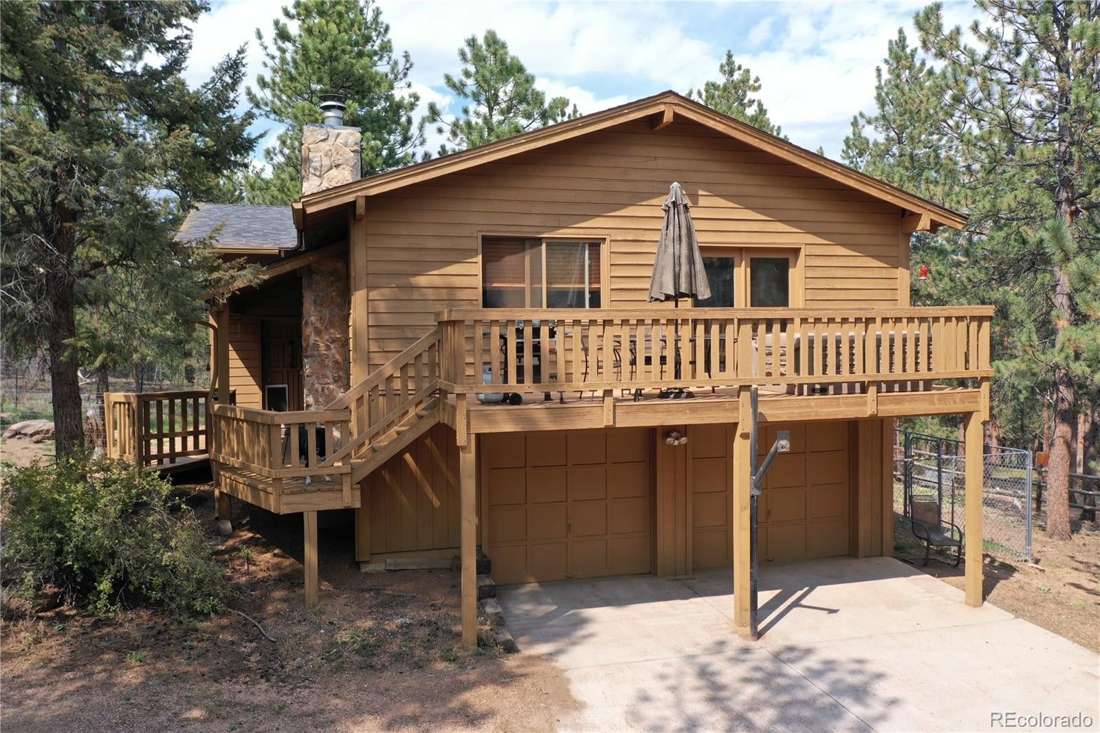 Come visit WOODSIDE PARK and see all this great HORSE PROPERTY has to offer! A full three acres of Equestrian Heaven await you and your family, surrounded by majestic trees and incredible mountain scenery. You’ll love the ease of access, with US Hwy 285, restaurants, a gym, general store, a hardware store, all within 1.5 miles. The parcel is flat and level, a completely usable expanse of land that has been mitigated for pine beetles and dead trees, and the well is legal for watering horses. There are two barns, and the property is fully fenced and cross fenced with an automatic gate. There is a drinking post/automatic horse waterer, a dog run, and MILES of DEDICATED RIDING TRAILS through the Woodside subdivision. Inside the home, there’s 1,833 square feet of living area on 2 floors, including an open-concept main level floorplan, a living room AND family room, and a practically-designed kitchen with marble counters and attractive wood flooring. A moss rock fireplace in the living room means warm winter nights, and there’s also a free-standing stove in the lower level and a new Rinnai gas heater for added comfort. Added features include a Generac home generator and a Mini-Split system in the primary bedroom. Bedrooms are well-proportioned and the primary bedroom offers a convenient door leading onto the deck. Relax outside the living room on the composite deck, take a leisurely dip in your private HOT TUB, or soak up all that great natural sunlight! At night, the Seller loves watching the stars and the Milky Way and feels that this property offers all the quiet, privacy, and personal security you could wish for. The location is WONDERFUL--Staunton State Park is just 10 minutes away, Pine Valley and Buffalo Creek only 15-20 minutes away, 40 minutes to Denver, and Guanella Pass ½ hour away. Located in the unique equestrian community of Woodside, you’ll love everything about this choice property! Check out the 3-D Tour and photos and call for a personal showing today!