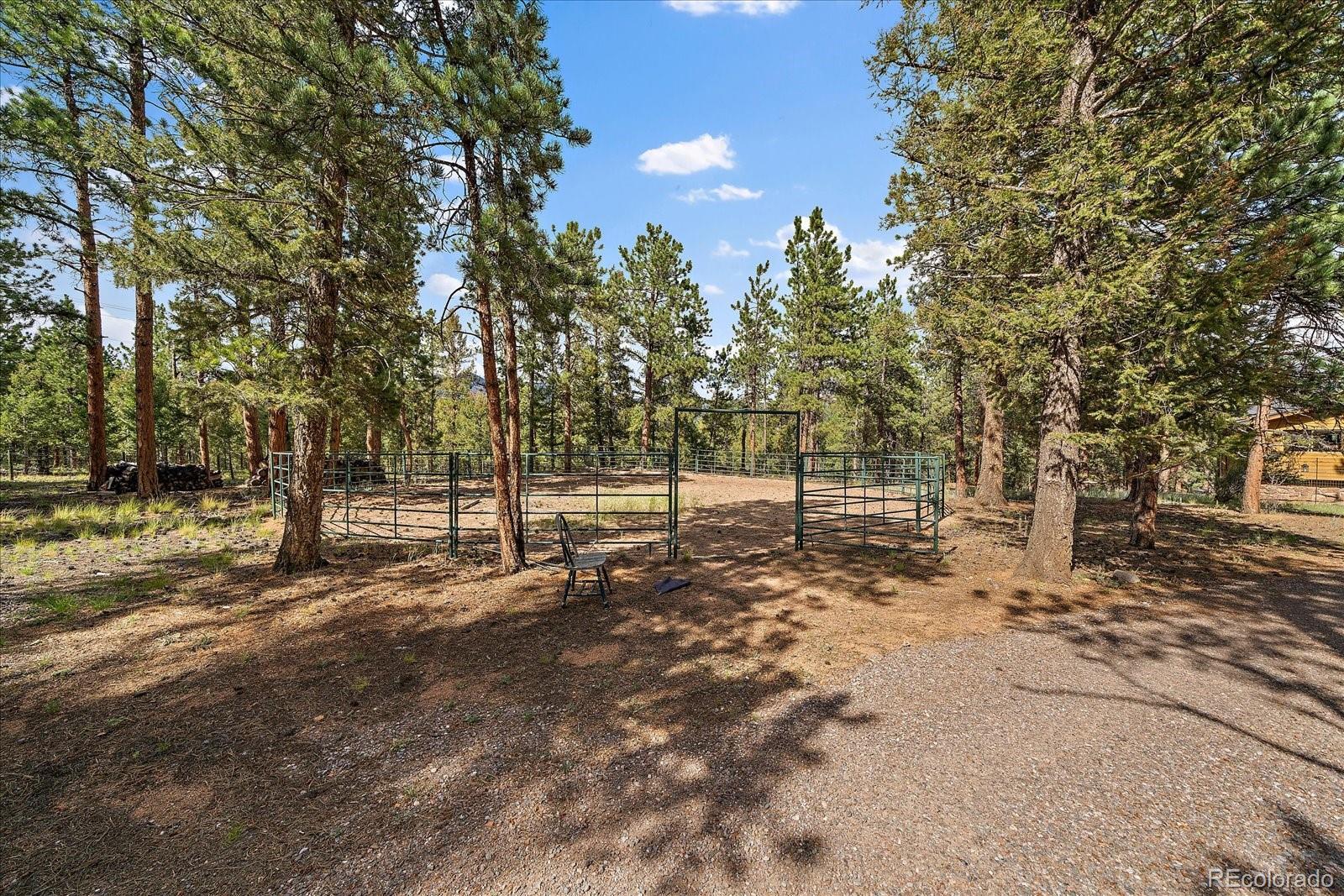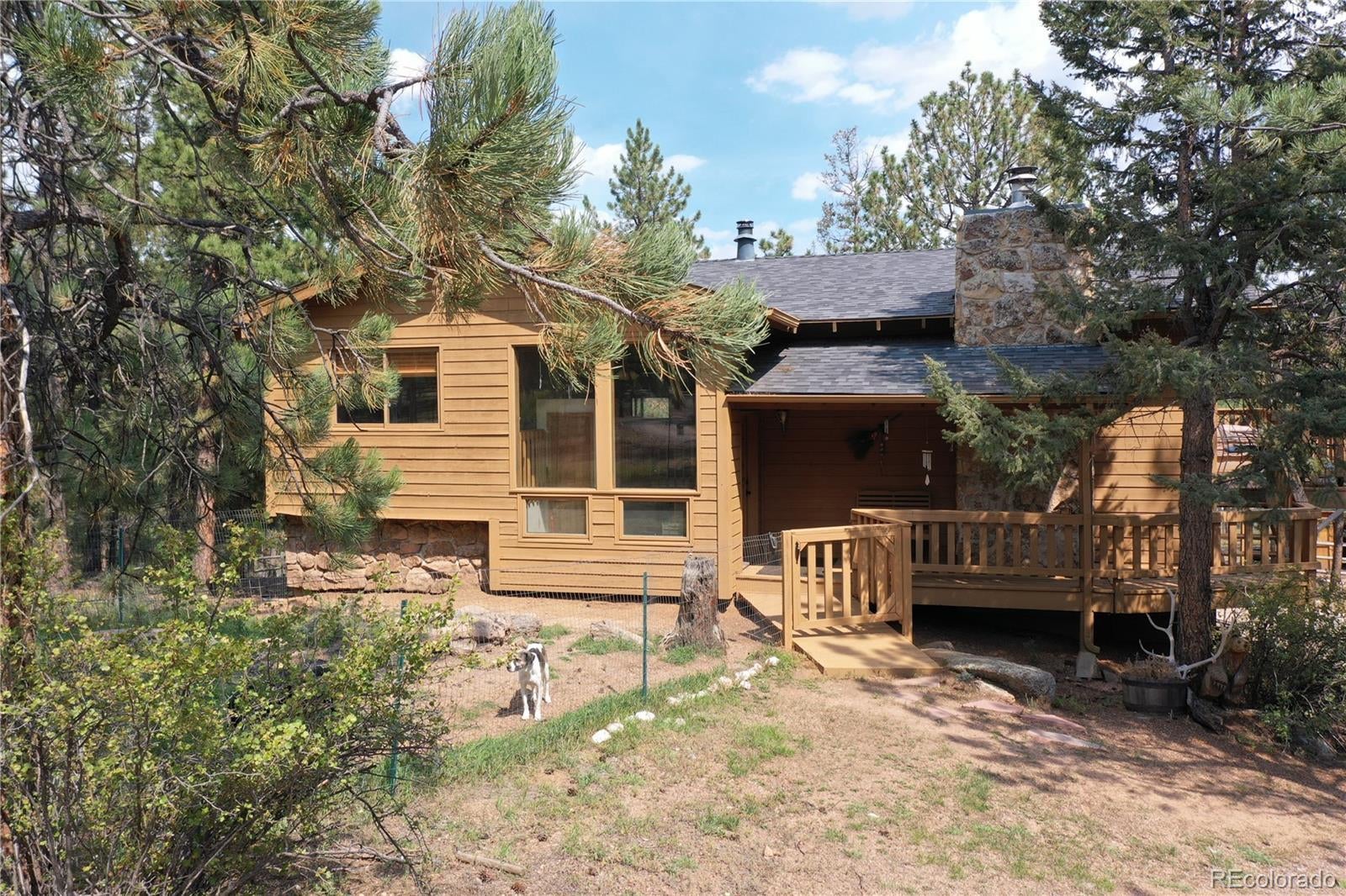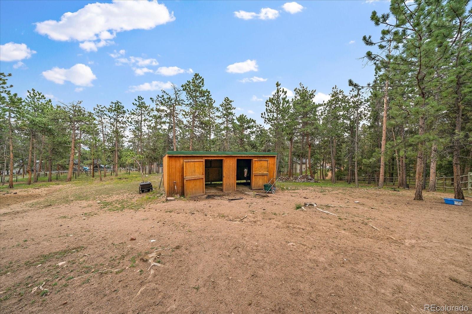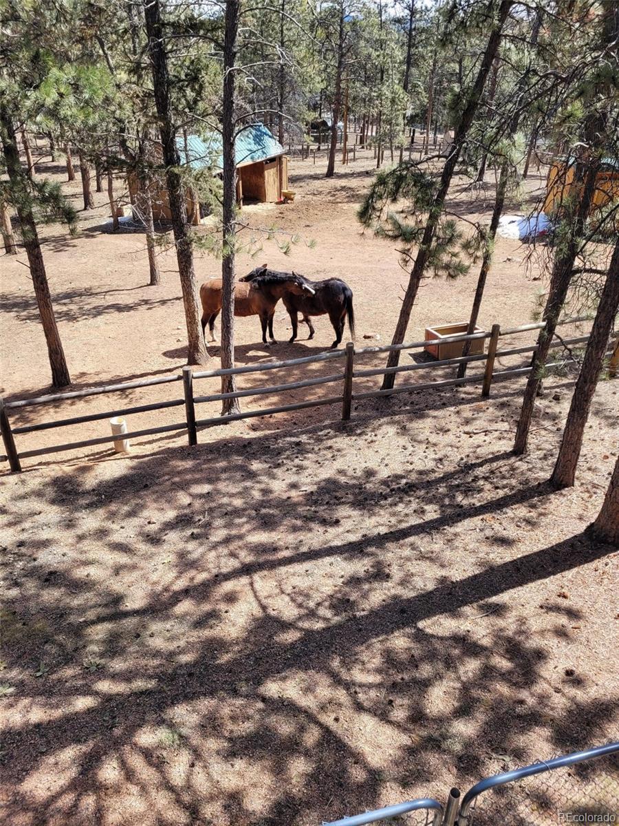 Come visit WOODSIDE PARK and see all this great HORSE PROPERTY has to offer! A full three acres of Equestrian Heaven await you and your family, surrounded by majestic trees and incredible mountain scenery. You’ll love the ease of access, with US Hwy 285, restaurants, a gym, general store, a hardware store, all within 1.5 miles. The parcel is flat and level, a completely usable expanse of land that has been mitigated for pine beetles and dead trees, and the well is legal for watering horses. There are two barns, and the property is fully fenced and cross fenced with an automatic gate. There is a drinking post/automatic horse waterer, a dog run, and MILES of DEDICATED RIDING TRAILS through the Woodside subdivision. Inside the home, there’s 1,833 square feet of living area on 2 floors, including an open-concept main level floorplan, a living room AND family room, and a practically-designed kitchen with marble counters and attractive wood flooring. A moss rock fireplace in the living room means warm winter nights, and there’s also a free-standing stove in the lower level and a new Rinnai gas heater for added comfort. Added features include a Generac home generator and a Mini-Split system in the primary bedroom. Bedrooms are well-proportioned and the primary bedroom offers a convenient door leading onto the deck. Relax outside the living room on the composite deck, take a leisurely dip in your private HOT TUB, or soak up all that great natural sunlight! At night, the Seller loves watching the stars and the Milky Way and feels that this property offers all the quiet, privacy, and personal security you could wish for. The location is WONDERFUL--Staunton State Park is just 10 minutes away, Pine Valley and Buffalo Creek only 15-20 minutes away, 40 minutes to Denver, and Guanella Pass ½ hour away. Located in the unique equestrian community of Woodside, you’ll love everything about this choice property! Check out the 3-D Tour and photos and call for a personal showing today!