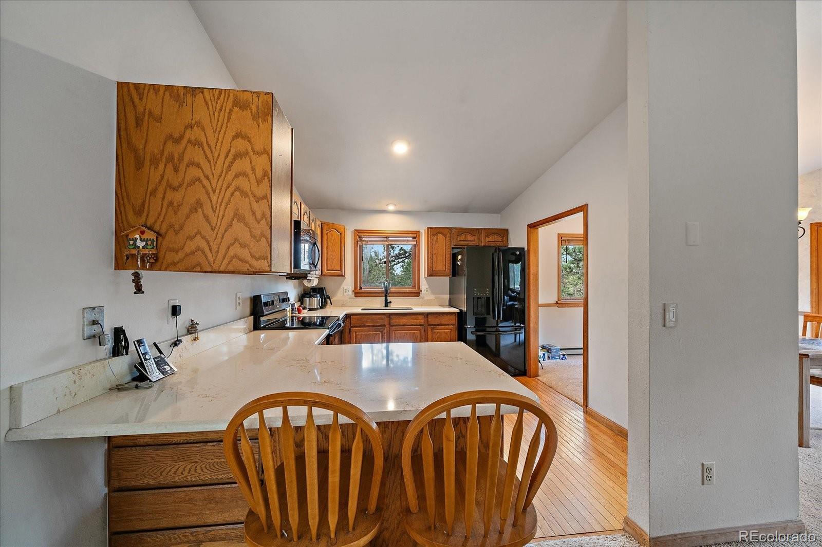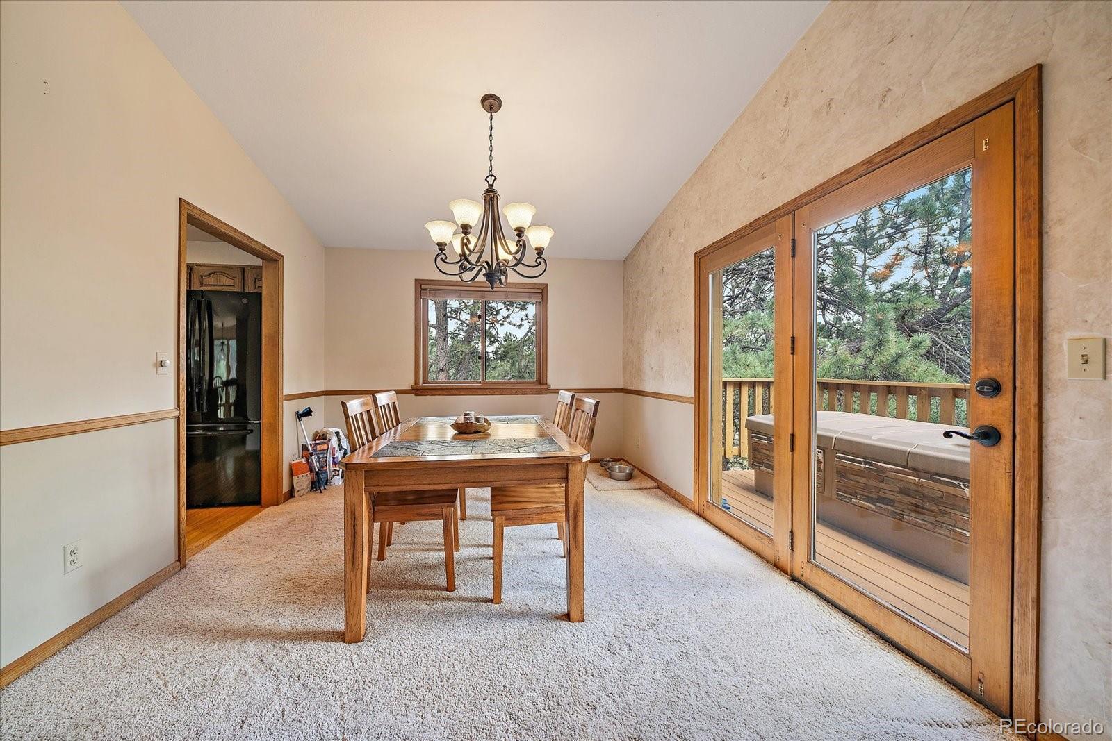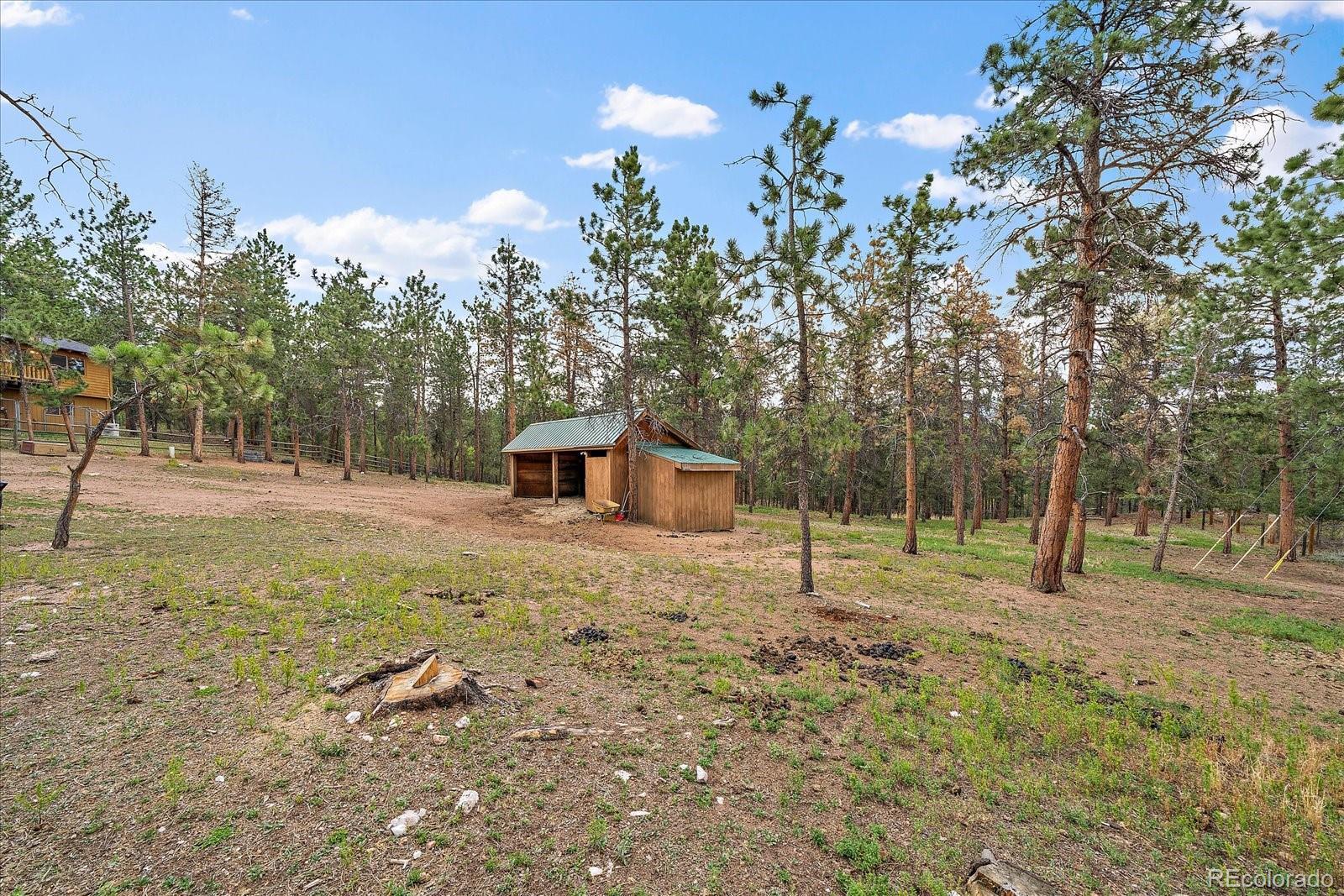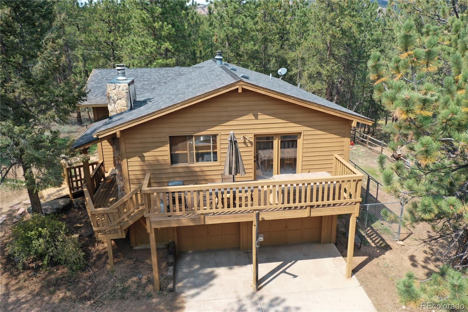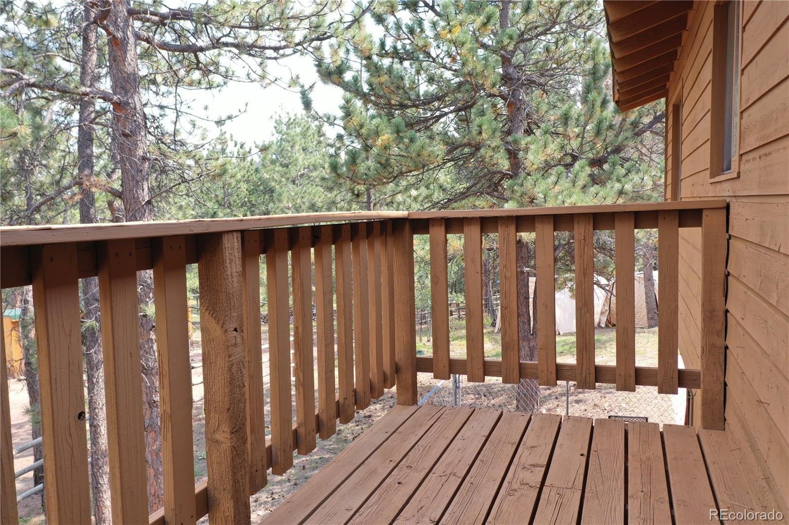 Come visit WOODSIDE PARK and see all this great HORSE PROPERTY has to offer! A full three acres of Equestrian Heaven await you and your family, surrounded by majestic trees and incredible mountain scenery. You’ll love the ease of access, with US Hwy 285, restaurants, a gym, general store, a hardware store, all within 1.5 miles. The parcel is flat and level, a completely usable expanse of land that has been mitigated for pine beetles and dead trees, and the well is legal for watering horses. There are two barns, and the property is fully fenced and cross fenced with an automatic gate. There is a drinking post/automatic horse waterer, a dog run, and MILES of DEDICATED RIDING TRAILS through the Woodside subdivision. Inside the home, there’s 1,833 square feet of living area on 2 floors, including an open-concept main level floorplan, a living room AND family room, and a practically-designed kitchen with marble counters and attractive wood flooring. A moss rock fireplace in the living room means warm winter nights, and there’s also a free-standing stove in the lower level and a new Rinnai gas heater for added comfort. Added features include a Generac home generator and a Mini-Split system in the primary bedroom. Bedrooms are well-proportioned and the primary bedroom offers a convenient door leading onto the deck. Relax outside the living room on the composite deck, take a leisurely dip in your private HOT TUB, or soak up all that great natural sunlight! At night, the Seller loves watching the stars and the Milky Way and feels that this property offers all the quiet, privacy, and personal security you could wish for. The location is WONDERFUL--Staunton State Park is just 10 minutes away, Pine Valley and Buffalo Creek only 15-20 minutes away, 40 minutes to Denver, and Guanella Pass ½ hour away. Located in the unique equestrian community of Woodside, you’ll love everything about this choice property! Check out the 3-D Tour and photos and call for a personal showing today!
