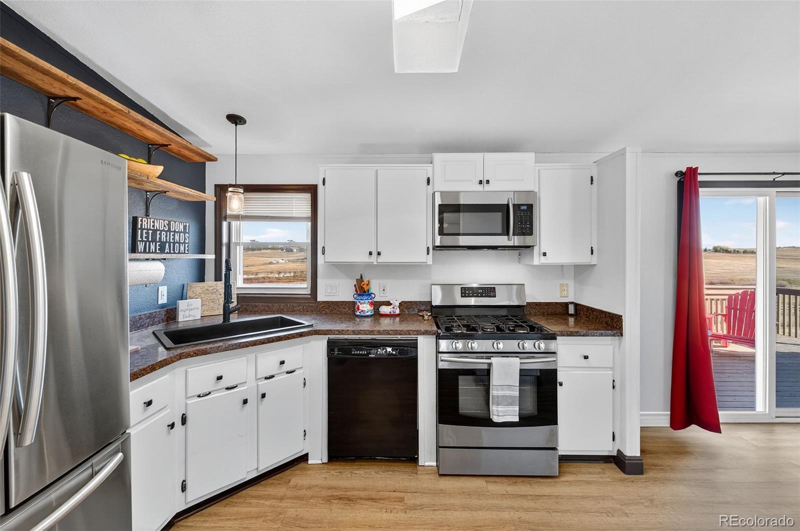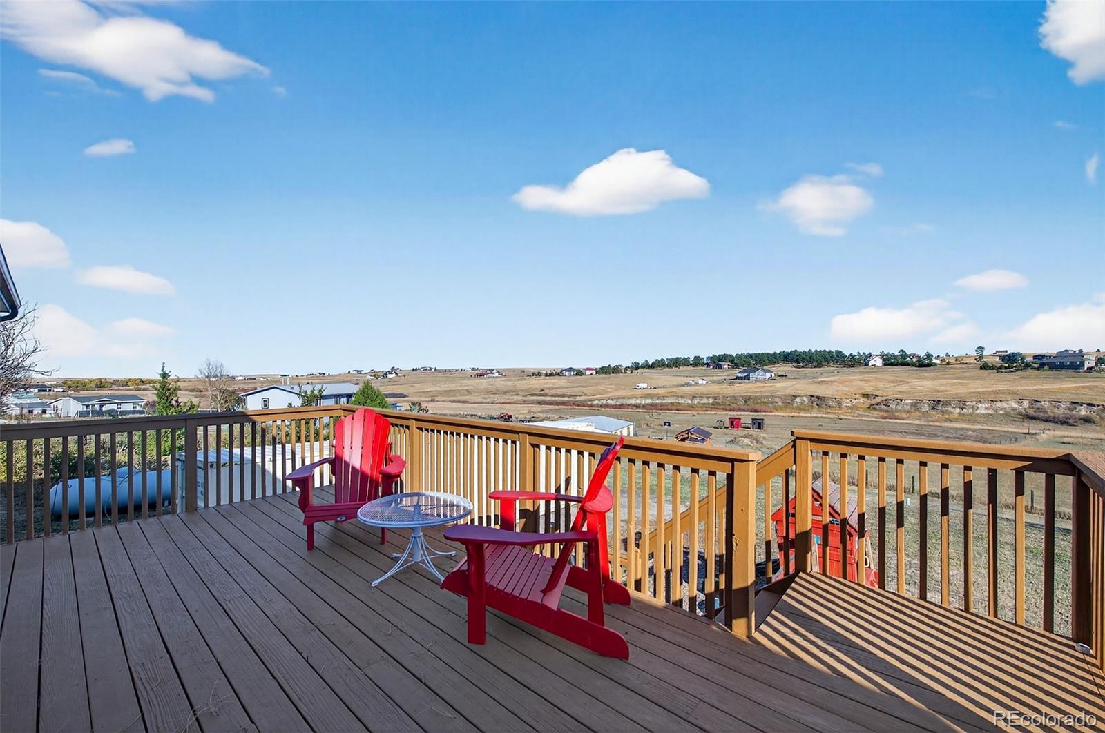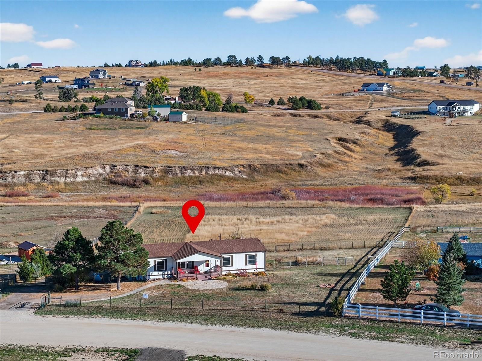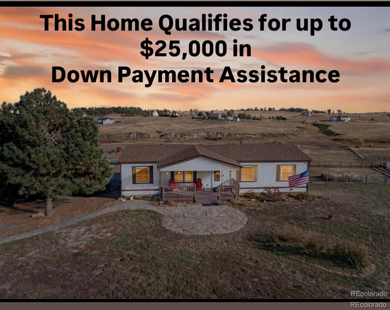 THIS HOME QUALIFIES FOR UP TO $25,000 IN DOWN PAYMENT ASSISTANCE! SELLER IS OFFERING $5,000 CONCESSION Just east of Elizabeth, this beautifully maintained home (manufactured on walkout/lives like Single Family) sits on just over 3 acres of fully fenced and cross-fenced land—perfect for horses, hobby livestock, or simply more space and privacy. Enjoy main-floor living with 3 bedrooms, 2.5 baths, great natural light, an open layout, and main-level laundry. The primary bedroom includes an ensuite bathroom which features a heated floor, large vanity, and walk-in closet. The finished walkout basement opens to an oversized 2-car garage—large enough for a full-size truck—and offers extra living space, a pellet stove, half bath, and plenty of storage. Recent updates include a new roof and fresh exterior paint (Summer 2025) for peace of mind. Step outside to a fully fenced yard, garden area, and playground with a playhouse. Take in quiet evenings, wide-open views, and colorful Colorado sunsets from the deck or patio. Additional highlights: owned propane tank (no lease), county-maintained roads, high-speed internet, and easy access to the main highway without the noise. Buyers may also choose between Elizabeth or Kiowa School Districts. Bonus items negotiable with an excellent offer: John Deere riding mower, basement sectional, and washer/dryer. Affordable acreage, flexible use, and options to help buyers lower their upfront costs—this one truly checks all the boxes.
