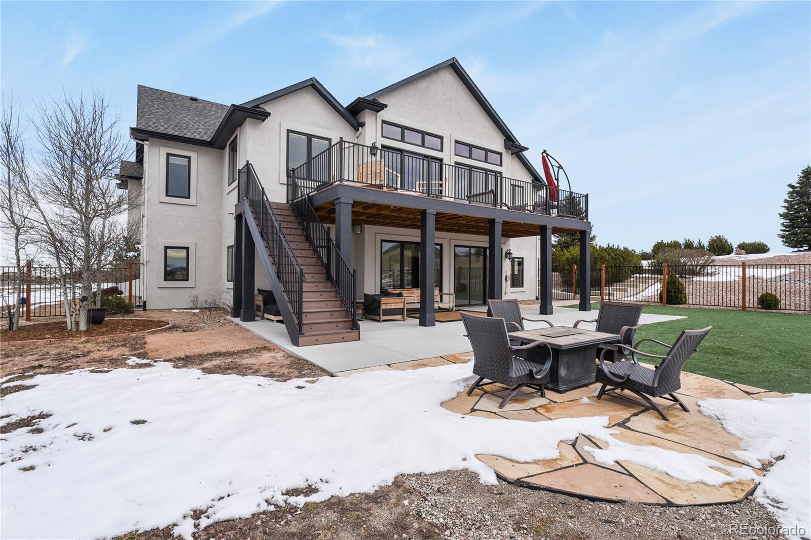 Welcome Home! This stunning property checks all the boxes and has been lovingly cared for and thoughtfully updated over the past several years. Begin your tour on the exterior of the home starting with the 4-car garage with new insulated doors and openers, epoxy coated floor, and EV Charger. New roof with Class 4 shingles, new gutters, entirely new exterior paint, an incredible expansive deck, flagstone patio and fencing with stunning Pikes Peak views. The interior of the home was not overlooked! New paint, new carpet, new LVP flooring in sunroom, stairs, and lower level great room. Gorgeous new lower level full kitchen with stone tops including full size fridge, dishwasher, cooktop with vent hood, and wall ovens. New lighting in the majority of the home including ceiling fans, bath vanity lights, and multiple LED can lights. Mechanical updates include new water heaters 2020, new 15 seer AC and steam humidifier in 2023. This is a great home for multi-generational living with 2 huge en-suites including 3 hard to find main level bedrooms, a media/private suite with bath over the garage and 2 full kitchens. See addendum for detailed list of updates, upgrades, and renovations!