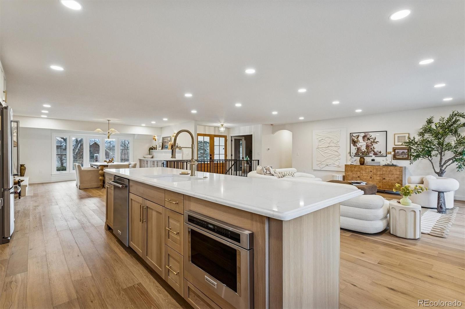 Set within the highly sought after Boulder Country Club community, this fully reimagined luxury ranch delivers warm organic elegance with a refined modern edge. This is not a surface renovation. Every system, surface, and detail has been completely transformed, creating a truly turnkey, magazine worthy residence. Wide plank engineered hardwoods, a fully opened up living space, and curated designer finishes set the tone throughout. The open concept main level is filled with natural light and designed for both everyday living and elevated entertaining. At the heart of the home, the showpiece kitchen features custom solid oak cabinetry, statement hood, premium appliances, cabinet mounted double ovens, and an oversized island with quartz counters. A custom buffet and wine bar anchor the dining space, while oversized sliding glass doors connect seamlessly to a private stamped concrete patio and serene backyard perfectly blending indoor & outdoor living. The primary suite is a true retreat, offering direct access to its own secluded patio and a spa inspired bathroom with dual vanities, soaking tub, and a stunning walk in shower with dual shower heads that makes sure to impress. A massive walk in closet with custom built ins completes the experience. The lower level expands the lifestyle with a secondary living area, custom snack bar, dedicated fitness room (or storage), and private sauna for a true in home wellness experience. Nearly a third of an acre provides space, privacy, and possibility. Two brand new stamped concrete patios and new privacy fencing create ideal settings for entertaining or quiet retreat. With a new roof, windows, mechanicals, and fully permitted systems, this home offers modern performance wrapped in timeless design. Don't miss this rare opportunity to own a fully transformed luxury ranch in one of Boulder’s most coveted communities!