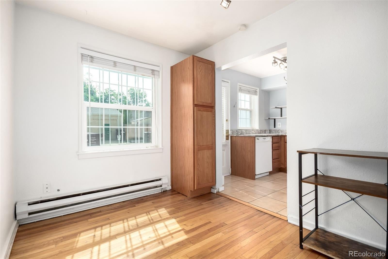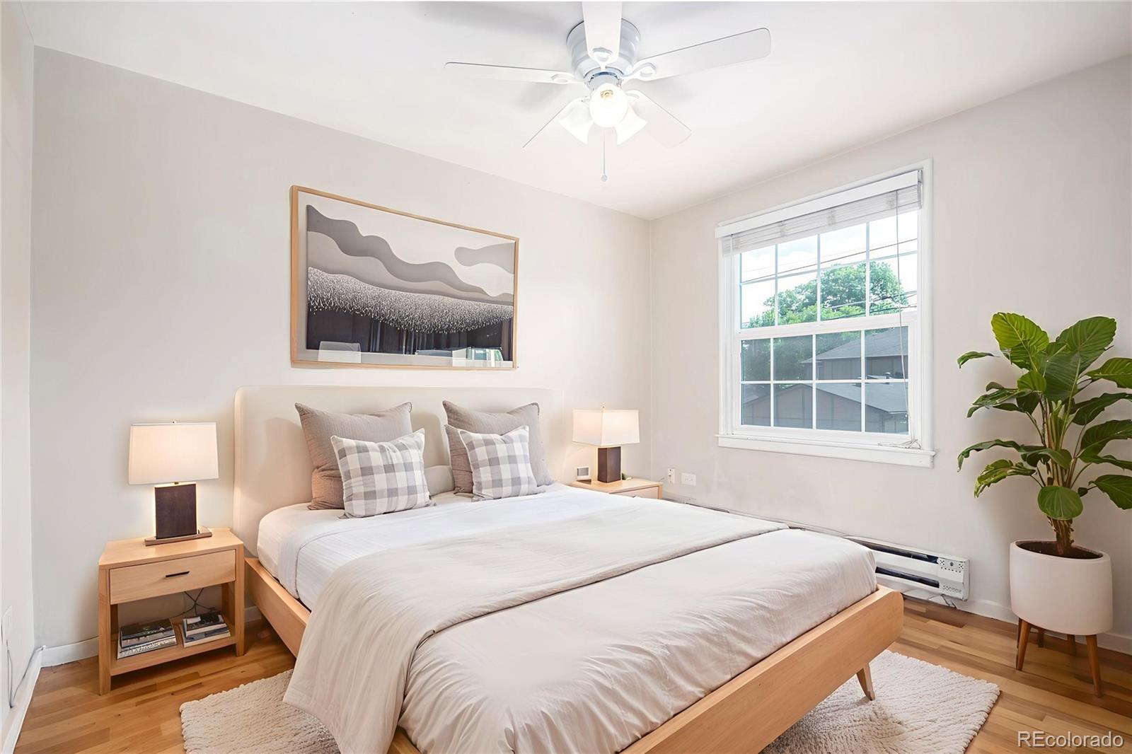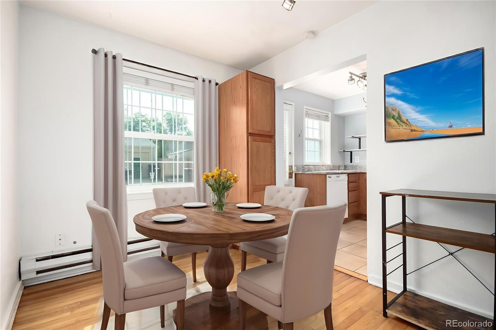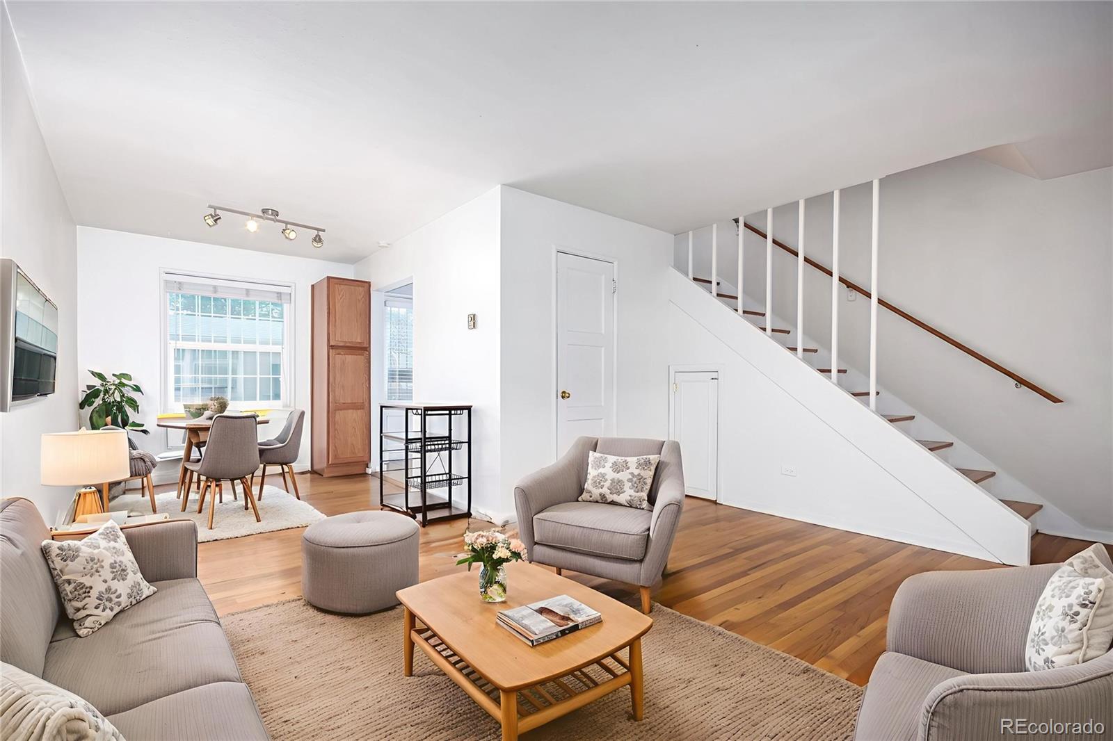 Beautiful classic brick townhome located in the heart of Denver’s historic Park Hill neighborhood. This two-bedroom, one-bath home offers an open, light-filled layout with original hardwood floors and timeless charm. The living and dining areas provide a welcoming space to relax or entertain, while the kitchen features granite countertops and a clean, functional design. In-unit laundry adds everyday convenience. A door off the kitchen leads to your reserved parking space, with a spacious shared lawn just steps away, perfect for enjoying the outdoors or connecting with neighbors. Upstairs, you’ll find two generous bedrooms, including a serene primary retreat with an oversized walk-in closet, a rare and exceptional feature. Residents also enjoy access to locked storage and bike storage on the lower level for added ease. This friendly, tree-lined community puts you close to everything that makes Park Hill so special: beloved local spots like the 22nd and Kearney shops and eateries, City Park, the Denver Zoo, the Museum of Nature and Science, and more. With comfort, character, and a location that truly connects you to the best of Denver, this home is ready to welcome you into your next chapter. Come see what makes this neighborhood so special.
