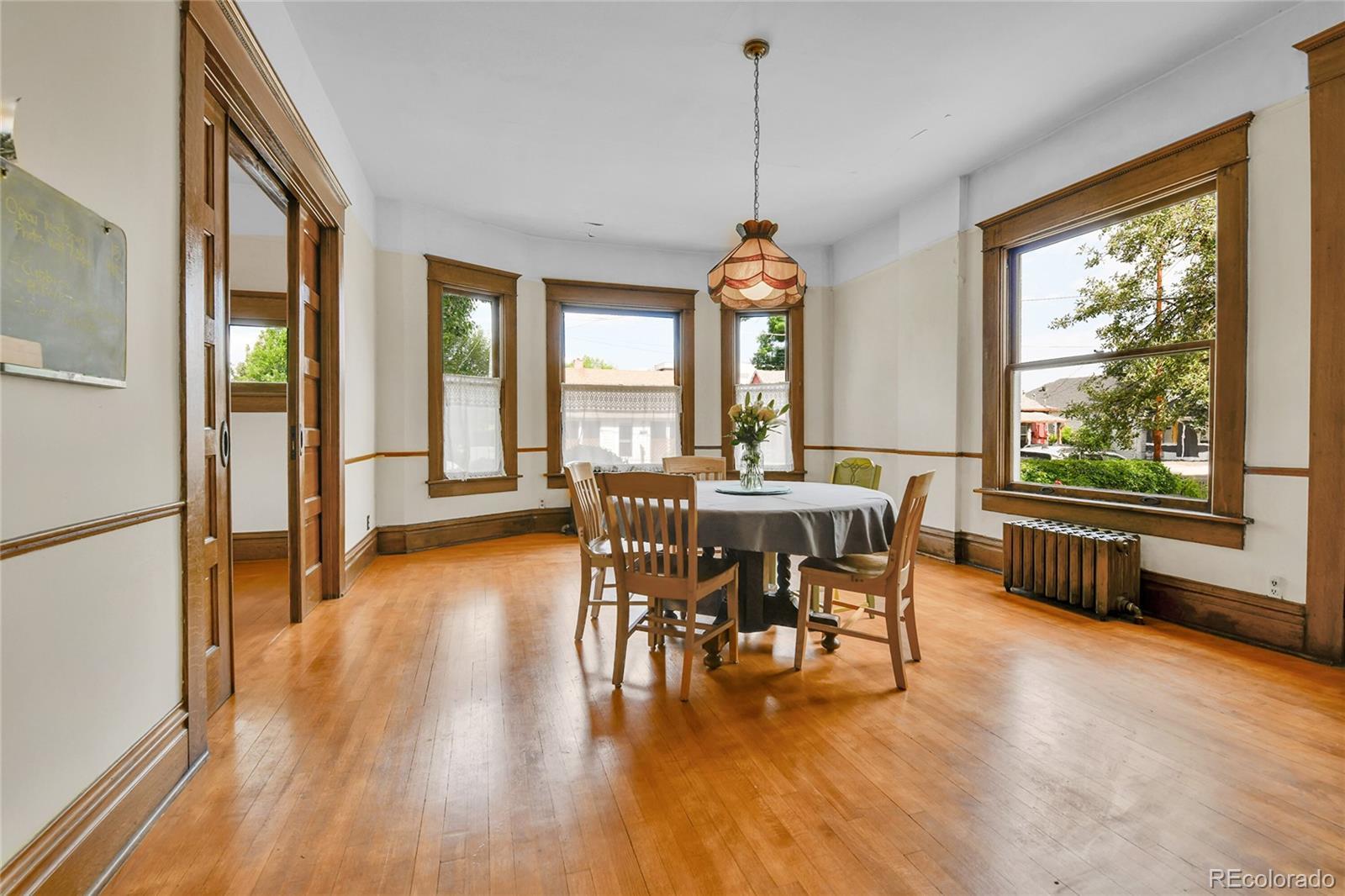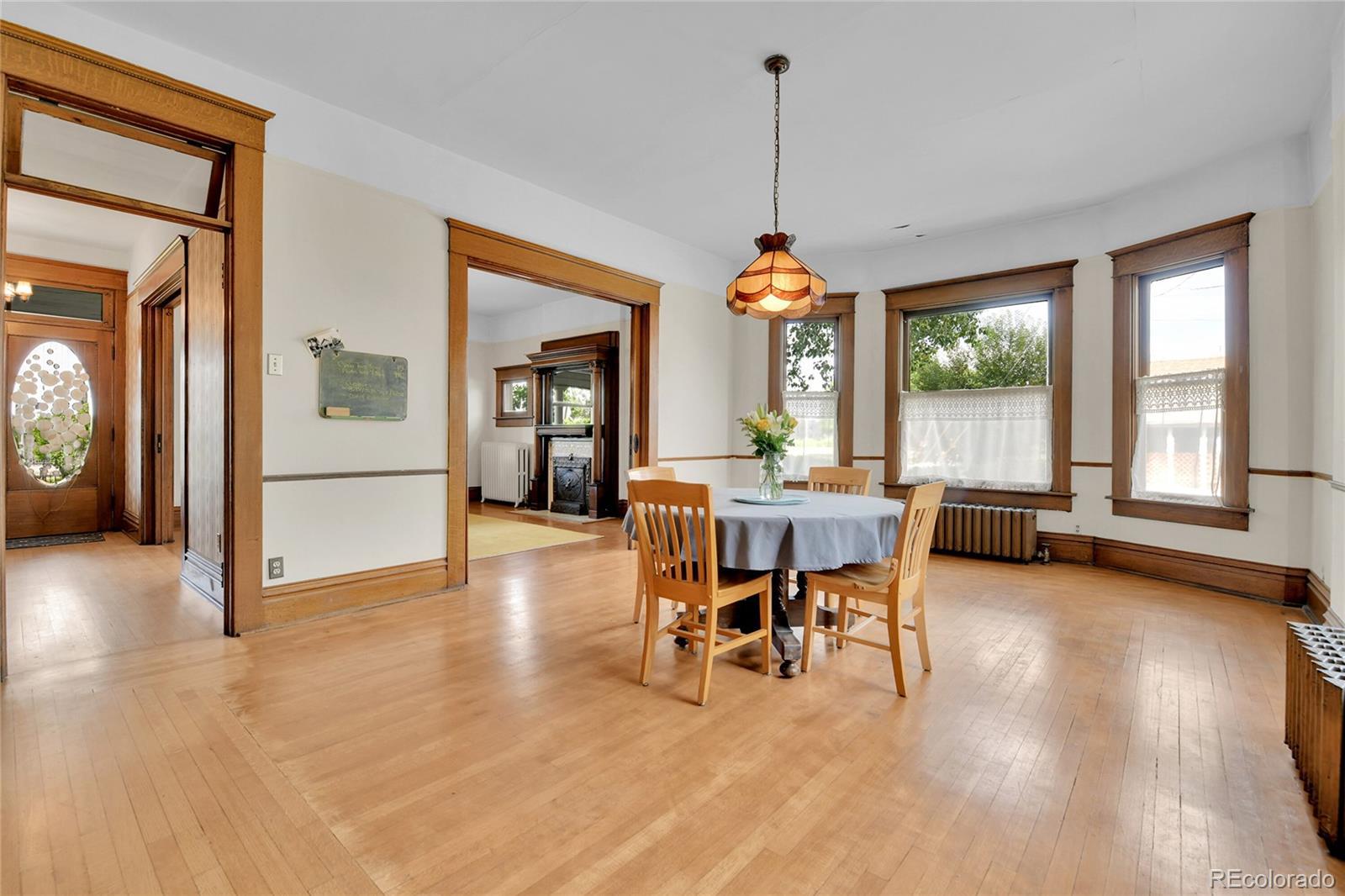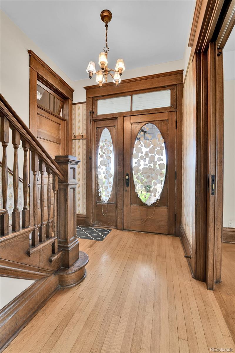 This Victorian brick home is a beautiful cornerstone to the Stocke Walter historic district of Olde Town Arvada. The architectural treasure will instantly capture your attention with its quartersawn oak woodwork, doors, and floors. Detailed built-in cabinets and gliding pocket doors spur the imagination of this home’s earlier days when prominent members of the historic community dwelled here (including Ann Jackson, Arvada’s first woman mayor). Natural light spills through wavy glass bay windows, arched windows, oval windows, and even interior transom windows. Chandeliers and 8-10 foot ceilings enhance the spacious and warm quality of the home. Outside, the attention to artistry includes fish-scaled siding on the porch, balustrade above the porch, Palladian motif window, and front and back balconies. The large .22 acre lot is surrounded by a wrought iron fence and hosts fruit-bearing cherry and apple trees with ample room for gardening. Inquire about the potential to purchase rare water rights on the Wadsworth Ditch established in 1861. Nearby Olde Town Arvada is a hub of activity. Enjoy easy walking access to cafés, the light rail, bakeries, restaurants/bars, a movie theater, bookstores, yoga studios, and the Arvada Library. As well, the summer season in Olde Town Arvada is abundant with a weekly farmers’ market, concerts in the park, and frequent art fairs. This special home is available for the first time in 50 years. You don’t want to miss this opportunity to own a piece of history and create your dream home! Sellers are willing to give concessions of $5,000. towards closing costs!!