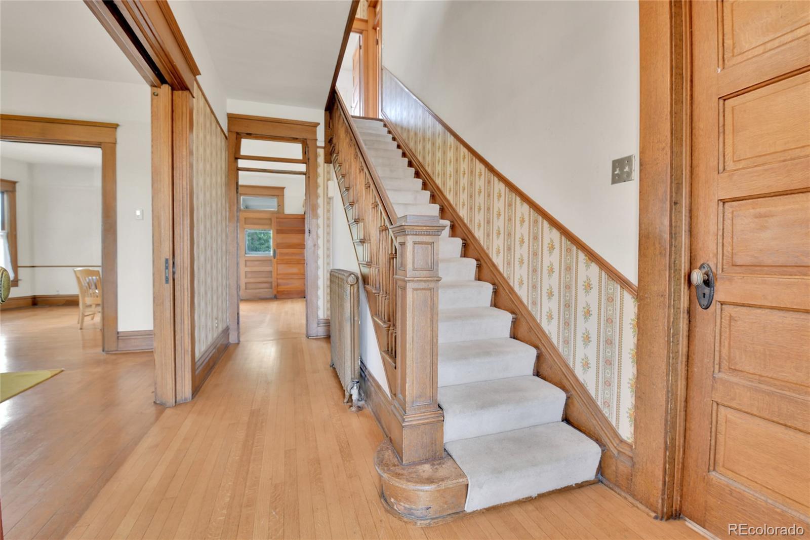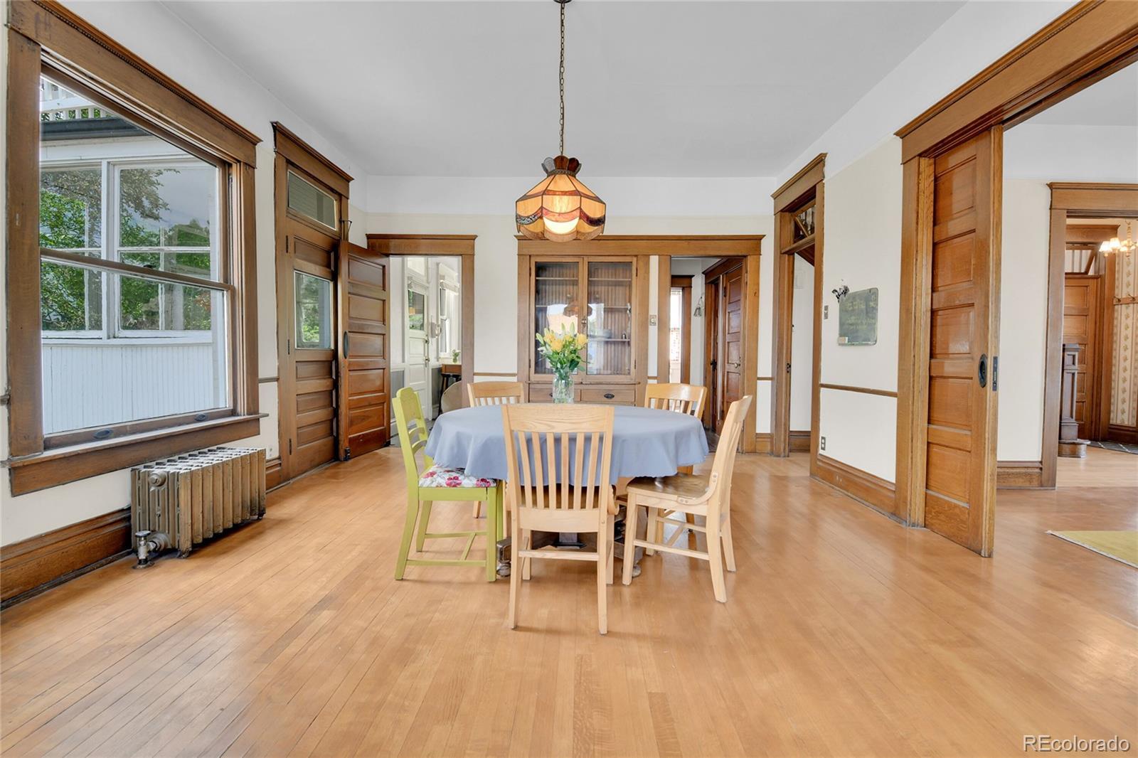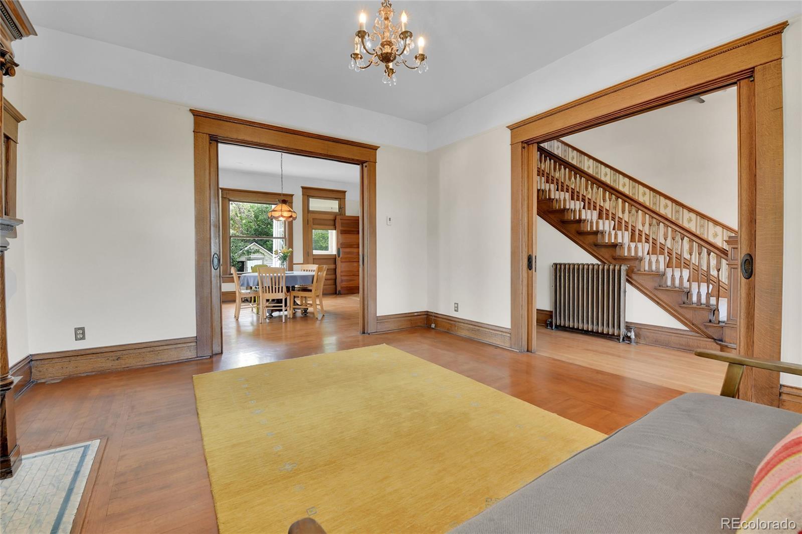 This Victorian brick home is a beautiful cornerstone to the Stocke Walter historic district of Olde Town Arvada. The architectural treasure will instantly capture your attention with its quartersawn oak woodwork, doors, and floors. Detailed built-in cabinets and gliding pocket doors spur the imagination of this home’s earlier days when prominent members of the historic community dwelled here (including Ann Jackson, Arvada’s first woman mayor). Natural light spills through wavy glass bay windows, arched windows, oval windows, and even interior transom windows. Chandeliers and 8-10 foot ceilings enhance the spacious and warm quality of the home. Outside, the attention to artistry includes fish-scaled siding on the porch, balustrade above the porch, Palladian motif window, and front and back balconies. The large .22 acre lot is surrounded by a wrought iron fence and hosts fruit-bearing cherry and apple trees with ample room for gardening. Inquire about the potential to purchase rare water rights on the Wadsworth Ditch established in 1861. Nearby Olde Town Arvada is a hub of activity. Enjoy easy walking access to cafés, the light rail, bakeries, restaurants/bars, a movie theater, bookstores, yoga studios, and the Arvada Library. As well, the summer season in Olde Town Arvada is abundant with a weekly farmers’ market, concerts in the park, and frequent art fairs. This special home is available for the first time in 50 years. You don’t want to miss this opportunity to own a piece of history and create your dream home! Sellers are willing to give concessions of $5,000. towards closing costs!!