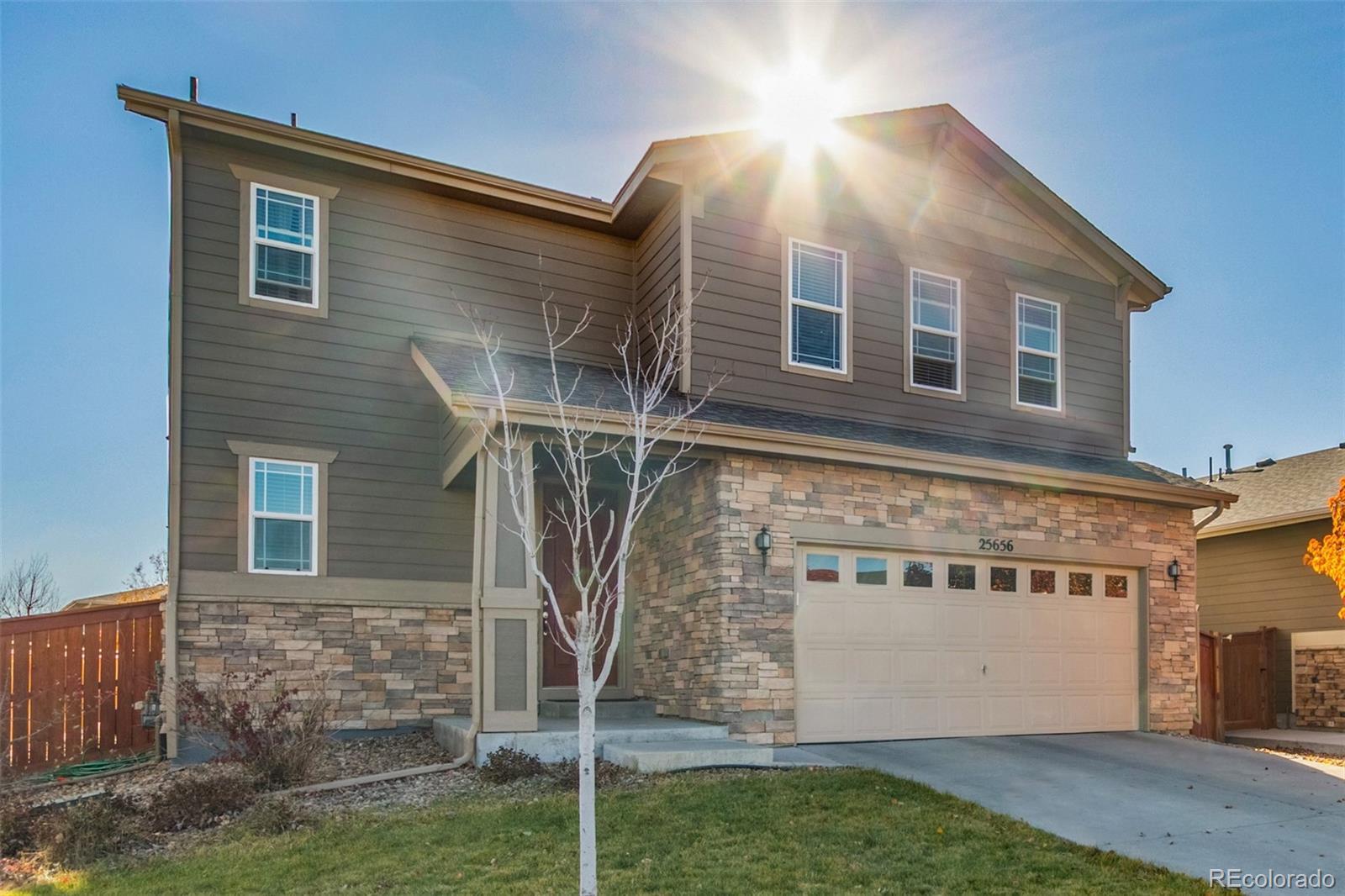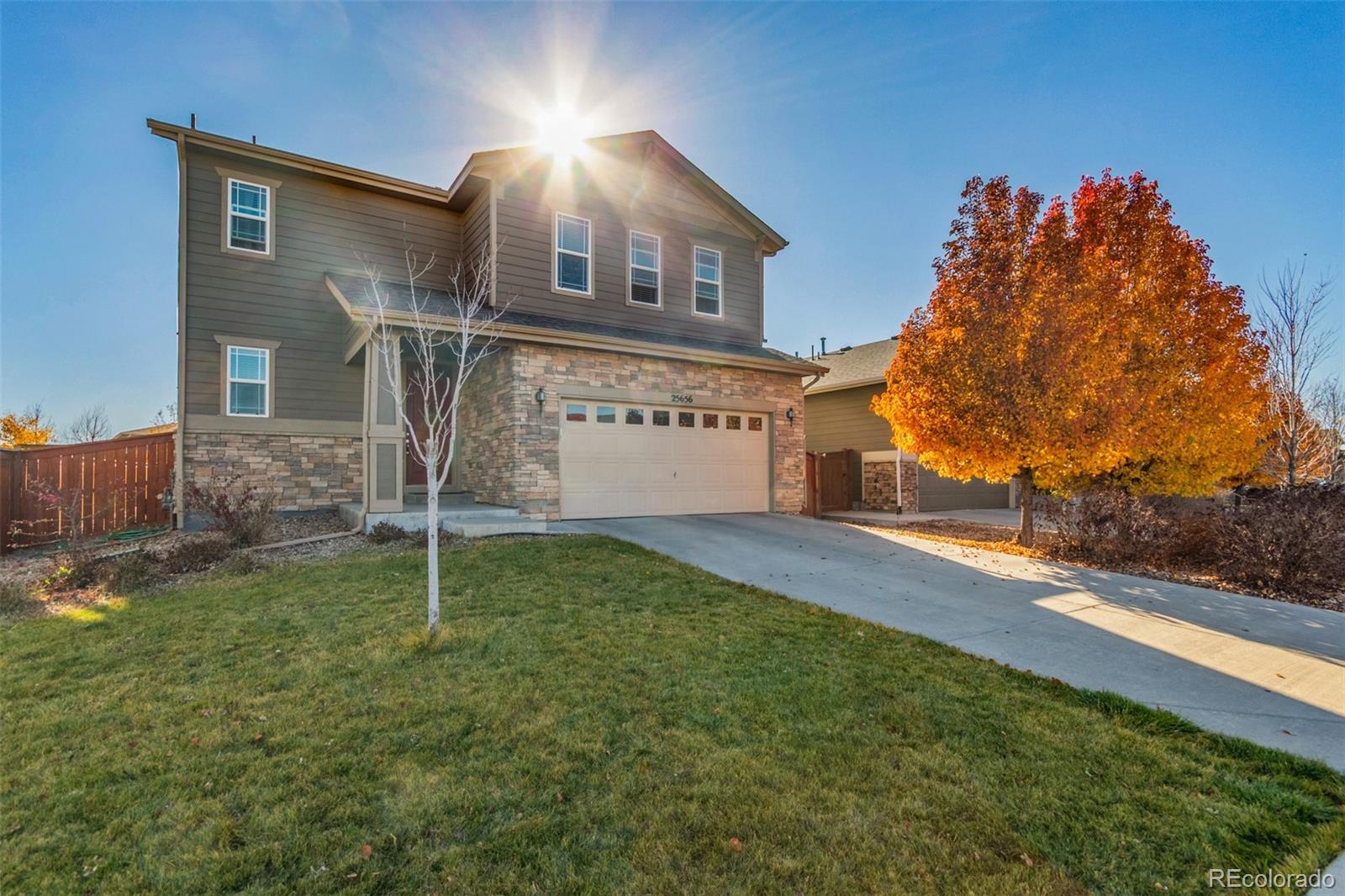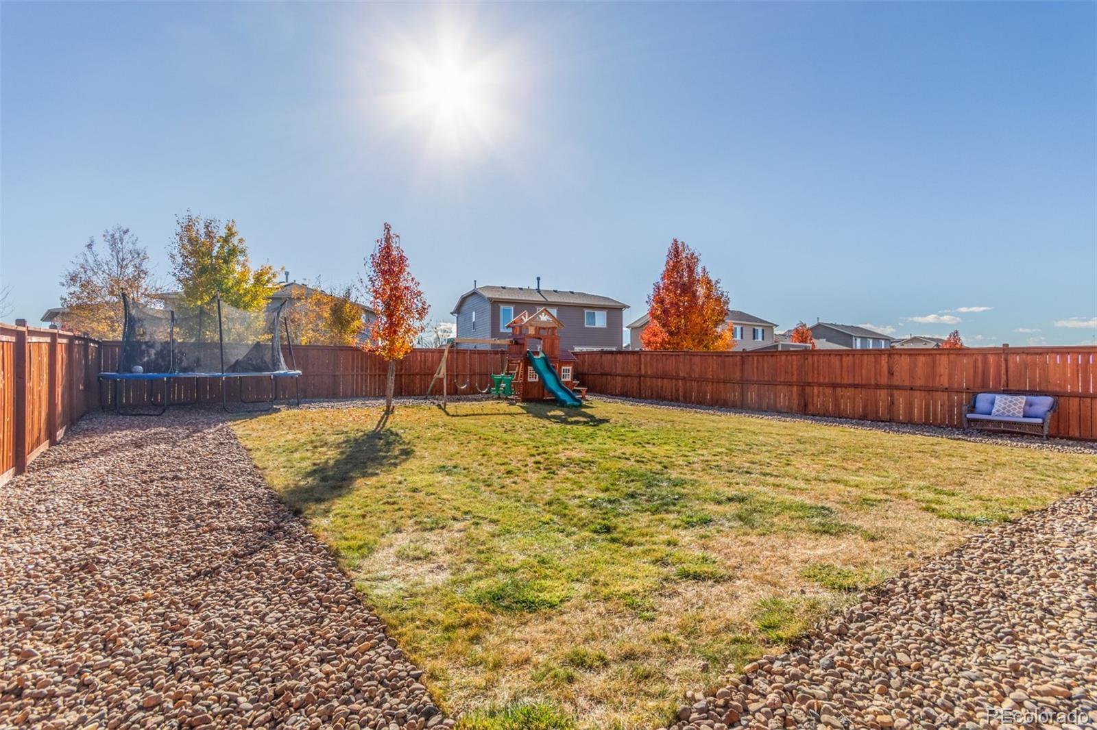 The search is finally over! This delightful 4-bedroom home welcomes you with a 2-car garage, tasteful stone accents, and a manicured front lawn. Discover a serene open layout with high ceilings, a soothing palette, blinds, and a harmonious blend of soft carpeting and wood-look flooring. The gourmet kitchen comes with granite counters, ample wood cabinets, pendant/recessed lighting, a striking tile backsplash, stainless steel appliances, a pantry, and an island with a breakfast bar. The cozy main bedroom features an ensuite with dual sinks and a walk-in closet. Unwind in the lovely backyard, boasting a covered patio, lush natural turf, and a playground for outdoor fun. Don't miss out on this gem!